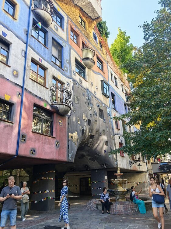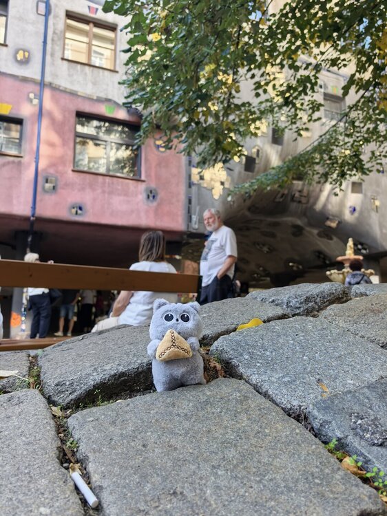 Сегодня рано утром мы отправляемся в Вену. Очень скучала по этому городу, с ним у меня связаны самые теплые и восторженные воспоминания. Последний раз была там аж в мае 2019 года. За это время успел закрыться наш любимый Розенберг, где я слышала как наша туристка на чисто-русском языке объясняется с кассиром, отвечающая ей на чистом немецком, и они прекрасно друг друга понимали. В этой поездке у меня появился друг по путешествиям, его зовут Жимеш. В руках он держит эчпочмак и да, это котик-татарин :) Его имя в переводе на русский означает Ягодка. Только у Жимеша есть одна отрицательная черта - он не очень любит фотографироваться и часто отлынивает )) Итак, выехали мы примерно в 7.30 и уже в 11.30 были Вене. Первым нашим пунктом было посещение дома Хундертвассера. Думаю, тут не стОит рассказывать кто это. Человек-гений, конечно. Пережив то что он пережил, его жизнь стала гимном искусству. Напротив дома находится сувенирный магазин в духе Художника. Жимеш в восторге Будка на месте. Людей здесь очень много. При этом сувенирная лавка напротив дома полна-полнёшенька посетителей, а лавки чуть поодаль с аналогичным товаром и даже чуть дешевле почти пустые.