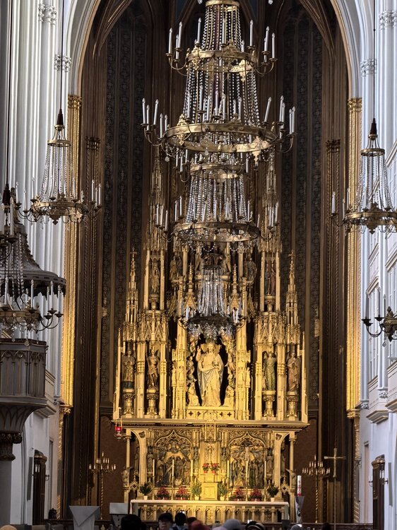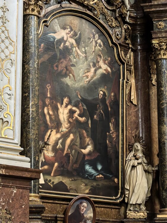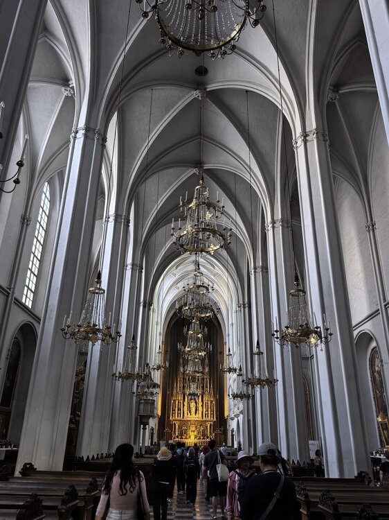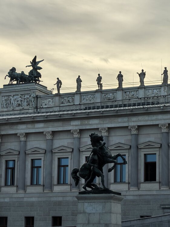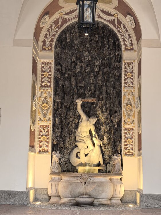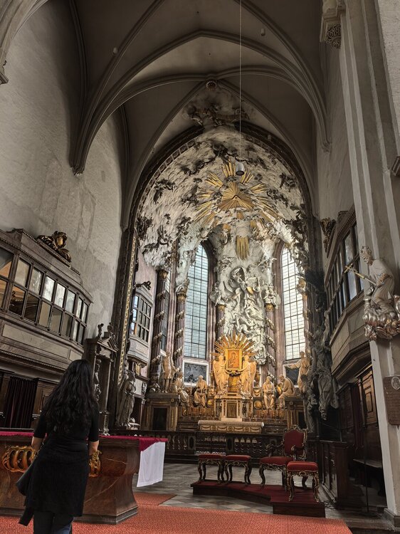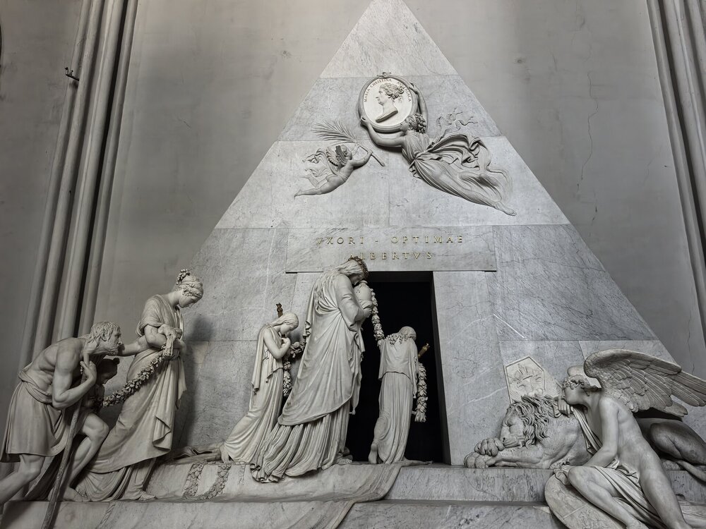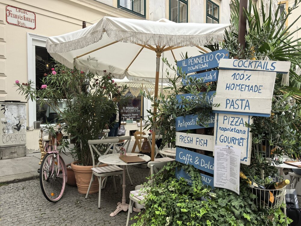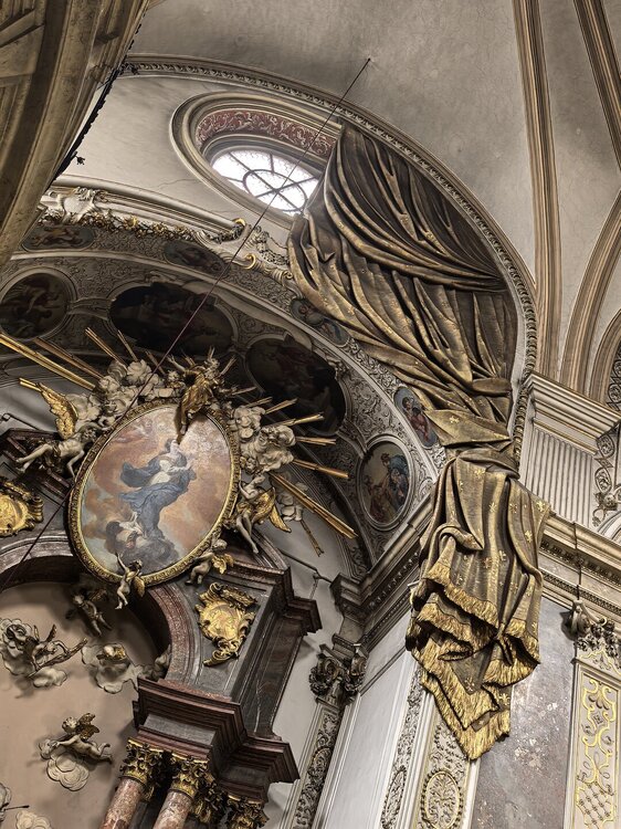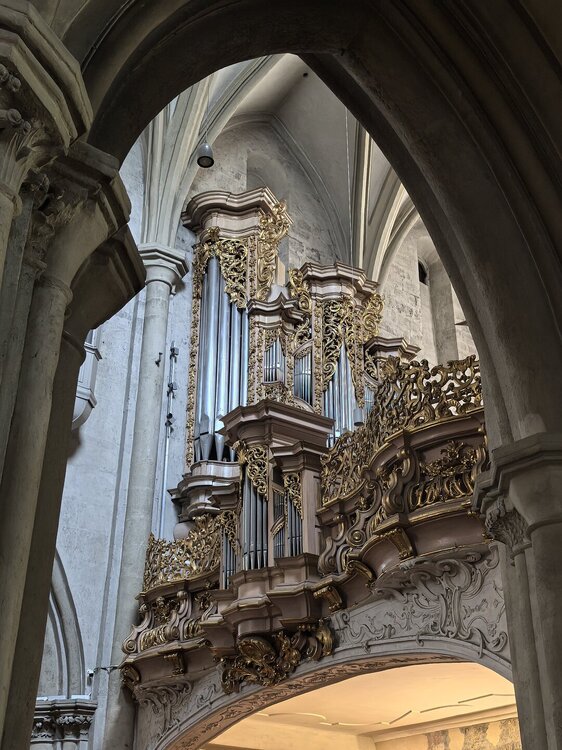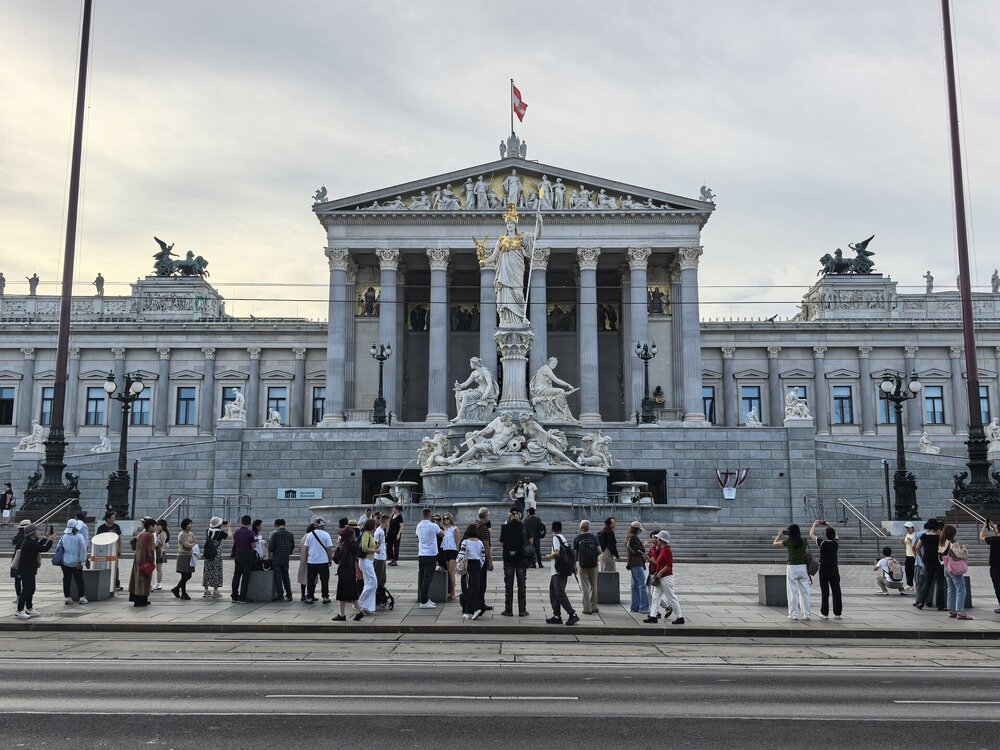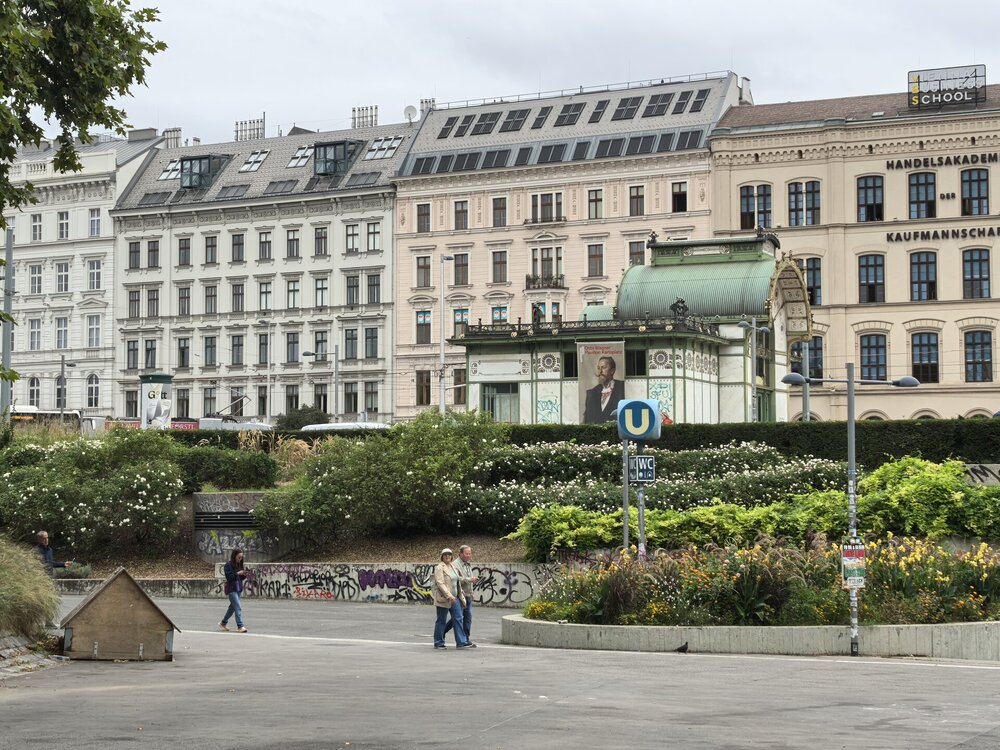 А мы продолжаем наши прогулки. Гид с нами распрощалась у Альбертины, у группы чуть позже поездка в Шенбрунн, но я снова мимо. Я слишком долго не видела свою любимую Вену, чтобы рассматривать покои Франца Иосифа. Он, конечно, впечатляющая личность, но не до такой степени)) В Альбертине в роли афиши ступени. За это время мы уже изрядно проголодались и, пока ходили с экскурсией, приметили пару мест со стрит-фудом. Это очередь за знаменитыми венскими хот-догами. Но ждать это не про нас.) Забегаем в Биллу - здесь прекрасный уголок с готовой горячей едой, салатами, кофе, порезанными фруктами и вообще что захотите. Взяла пасту в сливочном соусе, было очень вкусно и сытно. На этикетке указаны цены. И не могла пройти мимо этой бутылочки Швепса, просто обратите внимание на название на ценнике. Если русская, надо брать.)) Хотя, возможно, это уловки)) После вкусного обеда по закону Архимеда полагается... как минимум никуда не бежать, а хотя бы посидеть вот как Гете к примеру Посидеть можно на задворках Хофбурга. Это уже второй раз за поездку вальяжного отдыха в зеленой зоне. Иду на эту башенку, загляну в костёл Святого Августина Внимание тут привлекает это белоснежное надгробие Марии-Кристине Австрийской, дочери Марии Терезы. Автором надгробия является Антонио Канова, который изначально посвятил его Тициану, но не закончил, а тут подвернулся заказ от мужа Марии-Кристины. Это надгробие отличалось от других своей эпохи, т.к. в центре здесь не покойный человек, а сама смерть в виде темных ворот, куда идут безутешные люди, пересекая тем самым черту между тем и этим миром. Лев справа - символ рода Габсбургов. Достаточно грустных историй, идём гулять в цветники Жимеш выбор сада одобряет Среди зданий увидела очертания явно какого-то религиозного сооружения Это храм огромный Миноритов, основанный в 14 веке. Вокруг абсолютная тишина и никого. Выглядел он как закрытый, лишь позади люди собирались на какое-то мероприятие и выглядели весьма загадочно, все в черном, но обывательском. Пройдемся немного по рингу Сюда вернемся завтра, а пока взгляд издалека. Площадь перед храмом только для быстрых пешеходов с хорошей реакцией, потому что по ней ездят трамваи и автомобили по кольцу с перекрестками. Представляю как ломали головы архитекторы, когда думали что же сделать с этим огромным пустырем. У Ратуши что-то разбирали. Кажется, гид говорила, что был фестиваль вина. Заходим в костел Святого Михаила, где впервые прозвучал реквием Моцарта. Очень красивая алтарная часть, изображающая падение ангелов. На переднем плане чудотворный образ Марии Кандии, привезенный с острова Крит. Орган 18 века А это уже храм Святого Петра на Грабен Потом на нас напали сувенирные магазины и немного наследили в телефоне Вот что бывает с теми кто любит гулять по Вене)) а что, зато удобно А мы уходим в противоположную сторону от Собора Святого Стефана Чтобы немножечко погулять не фестивале Просто огромные бретцели с разными начинками, а есть предательски не хотелось VID_20250922_190224.mp4 Возвращаемся к Собору Святого Стефана, я хочу увидеть подсветку. Но... Моему разочарованию не было предела - этот собор не был подсвечен архитектурно. А так, по-свойски.. Солнышко и то лучше светит Выйдя на ринг, к месту встречи с группой и потом ехав в автобусе, я обратила внимание, что Вена в принципе плохо подсвечена. Я списал