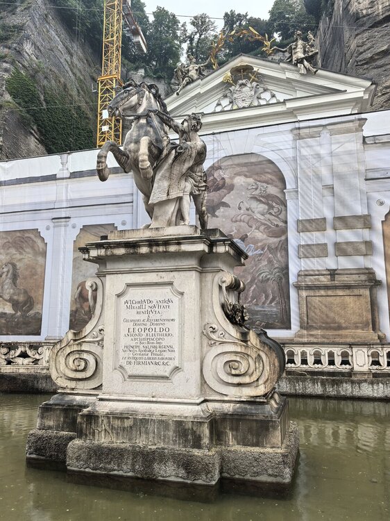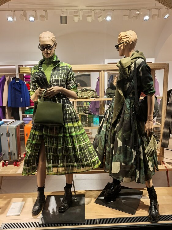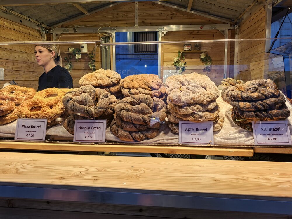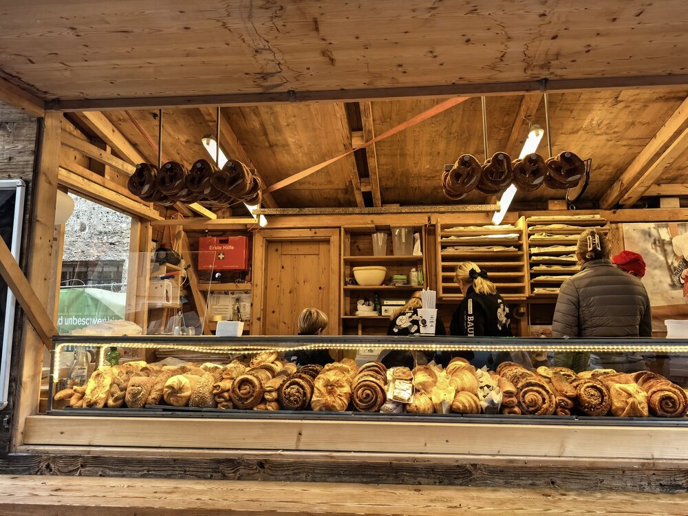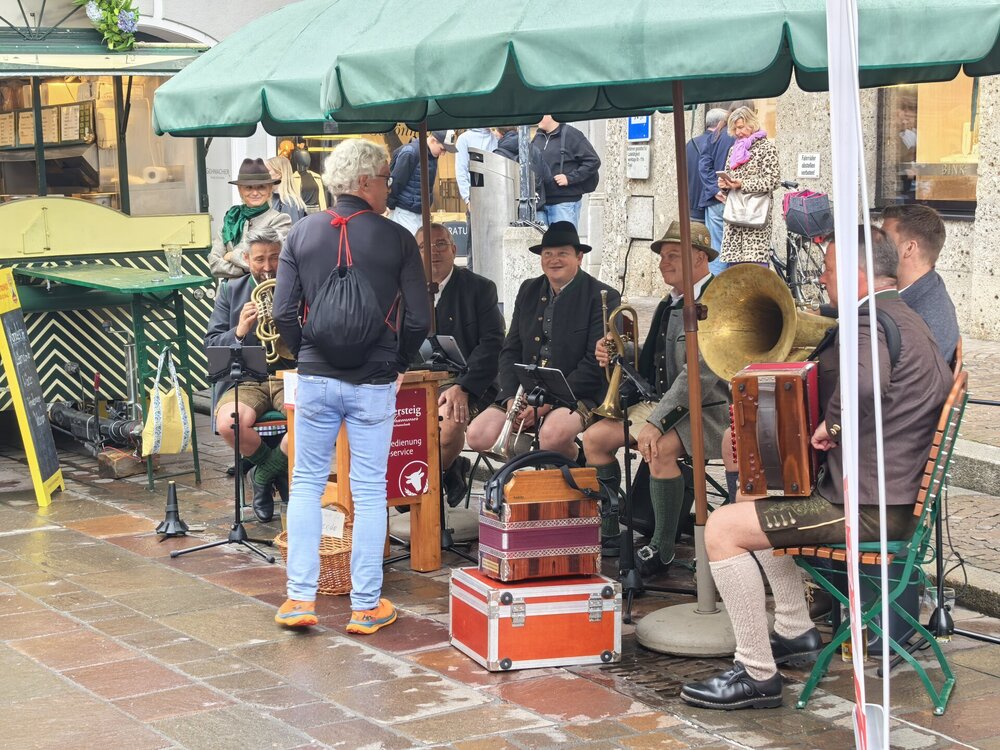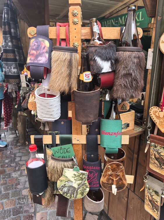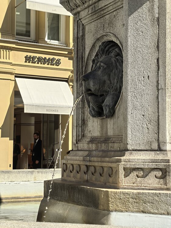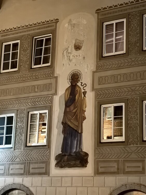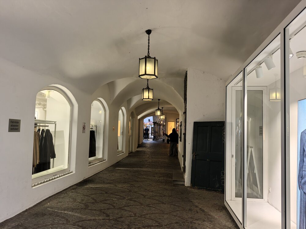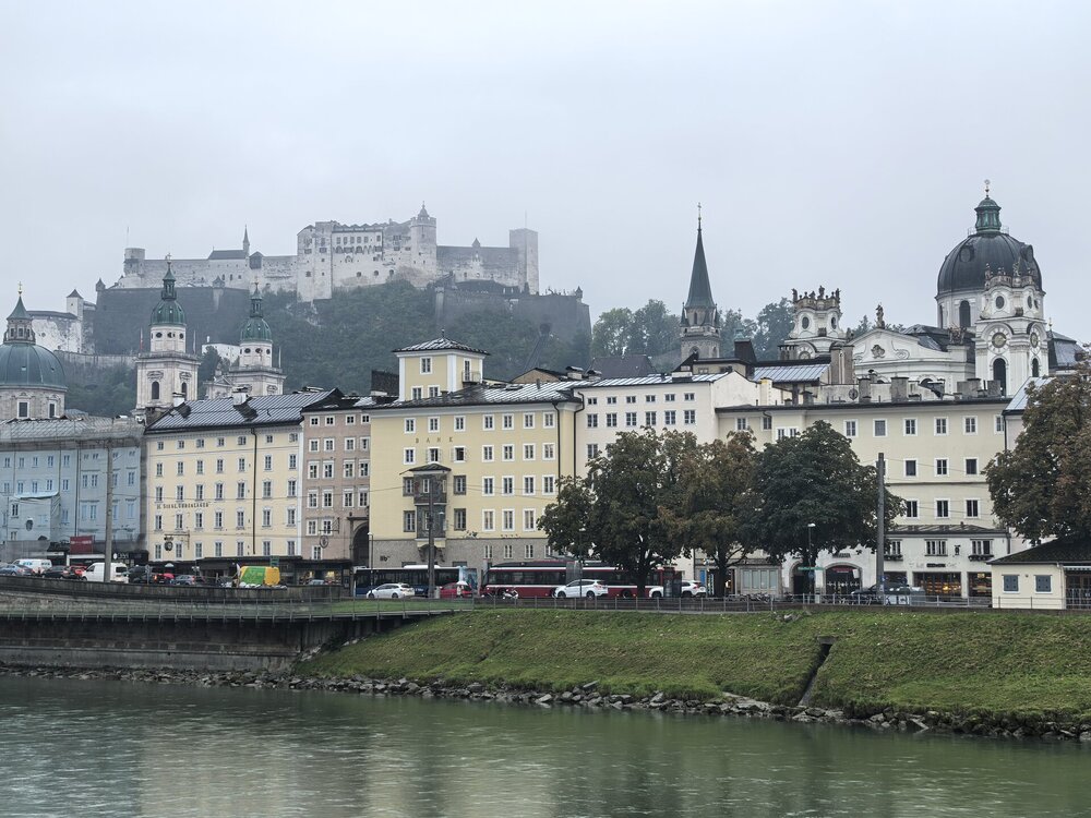 Мы уходим в историческую застройку Зальцбурга, она же торговая. Это мы любим)) А какие витрины манящие! Да ещё хитрые зальцбурчане сделали свои торговые ряды дожде-непроникаемыми. Мальчики могут немного пролистнуть, девочки, смотрим витрины. Мне очень понравилось!) Образ для городского мужчины-охотника)) Ну и всякая всячина. Тут можно и мужчинам посмотреть. Особенно на такие бутылконосители. И руки свободны, и пиво рядом. А это, судя по подтяжкам, одежда для пивного фестиваля как раз)) В одном из сувенирных магазинов встретила магнитики в виде таких часов. Моцарт был бы в шоке... От коммерции тут никуда не деться, а вывески они сделали не менее завораживающими. В Зальцбурге очень узкие улочки, поэтому дома за тобой подсматривают И смотрят сверху вниз А вот и он, дом Моцарта И кафе... Да, то самое, аутентичное, в котором придумали те самые круглые конфеты с изображением Моцарта. Они в серебряно-синей упаковке. Даже если вы купите две конфетки, вам их красиво упакуют. Одна конфетка стоит 2 евро, их можно купить поштучно. К слову упаковка подобных конфет с моцартом в Лидл стоила мне 2,59 евро. НО... Оригинальные конфеты с несколькими пралине, я бы не сказала что там чувствуется марципан, а конфеты из Лидл чистый марципан. Оригинальные конфеты делаются вручную, насаживаются на деревянную палочку и окунаются в шоколад с 60% содержанием какао. Потом это техническое отверстие заполняется шоколадом. Такие конфеты с пупочком получаются. В этом кафе мы решили немного отдохнуть и погреться, это было очень правильное решение. Мой совет, идите сразу на второй этаж, там почти никого нет, а на первое этаже очень шумно. К вам и там подойдут и спросят что вы хотите заказать. Сфотографировала меню для участников форума. Я выбирала десерт по красоте, которую оценила на первом этаже на витрине. Десерты от 5 евро. По поводу этого могу сказать, что коржики весьма твердые, что создает трудности при еде. Но вкусно. В общем кафе нам очень понравилось, уютно и вкусно посидели, обсудили увиденное. Вокруг кафедрального собора была ярмарка, было шумно и весело и, конечно, было много людей. Что изменилось в отрицательную сторону, так то что вход в Собор стал платный. Мы гуляли там абсолютно бесплатно до пандемии, там крестили Моцарта, да и вообще красивый храм, конечно. VID_20250924_100021.mp4 Группа уехала на фуникулере к замку, в небеса и туман, мы же остались здесь. Не знаю, почему-то никак не доберусь до этого замка. Ну погода же... ну не то. В Татрах так шли на верх горы, чтобы посмотреть на Морске око с высоты, а на половине пути обернулись, а там молочная пелена, никаких тебе очей морских))) В общем опять как-то не сложилось, надо возвращаться досматривать)) Какие-то знакомые буквы я там увидела)) VID_20250924_100749.mp4 Конечно, я попробовала этот брецель. Настоящий брецель. Печатный пресс?.. Станком не назовешь)) Позже увидим в Словении такое развлечение для туристов. На площади играли очень веселые музыканты. Не знаю насчет их веселой луши, но допинг у них точно был))) в перерывах они этого и не скрывали. Но, как обычно, только я достаю камеру снимать, так все смолкают.)) VID_20250924_120208.mp4 0% процентов осуждения, 100% понимания. В такой холод в такой одежде сидеть на одном месте сложновато. Немного погуляли подземными ходами Зальцбурга, находящимися в горе. Судя по запаху тут где-то расположена скрытая парковка. И рядом
