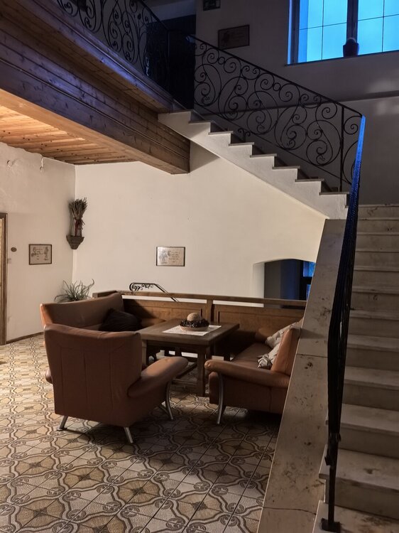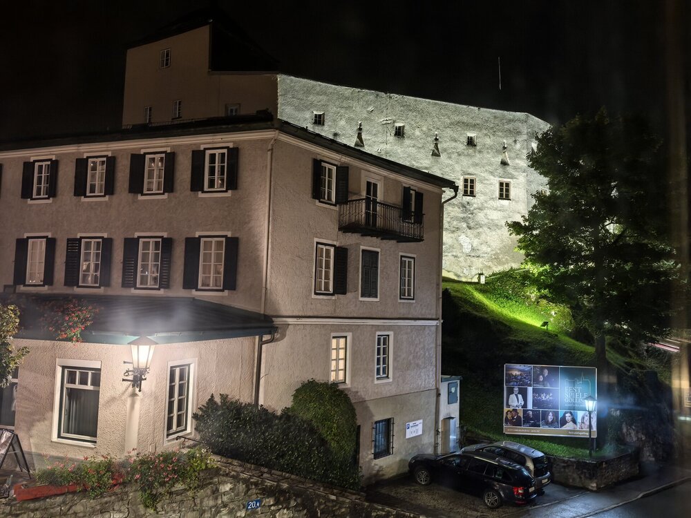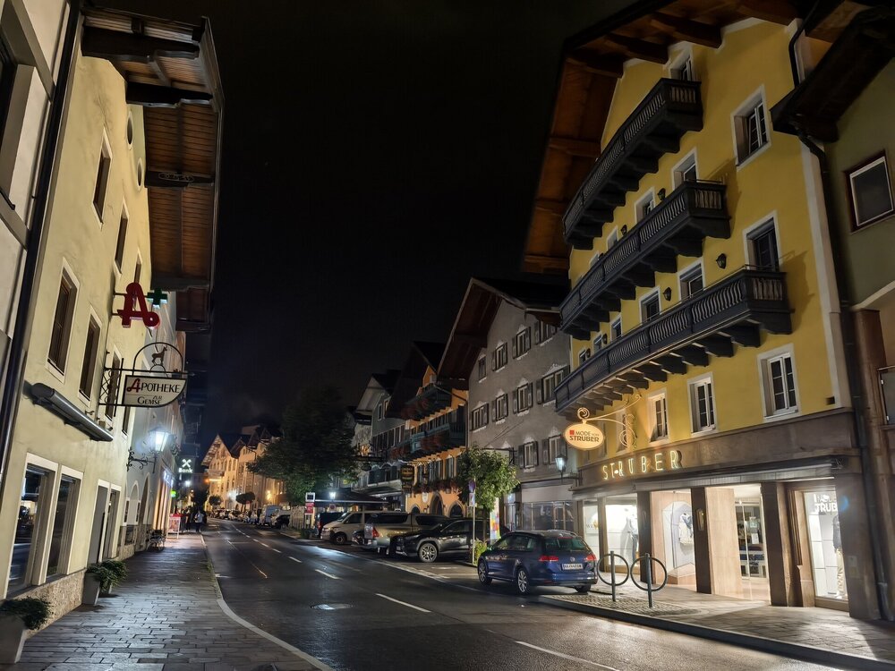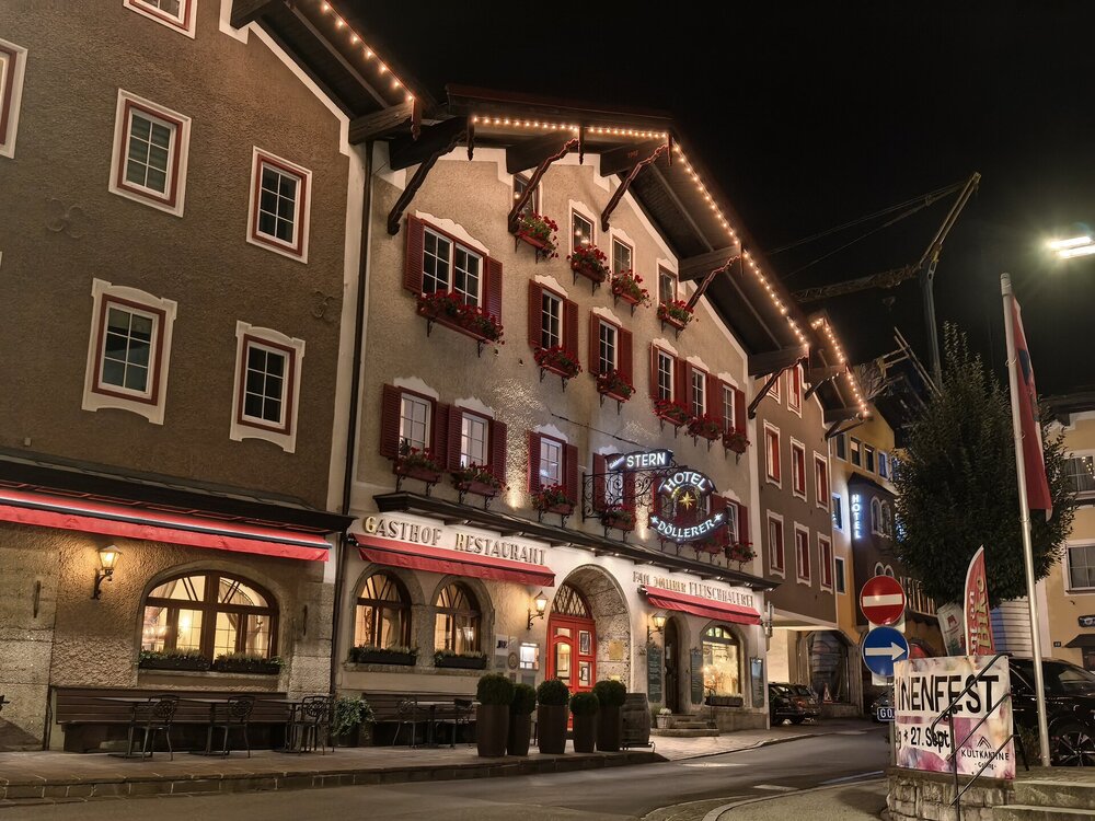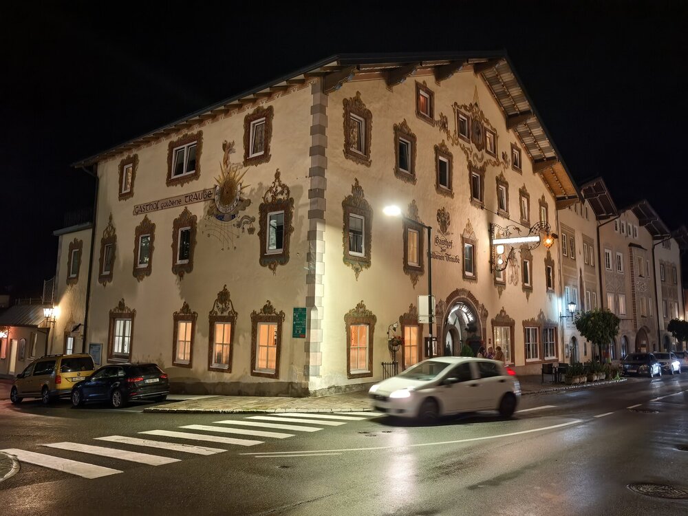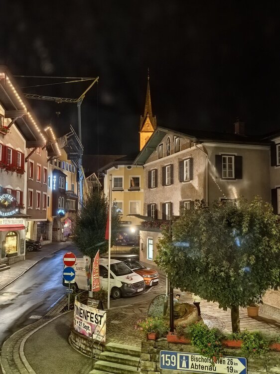 Две ночи этого тура мы жили в совсем крошечном городке Голлинг, расположенного у подножия Альп. Тут всего 4 тысячи жителей и пара главных улиц. Это городок из разряда маленьких, но милых. Отель находился центрее некуда и из наших окон был виден средневековый замок, в котором сейчас находится музей. По диагонали расположен ресторан, а чуть позади отеля пиццерия. Мы были в последней, весьма неплохо, а какой там штрудель! Но об этом позже. А вот ресторан со слов нашего мужчины-туриста оказался невнятным - паста оказалась не сытной. Отель снаружи выглядит так, Олег сказал, что это здание всегда было отелем, и ему за сотню лет. А внутри так И каждое утро на завтраке нас ждали такие салфеточки Хоть номер был не очень уютен (лично мне не хватало штор, не люблю жалюзи, тем более старого образца) и было прохладно (т.к. в эти дни температура покатились вниз, и мы всё же были в горах), но аутентичность отеля лично меня очень привлекла. Потому что он старый, с историей, в холле достаточно просторно и даже уютно. А новый, со СПА, с электронными ключами и фруктами со всего мира, с шампанским на завтраке, кофемашиной в номере отель есть сейчас в любом городе. Да, это тоже очень приятно, особенно я оценила в своё время удобство капсульной машины в номере, но пожить в горах в старинном отеле было не менее приятно. Немного ночных видов городка, тк, когда мы приезжали, было уже темно, всё же осень.