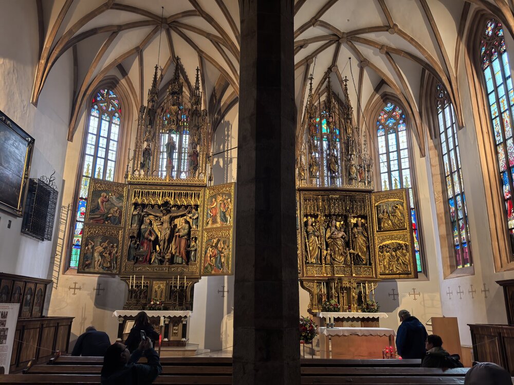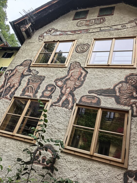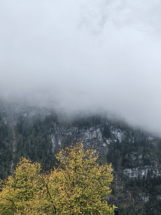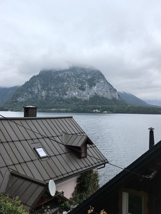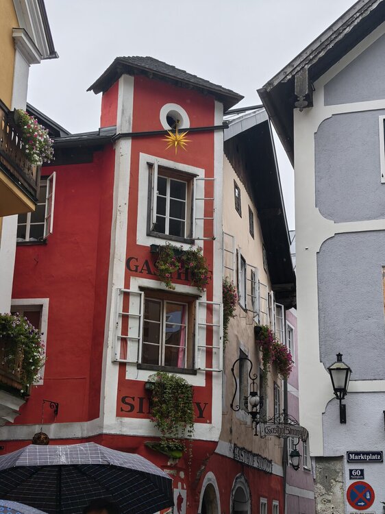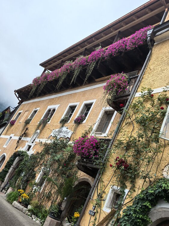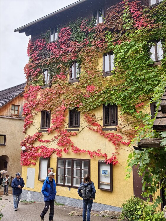 Но это не все точки на карте за сегодня. Мы едем в знаменитый Хальштатт, деревеньку на берегу озера, в которой проживает менее тысячи человека, но её исторический центр находится под охраной ЮНЕСКО. Совсем недавно вышел бессмысленный на мой взгляд фильм "Балерина", где много сцен происходит в этом городе. Посмотрела фильм только из-за видов Хальштатта, Будапешта и Сентендре. VID_20250924_140950.mp4 VID_20250924_141652.mp4 VID_20250924_142714.mp4 Город встречает нас туманом, периодически идёт дождь. VID_20250924_152955.mp4 Это поселение было "открыто" миру только в 19 веке, когда сюда прошла более-менее нормальная дорога вдоль озера. До этого момент до города шли узкие горные тропинки, ну или по озеру. А вообще люди сюда пришли не просто так, ведь здесь находятся соляные шахты возрастом более 2 тысяч лет, т.е. они разрабатывались ещё до нашей эры. Соль прекрасно хранит то что в неё попадёт, поэтому из шахт с свое время достали много интересных прекрасно-сохранившихся объектов. Я помню с посещения шахты в Величке под Краковом как нам рассказывали, что соль по ценности раньше была чуть ли ни как золото. И тот, кто добывал соль, был богат. Здесь микроскопическая и безумно дорогая платная парковка, автобусы приезжают, высаживают туристов и уезжают. А вот и тот вид. По канону, правда, фотографируют с противоположной стороны, там тоже есть смотровая площадка, но таких фотографий полно в интернете, да и оператор Балерины тоже снимал оттуда, мы не пошли, конечно, на ту дальнюю площадку, да и цели такой не было. Вот и памятник добытчикам соли. Носили соль женщины, мужчины были в шахтах. Городок расположился вдоль горы несколькими параллельными улицами, которые как ручейки кое-где пересекаются тропинками от горы. Как и любое подобное поселение, здесь очень живописно. В целом любое расположение домиков рядами друг над другом (будь то Берат, Хальштатт или поселок Рыбачий под родным Воронежем) всегда смотрится необычно и красиво, хотя это и не находка, просто по-другому из-за рельефа никак. Люди, как правило, пытаются украшать свои дома, встречаются даже маленькие палисаднички. Главный символ городка - протестантская церковь 19 века. Как и все храмы этой ветки христианства она очень проста внутри. Ещё здесь расположена церковь в романском стиле, первое упоминание которой датируется 12 веком. Вокруг располагается кладбище, а рядом костница с платным входом. Дело в том, что, конечно, здесь мало земли, и использовать её под кладбище людям показалось глупо, поэтому они нашли такой выход - хоронили сначала традиционным способом, а через 10 лет выкапывали то что осталось, отбеливали черепа, расписывали их, писали имя и годы жизни, и складывали в костницу. Так и приспособились. С появлением крематориев, такой ритуал последний раз проделывался в 90-х годах. Вход в церковь. Внутри красивые резные готические алтари. Они вырезаны в разное время. Сначала появился тот что слева, потом решили сделать тот что справа. К храмам мы шли по верхней улицы, а обратно идём по нижней улице. Рыночная площадь. В сувенирах тут продается соль. Тяжелая и дорогая, небольшая упаковочка в районе 10 евро. Вот и ещё одна моя туристическая цель закрыта - очень давно хотела посетить этот городок. Мы прощаемся в туманным Хальштаттом, но не прощаемся с регионом Зальцкаммергут. Впереди нас ждёт ещё один милый городок.