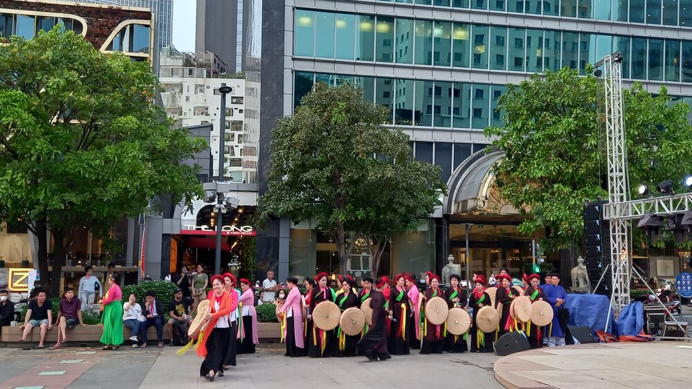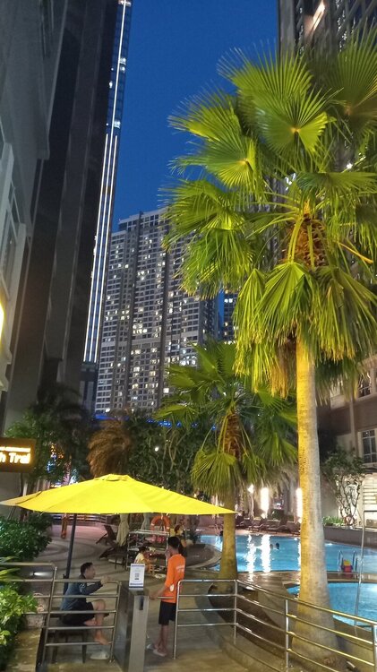 06. По прибытию в Сайгон, не тратя ни минуты времени, из отеля пошел с гидом разгуливать по городу, смотреть на него пока не стемнело. Было очень интересно встречать уже знакомые места, но многое в центре города за четыре года перенастроили. Сайгон развивается вовсю. Попали на подготовку празднования, кажется, 49-летия Воссоединения Вьетнама. Было очень интересно наблюдать за этим действом. Потом много еще где ходили и любовались вечерним городом. Апогеем было взбирание на 75-ый этаж самого высокого сайгонского небоскреба-отеля «Vinpearl Luxury Landmark 81» в бар. Там очень неплохо посидели. Гид пил бельгийское, а я, как в прошлый раз, заказал себе и понаслаждался бокалом «Сайгонского розового» (он - зараза, стоил как 12-ть бутылок обычного пива по 0,5 литра! Но жадничать я не стал - не каждый год я мотаюсь во Вьетнам!!)