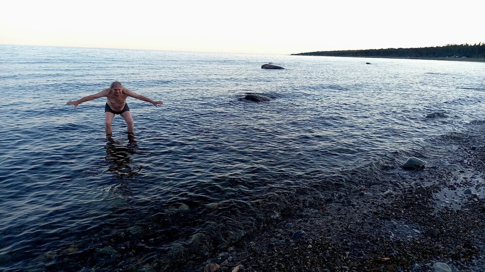 48. Из-за соседнего столика позвали вместе искупаться в океане. Я отказался, потом посожалел и... полез в Ледовитый с жутко не теплой водицей.