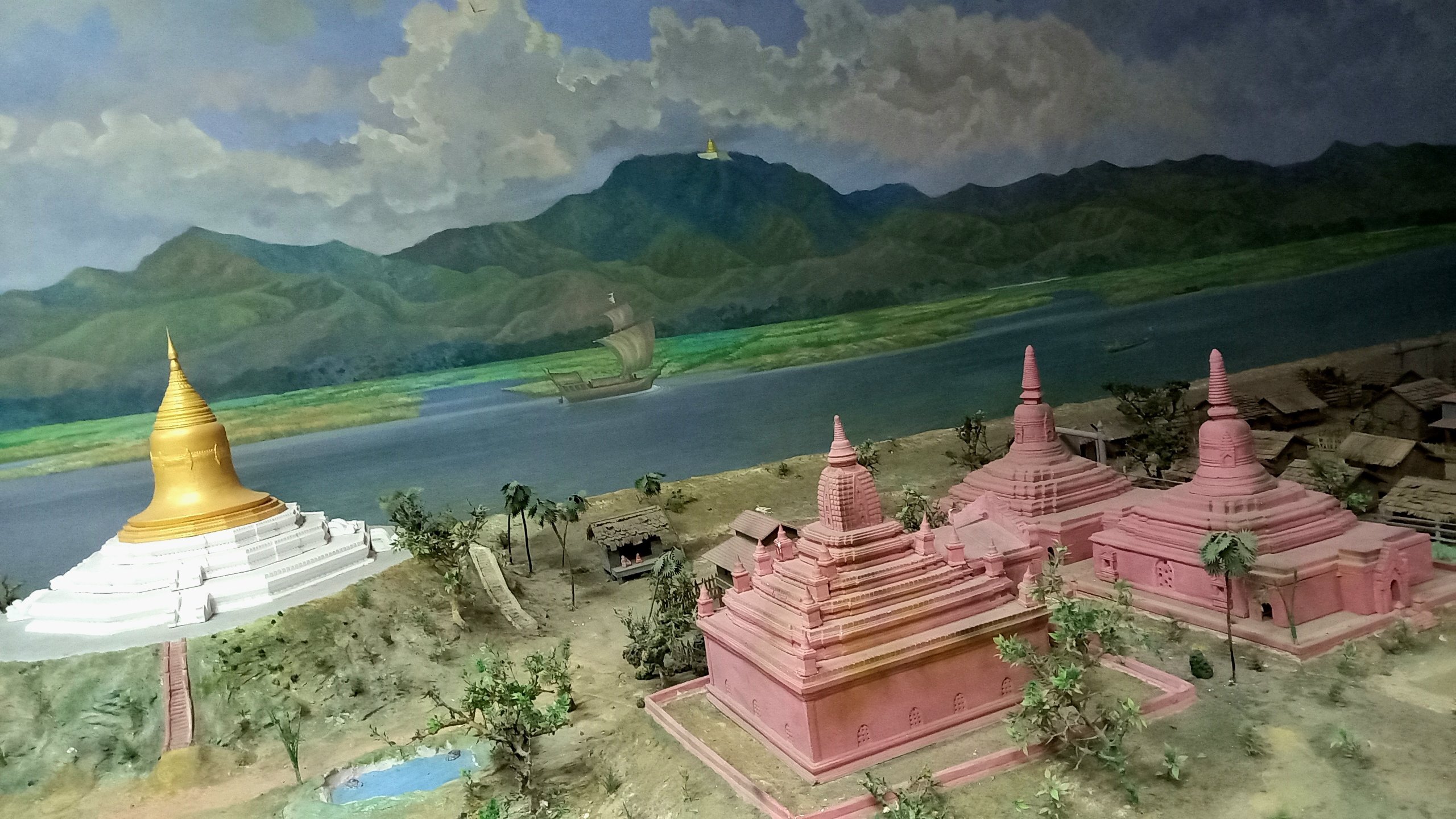 В музее я успел посетить много выставочных залов. На первом этаже находился полностью декорированный зал с кондиционером, достаточно большой для проведения международной конференции, симпозиума, семинара или важной встречи. На этом этаже находится выставочный зал для предметов изобразительного искусства, таких как терракота, лепнина, резьба по дереву, каменные скульптуры, изделия из металла, лаковые изделия. В выставочном зале были представлены модели 55-ти различных парикмахеров(!), используемых модными мастерами... Здесь же были представлены оригиналы и чернильные копии каменных надписей Багана; видел разные формы эпиграфики, прошелся по галерее, где были картины известных современных художников Мьянмы, изображающие общественную жизнь и военную мощь древнего Багана. Поодаль располагались копии фресок на стенах и потолках древних храмов, а также небольшой выставочный зал, в котором представлены модели Баганских памятников архитектурного и художественного чуда.