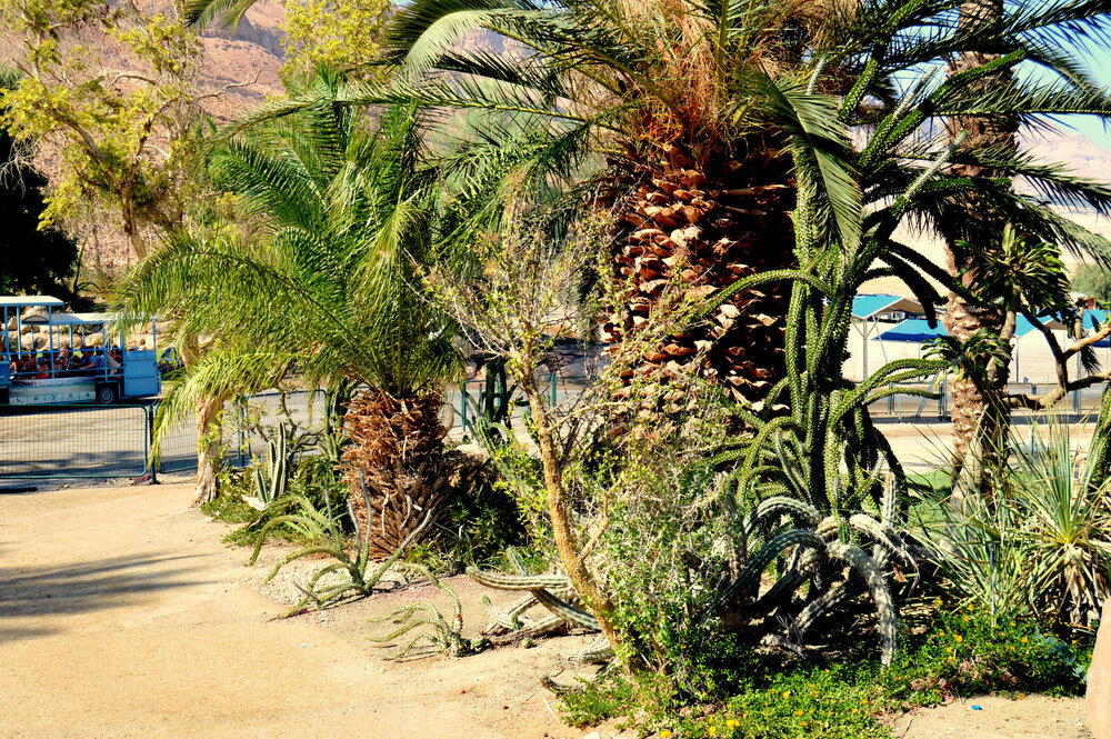 Моя дорога к Иордану вспоминается, прежде всего, как сочетание желто-бурого цвета пустынных равнин, небесно-голубого озера Кинерет, бледно-лазурного Мертвого моря. Между ними - зеленовато-желтая вода Иордана, плюс ярко-зеленые оазисы оливковых рощ, виноградников, банановых и финиковых садов, пальмовых плантаций. Дорога в основном проходила вдоль Иорданской границы и мимо арабских поселений (это - фактор нестабильности, особенно если ехать вечером с наступлением темноты; дорогу патрулировали израильские военные).