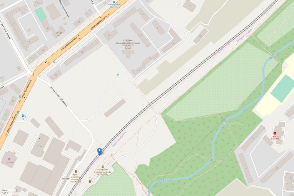 На рельсах не поставишь мемориала. Поэтому здесь их два, "официальный" и "народный", по разные стороны железнодорожных путей (это так по-нашему). Навигатор выводит к народному. Я думаю, это правильно.