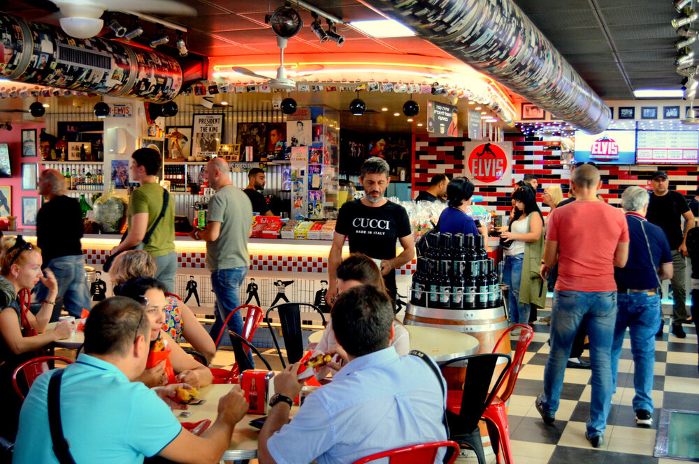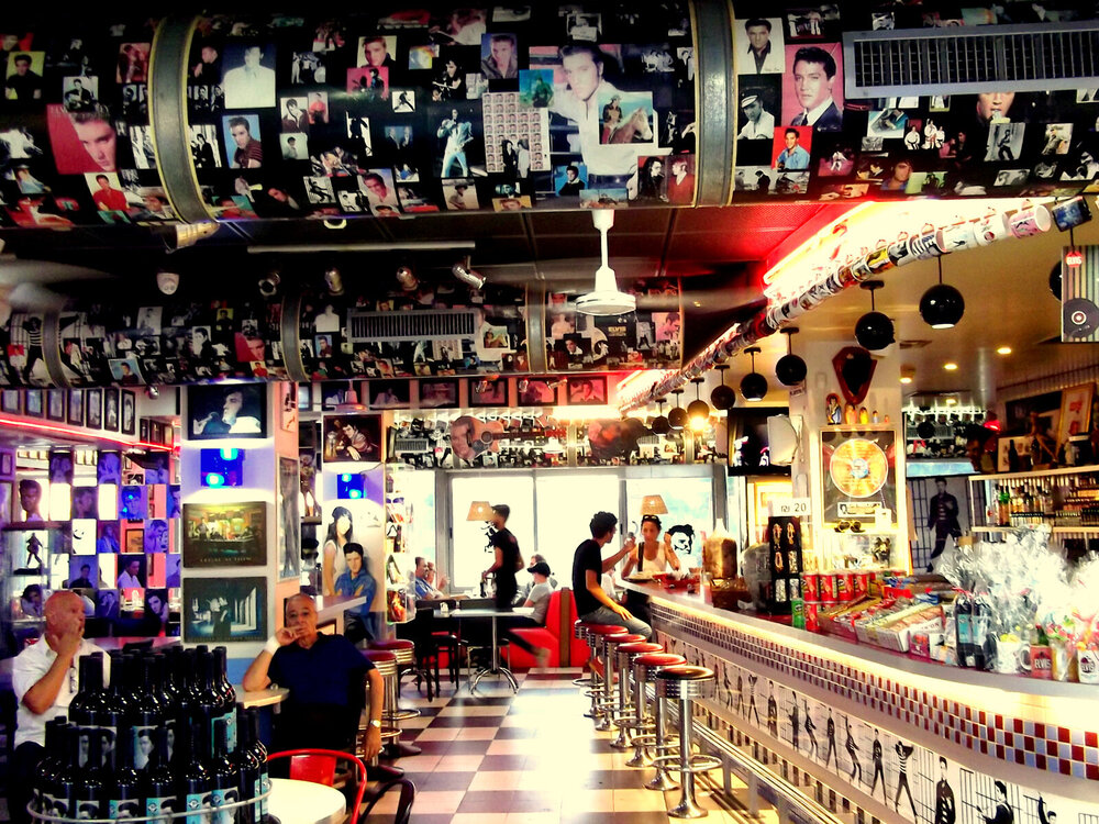 Кафе «Elvis» не отличалось бы от других тысяч подобных закусочных, если бы хозяева в свое время не догадались сделать что-то особенное и не быть похожими на других, а создали из обычного бара, по-настоящему, стильное местечко. Об остальном писать, на самом деле, особо нечего. Цены совсем не низкие, да и кофе паршивый. Тем не менее, из-за интересного подхода к дизайну центра-кафе и его особому стилю, я рекомендую его к посещению.