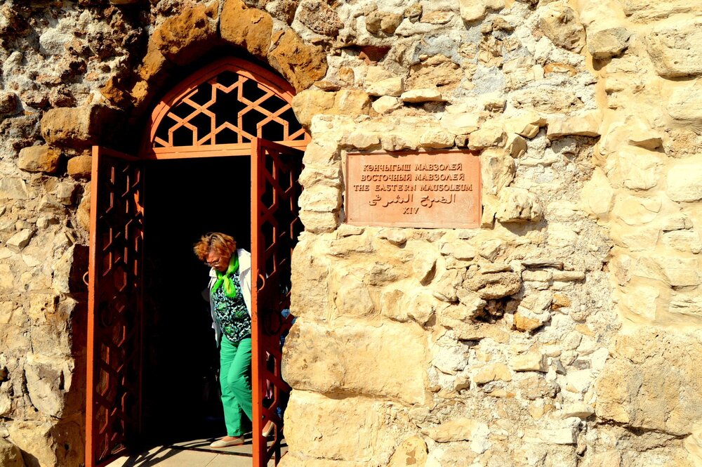 Долго ходил-бродил по развалинам и оказался у Восточного мавзолея, который возвели в XIV веке как усыпальницу для знатных мусульман (вход был свободный). Здание отлично сохранилось; оно имеет квадратное основание и восьмиугольную башню; на куполе рассмотрел небольшие юрты-отверстия; внутри расположилась бесплатная коллекция археологических раскопок. В Болгаре два мавзолея - восточный и северный. Второй еще называют «Монастырским погребом» (раньше в нем хранили продукты питания). Его фундамент и стены подлинные, остальные части сооружения отреставрировали. Внутри выставлены могильные плиты, которые в разное время были найдены на территории города. В центре зала - интерактивный терминал, с помощью которого я узнал обо всех экспонатах.