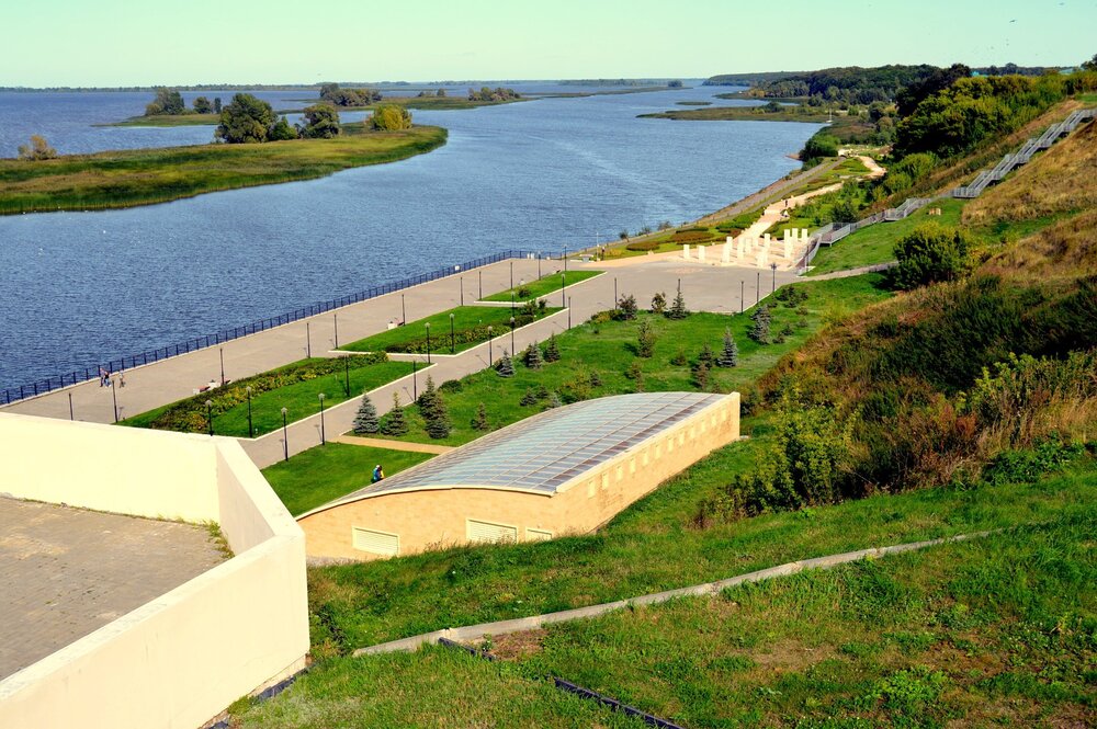 Погулял по речному порту, который разместился в том же здании, что и Музей болгарской цивилизации, только на первом этаже (его торжественное открытие произошло в 2013 году). Прошел мимо внушительной очереди, где продавали билеты на теплоход «Метеор». Нижним уровнем сооружения перешел на привокзальную площадь и причал, где были пришвартованы несколько теплоходов. Полюбовался живописным видом на Волгу и пошел к Соборной мечети - яркому памятнику архитектуры, датируемому XIII веком, который велел построить лично хан Батый. Первоначально мечеть имела форму прямоугольника, внутри было 12-ть колонн, каменные стены, деревянные полы. Сооружение сильно пострадало в ходе многочисленных войн. К моему посещению сохранился фундамент, башни и стены; все остальные элементы здания были не подлинные (к сожалению, от Соборной мечети почти ничего не осталось). С ней связана красивая легенда - говорят, если прикоснуться к колонне, заветное желание обязательно сбудется; конечно, я дотронулся к ней и загадал заветное вожделение (скажу по секрету - увидеть город цивилизации инков Мачу Пикчу и каменные монолитные статуи на острове Пасхи!)