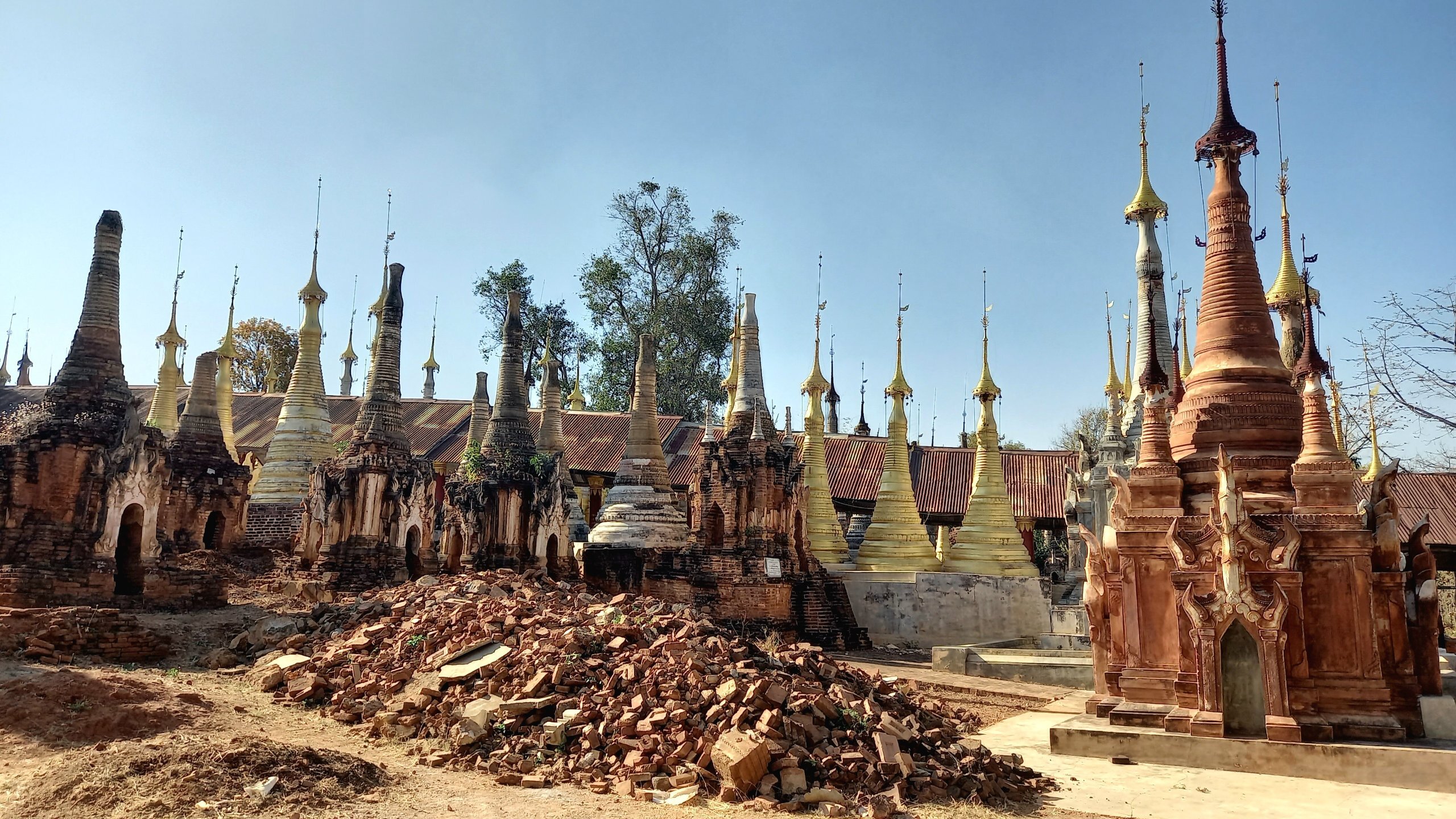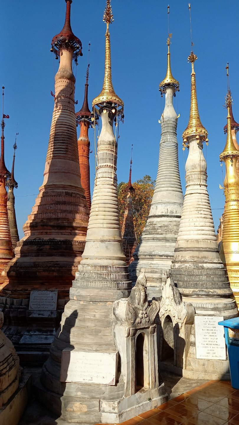 Здесь находится одно из самых неразгаданных тайных мест в Азии под названием Индейн. Расположено оно также на озере Инле. Я успел уже многое повидать в Мьянме, но это.., как мне кажется, одина из самых крутых историй. Сейчас Индейн - это более четырёх тысяч ступ(!!), раскиданных по горной местности. Ни одно из этих строений официально не охраняется законом. Группы из сотен ступ здесь устремляют в небо свои шпили, увенчанные мелодичными колокольчиками. История множества этих древних пагод окутана тайной...
