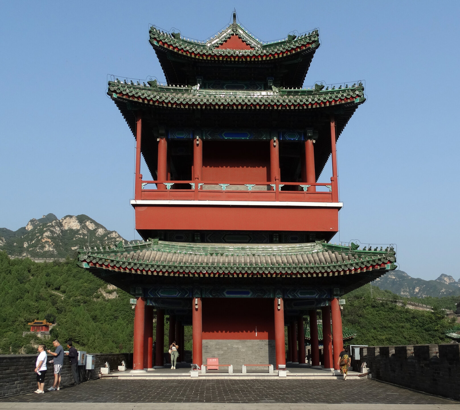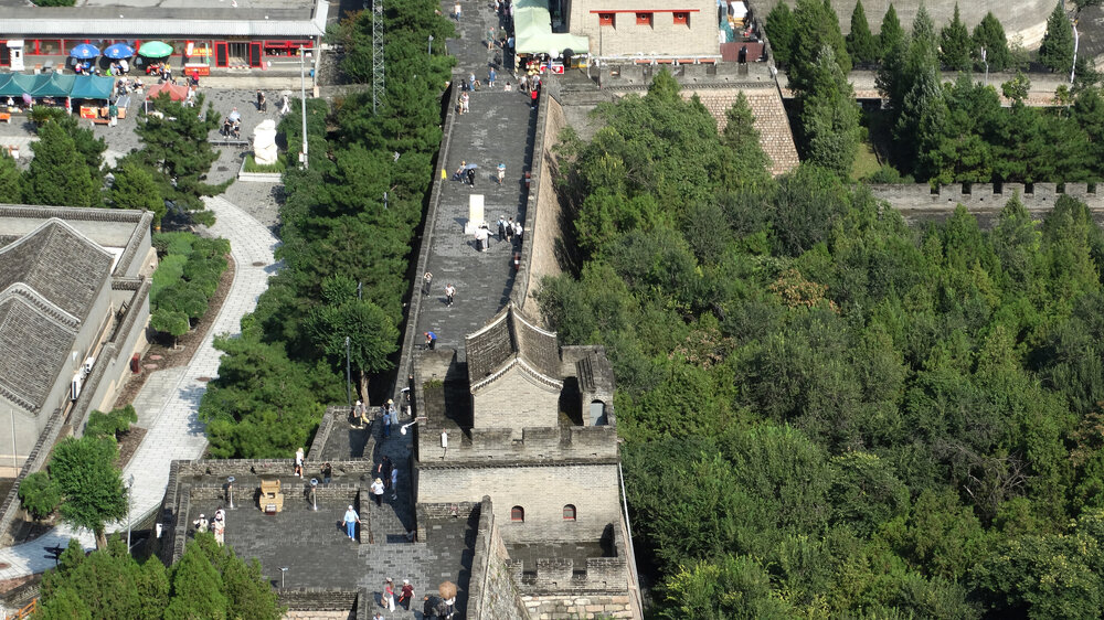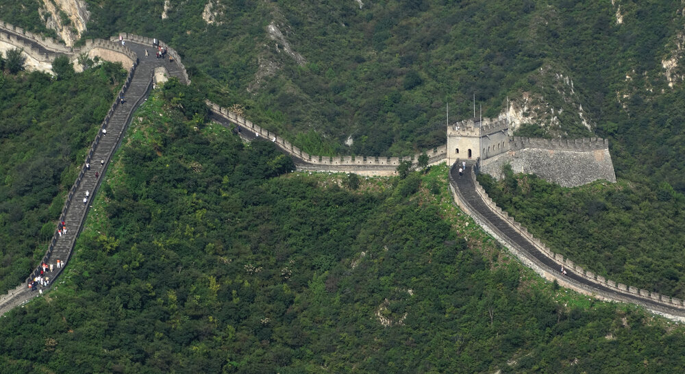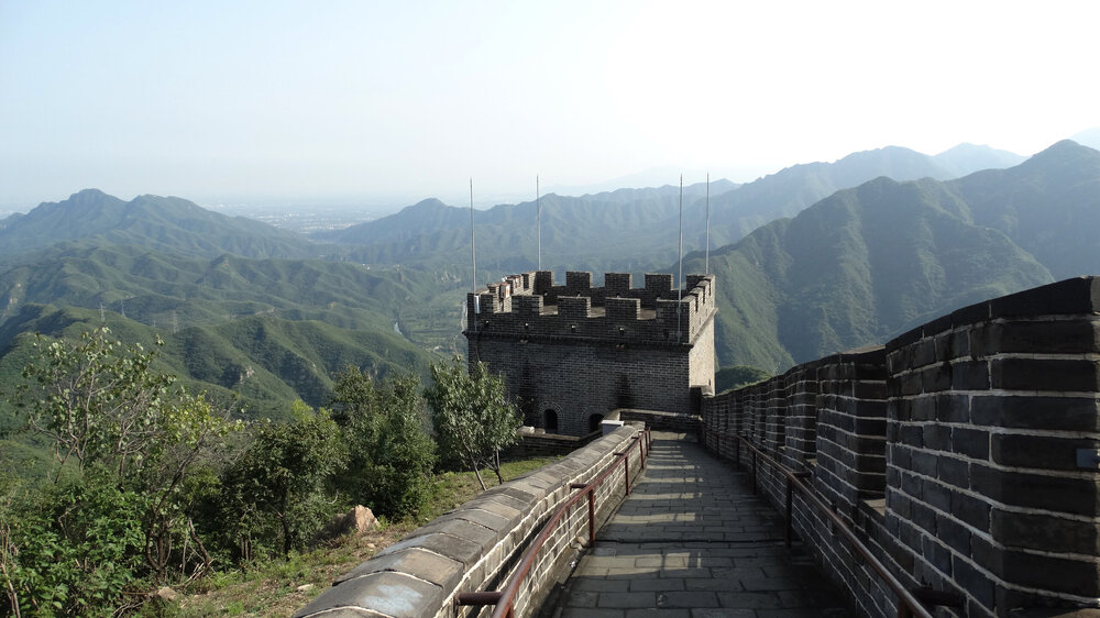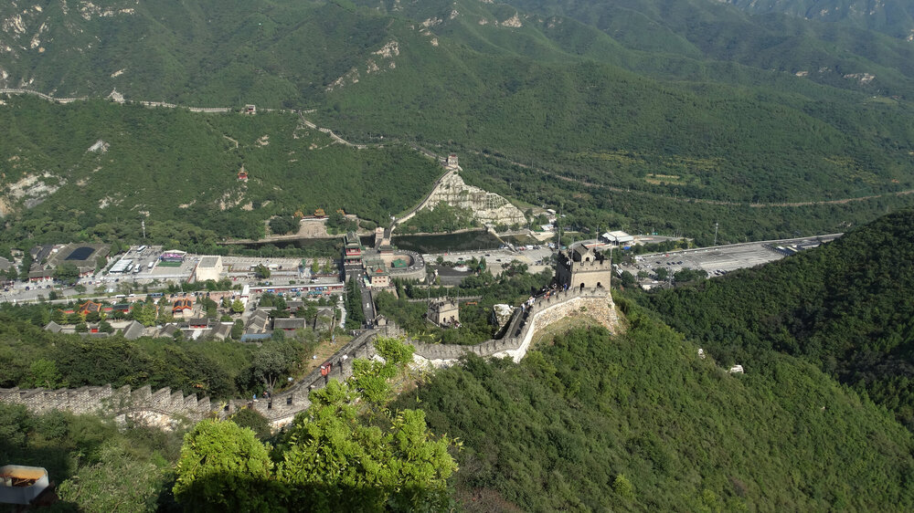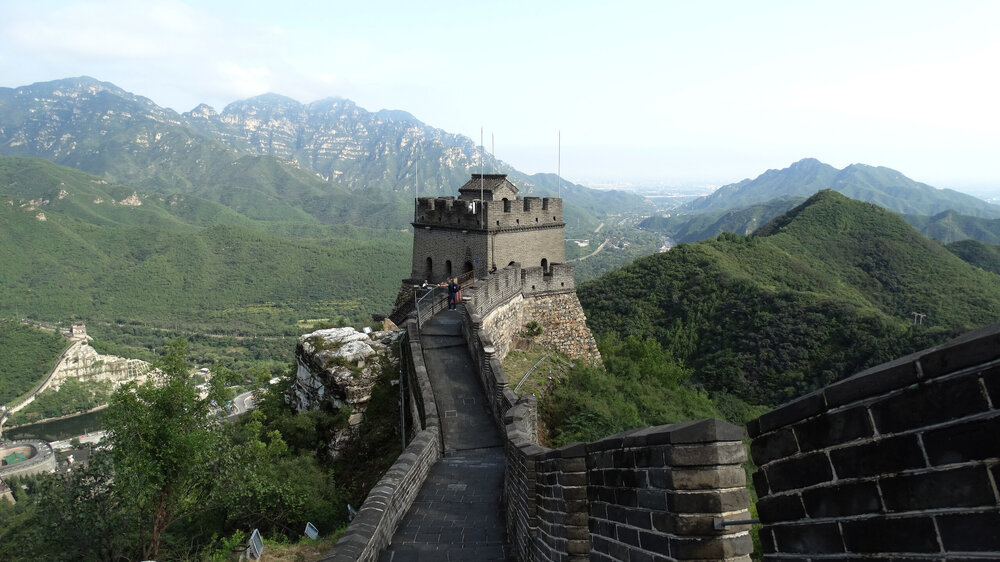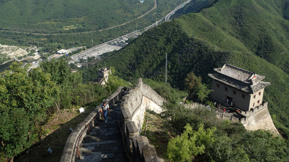 29 балловНас ждет самая известная достопримечательность Китая – Великая Китайская стена – объект всемирного наследия ЮНЕСКО и одно из семи современных чудес света. В настоящее время стена открыта для посещения не полностью, а отдельными участками, рядом с Пекином находятся три из них: Бадалин, Мутяньюй и Цзюйюнгуань. На всякий случай дома изучили все три, но больше хотели попасть на Цзюйюнгуань. Почему? А у него самое труднопроизносимое название. Шучу, конечно, не поэтому. Во-первых, это не просто участок стены, а целый укрепрайон, его даже называют Застава Цзюйюнгуань. В долине, окруженной со всех сторон высокими горами, были построены Северные (Бейгуан) и Южные (Нангуан) ворота, соединенные между собой крепостными стенами. Внутри оставалась значительная территория, на которой мог в безопасности располагаться достаточно большой гарнизон со всей инфраструктурой. Во-вторых, участок круговой. При наличии достаточного времени, можно пройти его весь, не возвращаясь обратно. На самом деле мы так и не поняли, реально это сделать или все-таки где-то проход перекрыт. В-третьих, сюда не ходят рейсовые автобусы, рядом нет железной дороги. А значит, народа должно быть поменьше, чем на популярном участке Бадалин. И еще один большой плюс Заставы Цзюйюнгуань – от парковки до стены не надо подниматься, вы практически въезжаете на стену прямо на автобусе! В принципе, из него можно и не выходить, вы уже покорили Великую Китайскую стену. Есть еще один сюрприз, о котором расскажу, как только мы немного поднимемся по стене. Как вы уже поняли, нас привезли именно на Цзюйюнгуань! Дома мы с Олей договорились, что пойдем на восточную часть Заставы, нам показалось, что там виды красивее, да и высота поменьше. Но Наташа сказала, что группам можно подниматься только по западной ветке, так что идем туда. Так как я большая и ленивая, как панда, а Оля стройная и быстрая, как газель, мы, тоже заранее, решили идти каждая в своем темпе и подняться, сколько получится за отведенные нам два с небольшим часа. Поэтому каждая из нас расскажет вам о своем подъеме отдельно. Итак, стартуем! Сначала стена заманивает вас широким пологим участком, рядом целый городок красивых домиков, идти пока несложно, первую башню проскочили и не заметили, да еще и не слишком жарко. Гиды рассказали, что в первой половине дня здесь был дождь и группы разворачивали, а мы приехали после обеда, вы сами видите, какая замечательная погода. Но если посмотреть вверх, то дальше уже появляются ступени, стена сужается, угол наклона увеличивается. Пока еще прилично выглядим, надо сфотографироваться. Оля убегает вверх, а я решаю, что до следующей площадки точно дотяну, а там посмотрим. Виды отсюда умопомрачительные! Часть группы осталась здесь любоваться пейзажами, а я поднимаюсь дальше. Олю уже и не видно. То, что можно идти в своем темпе, пройти столько, сколько тебе по силам, по самочувствию и по желанию, очень радует. Нужно следить только за временем, а в остальном ты – вольная птица. Тех, кто поднимется еще выше, ждет сюрприз. Оказывается, на участке Цзюйюнгуань есть река! Если не знать об этом заранее, то ее можно и не увидеть. А реки обычно очень оживляют и без того красивый пейзаж. Решаю спускаться и попробовать сходить в другую сторону. Спуск ничем не легче подъема, так как все ступени разной высоты и не получае