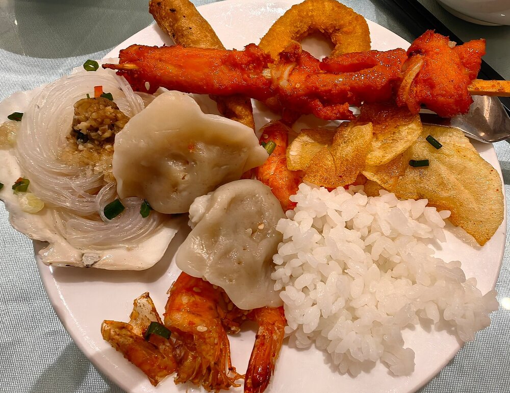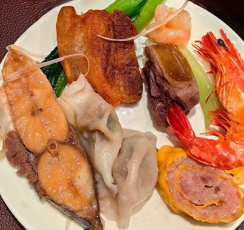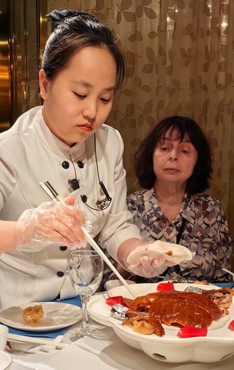 28 балловПосле покорения Великой Китайской стены и красочного Шоу акробатов хотелось сделать одно очень важное дело. Правильно, поесть! А у нас как раз запланирован ужин с уткой по-пекински. И пока ее готовят, расскажу вам о завтраках и обедах в туре. Во всех отелях были завтраки в формате «шведский стол». Из привычного нам: омлет и яичница, блинчики, иногда сыр и сосиски, йогурты (очень вкусные). Остальная еда была китайской, поэтому на завтрак можно было поесть суп, пельмени, мясо с грибами, батат. Старались брать разное, понемногу, и пробовать осторожно, потому что часто трудно определить, что за продукт перед вами. Особенно тяжело было выбирать десерты. Берешь слойку с повидлом, а она не сладкая, а очень острая. Думаешь, что взял рисовую булочку с ореховой пастой, а это пирожок с мясом. Рядом стоят два блюда, в одном что-то, похожее на дольки яблок в белом соусе, в соседнем что-то желтое, возможно дыня, тоже в соусе. Берем: в первом действительно яблоки в йогурте, во втором кусочки отварного картофеля. Вот димсамы (пельмени) ни разу не подвели, просто были с разными начинками. Главное – не спутать их с баоцзы (паровыми булочками). И те, и другие подают в плетеных лукошках, в которых они и готовятся. Из фруктов всегда были ююба, арбуз, дыня. А также соки, чай, кофе. В общем, голодными не уйдете, тем более никто не заставляет есть палочками. Вилки, ножи и ложки в наличии. На двух или трех обедах тоже был шведский стол. А с остальными обедами всё как в известном меме: ничего не понятно, но очень интересно. Стол в китайском ресторане – круглый, размеры разные, в зависимости от числа гостей. У нас были на 10 человек. В центре стола – стеклянный крутящийся диск, на который выставляются все блюда. Это удобно, «вращаешь барабан» и выбираешь то, что тебе нравится. В результате есть возможность попробовать более десятка различных блюд. У каждого есть своя тарелка, пиала для супа, чашка и столовые приборы. Хлеба нет. На гарнир обычно подают отварной пресный рис. Это даже не совсем гарнир: рис компенсирует остроту и пряность блюд и таким образом защищает желудок. Сначала нам было непонятно: как это рис вместо хлеба? Но уже на третий день привыкли и поняли важность этого продукта, и, если на стол долго не подавали рис, мы просили его принести. Несколько раз мы пришли к полностью накрытому столу, удалось сфотографировать целиком, но обычно блюда подавали постепенно, тут же разбирали, пробовали и пытались понять, что принесли. Это увлекательный процесс, мы выработали свои правила. Сначала пробовал один и первым делом говорил остальным, острое или нет. Дальше подключались остальные и в процессе обсуждения выясняли, что кладем в рот. Но это не значит, что мы угадывали! Потому что готовят в Китае всё, кроме мяса дракона, так как это у них священное животное. На каждом обеде точно были блюда из курицы, креветки, рыба, салат, всегда был какой-нибудь суп. Почти все обеды завершались арбузом. Мы так привыкли, что, когда его не дали, даже не хотели уходить. Кое-что удалось опознать. Традиционное китайское блюдо — пельмени. Китайцы кладут в них самые неожиданные вещи и в зависимости от начинки придают им форму. Так, пельмени с уткой – в форме птички, с капустой – в форме кочана, со шпинатом – зеленого цвета. Все это готовится на парý. Классические пельмени с говядиной и свининой варятся.