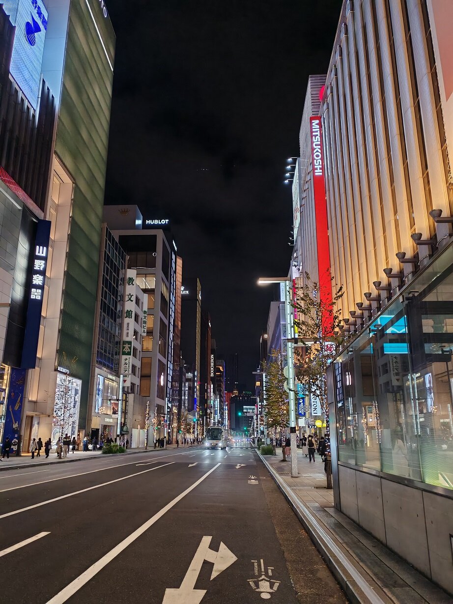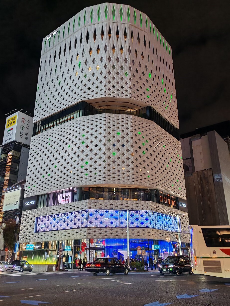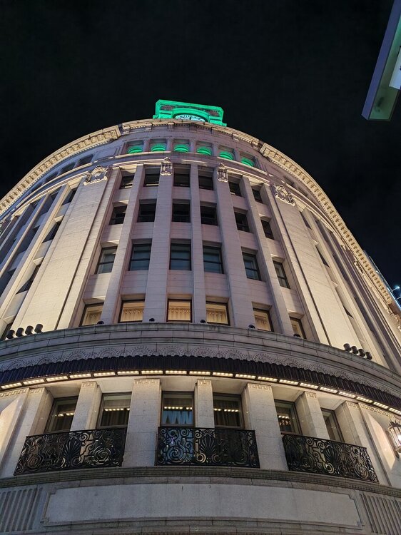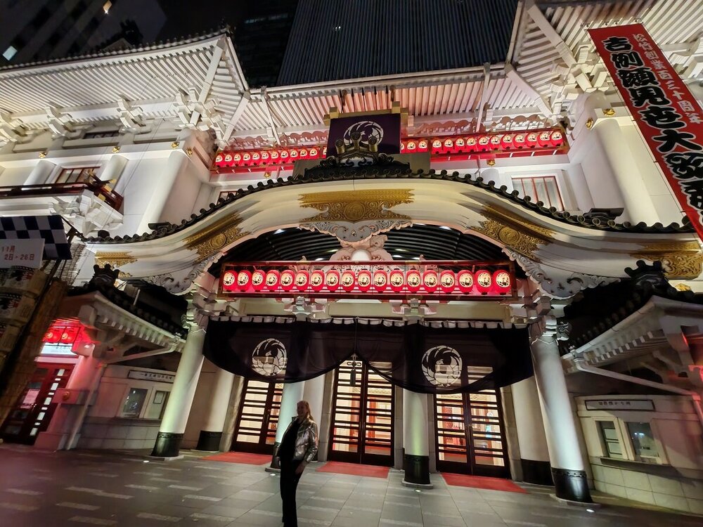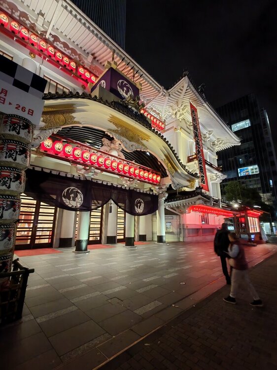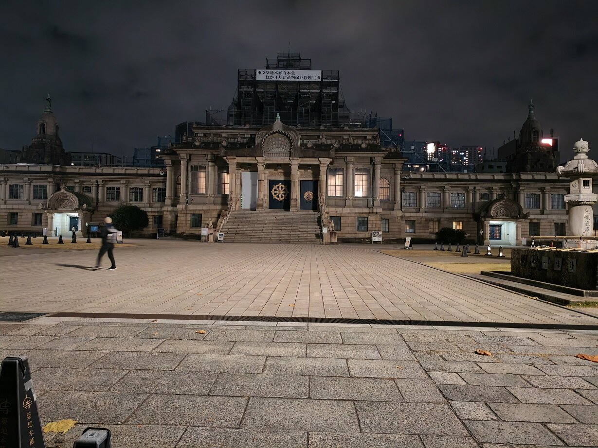 Здание универмага с часовой башней Гинза Вако в стиле Ар-деко Историческое здание театра кабуки «Кабукинда» XIXвека, где до сих пор проходят представления. Гуляем, наблюдаем 113.mp4 Необычный буддийский храм Цукидзи Хонган-дзи XVII века в вечерней подсветке было последней точкой перед трансфером в отель.19 баллов