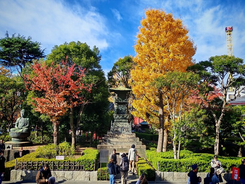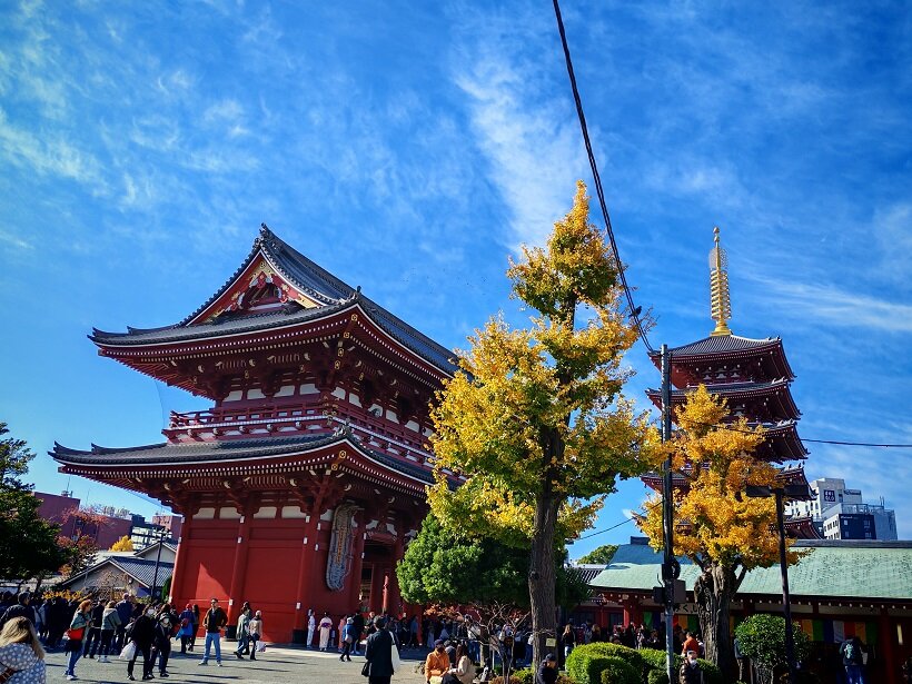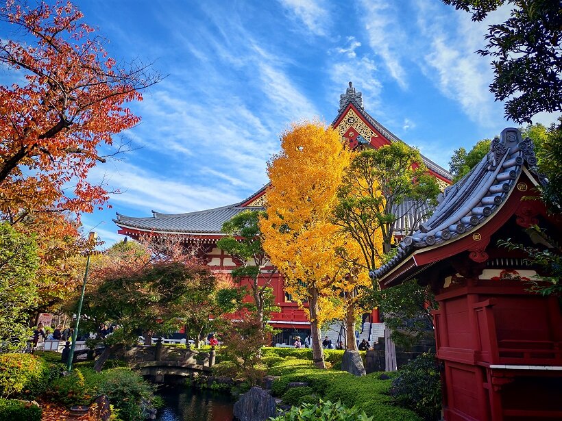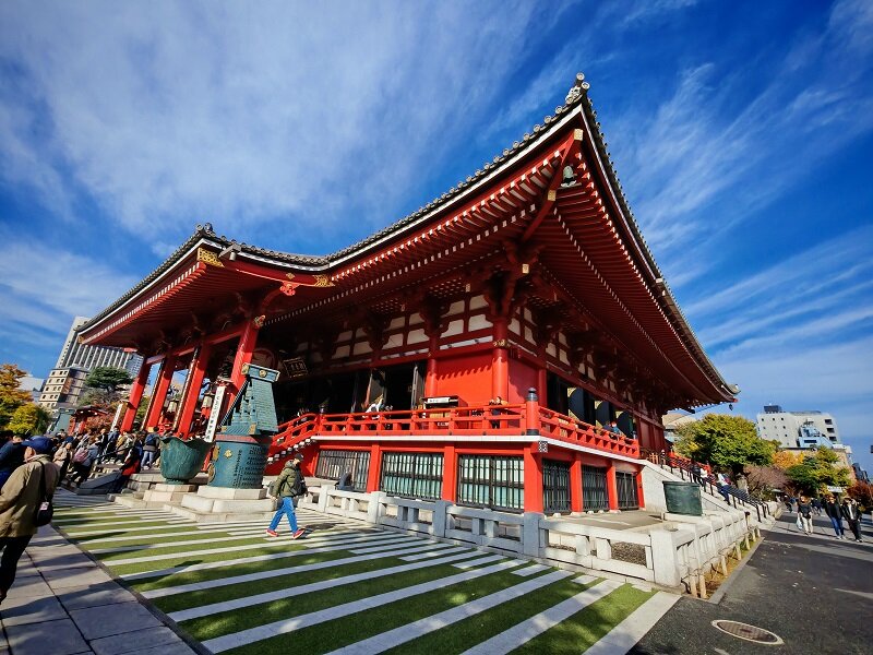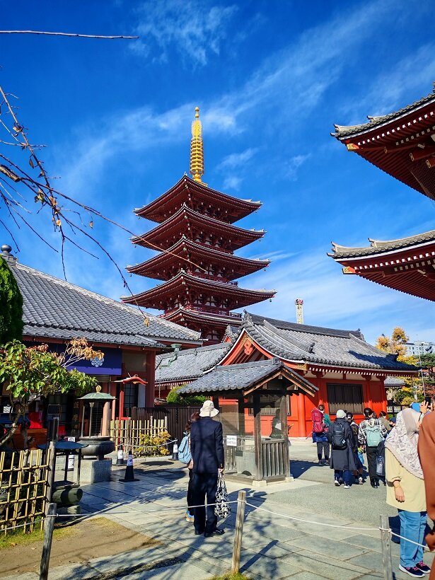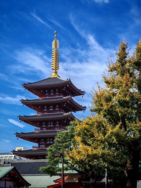 Еще одни красные врата в конце торговой улицы ведут непосредственно в двор храма. 1-12.mp4 На территории Сэнсо-дзи стоит несколько величественных пагод, а также главный зал в честь бодхисатвы Канон 1-5.mp418 баллов