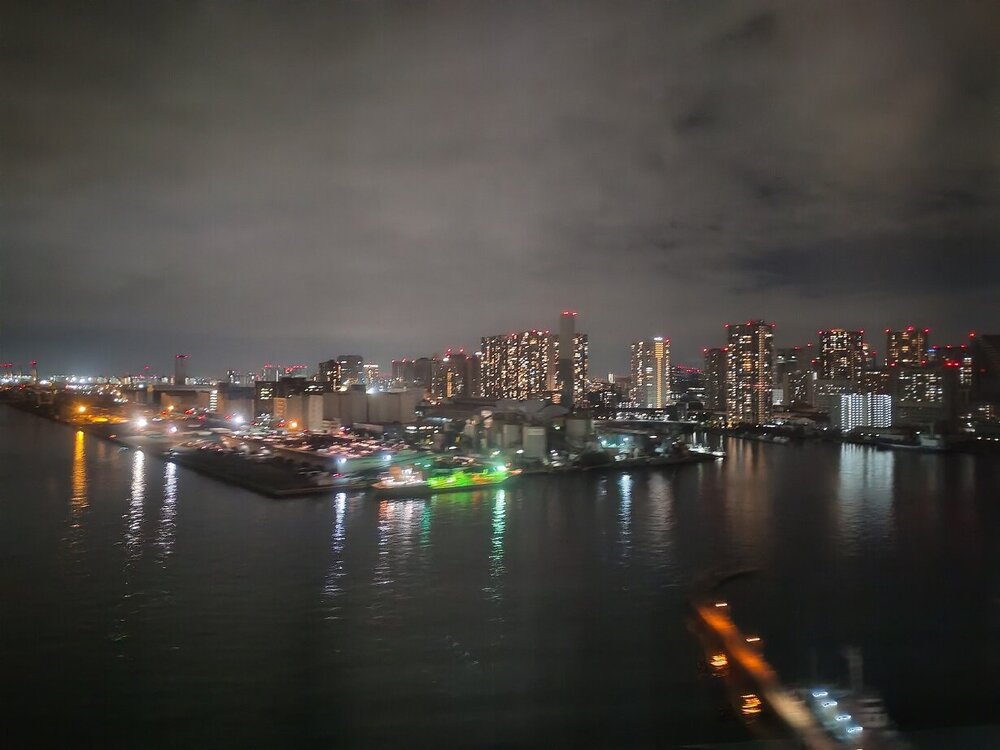 Первый групповой обед (а по времени уже ужин) был в ресторане торгового центра с потрясающим видом на Токийский залив. 1.mp4 Меню шведский стол. Разнообразно, вкусно. 2.mp4 3.mp4 Хорошо, что никуда не торопились, перепробовали ууууусё, пообщались и на террасу вышли осмотреться вокруг. 4.mp424 балла