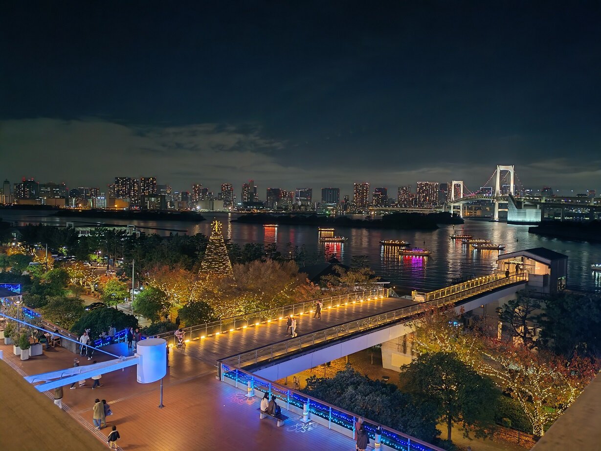 2 День. 23 ноября Токио Сам день начался где-то в воздухе ))) А вот именно экскурсионная программа началась практически у выхода из аэропорта. Едем знакомиться с Японией, вечерний осмотр Токио. Мы едем на остров Одайба – это искусственный остров в Токийском заливе, соединенный с материковой частью Радужным мостом. Из автобуса знакомимся с огромной (19метров и вес 49 тонн) статуей робота-трансформера Гандам. приметили башню Tokyo Tower, чуть позже подробнее её разглядим. Наш гид по Токио Татьяна рассказывает основные данные по Японии и Токио, пока мы любуемся из автобуса во все глаза на ярко освещенный город. Как же красив ночной Токио, и это только начало!26 баллов