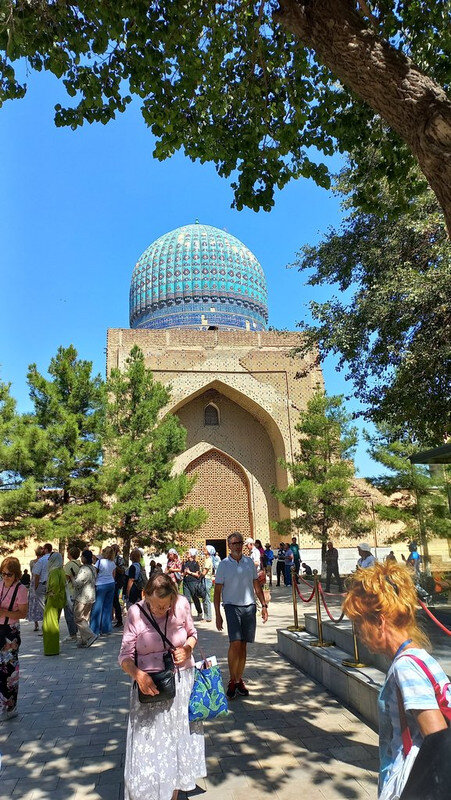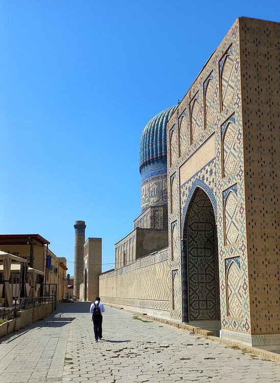 О Самарканде, Тимуре и Биби-Ханум Самарканд - второй по величине город Узбекистана. А в советские времена был древнейшим городом СССР. Его возраст 2750 лет, ровесник Рима, Вавилона, Афин. Его называют - Рим Востока. А во времена Рима назывался Мараканд, и был столицей древней страны Согдианы, которая располагалась между Сыр-Дарьей и Аму-Дарьей, где сейчас находятся Таджикистан и Узбекистан. Мараканд переводится, как каменный, богатый город. А кто устоит перед желанием прибрать к рукам такое добро? И первым, кому это удалось, был персидский царь Кир Великий. А в 329 до н.э. сюда пришел Александр Македонский. Жители встретили его сначала, как освободителя от иранских Ахеменидов (Кир, Ахемениды, Македонский услаждают слух, возвращая мыслями в полюбившийся Иран), но поняв, что он такой же завоеватель, как персы, оказали ему сопротивление. Единственное поражение, которое постигло Македонского, была проигранная битва на подступах к Самарканду. Потом Самарканд еще не единожды завоевывали, но город всегда бился до конца, поэтому его еще называют Город Крови. В XIII веке Самарканд был разрушен Чингисханом, что привело к полному запустению древнейшего городища на его территории - Афрасиаба. В Самарканде мы начинаем знакомиться с Тимуром (что переводится, как железо) или Тамерланом. Тамерлан – Хромой Тимур, Железный Хромец. Личность – неоднозначная, но в любом случае сильная, одиозная, яркая, достойная того, чтобы войти в историю человечества, а для нас, обывателей, достойная того, чтобы хотя бы ознакомиться в интернете с биографией его, а не биографией какой-нибудь сомнительной блогерши с утиными губами. Тимур сделал Самарканд столицей своей могучей средневековой империи, а его внук Улугбек – центром наук. Во все столицы всегда вкладывались деньги, столицы должны поражать богатством, величием, блистать, изумлять. Тимур призывал в город лучших зодчих, ремесленников, ученых, поэтов. Несмотря на это, историческая окраска его личности склоняется в сторону Гения Разрушения, а не Гения Созидания. Но до нас еще осталось то, что может изумить и восхитить, так как строилось на века. Первое знакомство с городом – это соборная, или пятничная мечеть Биби-Ханум 14 века, самая большая в Средней Азии и одна из крупнейших в мусульманском мире: Тимур, отправляясь в очередной поход, в Индию, повелел построить к его возвращению новую Джума, т.е пятничную мечеть. Контролировать строительство поручил своей старшей и любимой жене Ханум. Она контролировала, но Тимур побеждал быстрее, чем шла стройка: Дальше красивая легенда, настоянная на восточной мудрости: Когда пришла весть о скором возвращении Тимура домой, Ханум была в гневе. Тогда главный зодчий сказал ей: -Я успею в срок, но за это ты, царица, подаришь мне свой поцелуй. Царица негодовала: - Я подарю тебе любую из рабынь по твоему выбору. Почему ты смотришь только на меня? - ну, и кокетка на наш, современный взгляд, а на их, древний, кто его знает... Посмотри на эти крашеные яйца, они разных цветов и нисколько не похожи друг на друга. Но, если их разбить, разве они чем-нибудь отличаются? Таковы и мы, женщины. Но зодчий настаивал: -Я отвечу тебе: вот два одинаковых бокала. Один из них я наполню прозрачной водой, другой - белым вином. И теперь они так же похожи друг на друга. Но если я притронусь к ним губами, то один обожжет меня словно ог