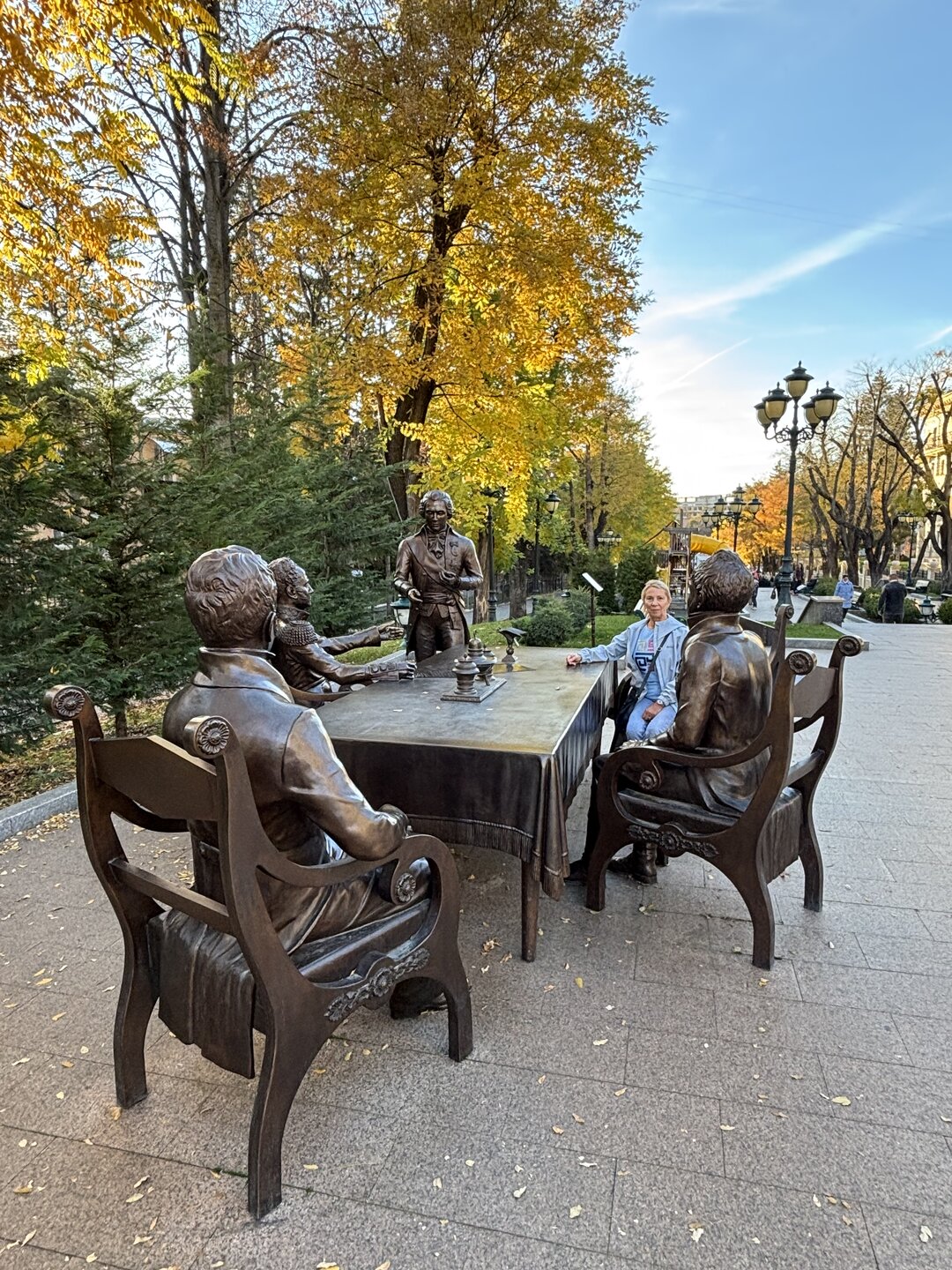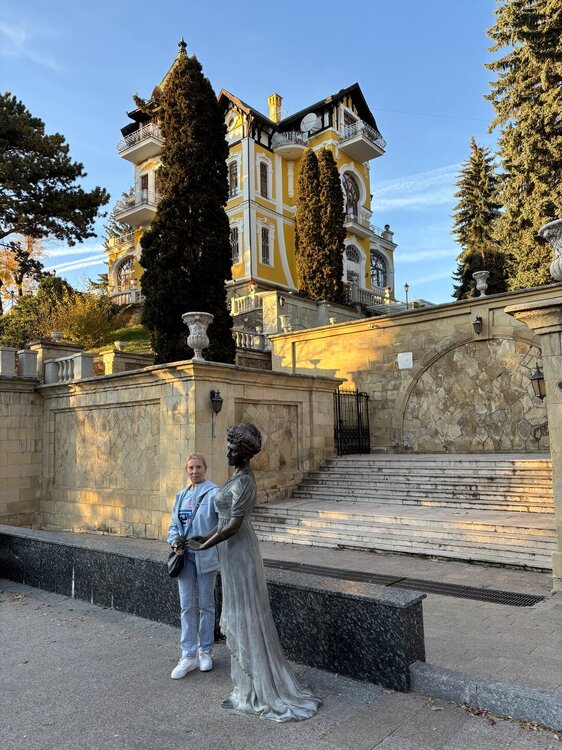 День 4. В Кутаиси. Через два творения Зураба Церетели... Добраться до Кутаиси мне надо было по одной простой причине - через день оттуда летел самолётик в Местию, на который мы купили билет. Над решением вопроса, как это сделать, я в лучших традициях Скарлетт решила подумать потом, и дооткладывалась до самого приезда в Грузию. Ну, просто анализ показал, что ни автобуса, который ходил бы из центра в центр, ни аналогичного поезда в природе не существует. Единственный автобус уходит откуда-то с окраины Тбилиси и приезжает на окраину же Кутаиси, поезда вовсе ходят до станции Риони, от которой до города километров 25, либо до аэропорта. Есть и многочисленные автобусы до аэропорта с расписанием, которое подстраивается под вылеты "Визайра". Отар сказал, что в город они скорее всего заезжают, позвонил в справочную одной компании, потом второй, но ответ был один: только в аэропорт, даже на окраине Кутаиси остановок нет. "Ну, тогда едешь на любой вокзал и находишь маршрутку. Либо микроавтобусы, либо минивэны по наполняемости ходят. Мы обычно так и ездим". Я почесала репу и оставила этот вариант на крайний случай. Появилась было мысль ехать утром 8-го октября сразу в аэропорт, но единственный вариант омнибуса, на котором я успевала на свой самолет, уходил в 5.30 утра. Это во сколько ж надо вставать? Или совсем спать не ложиться? Надо ж так себя не любить, чтобы в отпуске в такую рань ради автобуса вставать...не, я себя всё-таки немножко люблю:)) К тому же у меня был забронирован гэст с 7-го на 8-ое, отменять в последний момент не хотелось, и я решила ехать 7-го на автобусе до аэропорта, а оттуда на такси. Но тут что-то снова пошло не так... расписание на 7-ое у омнибуса оказалось совсем неадекватное - либо рано утром, либо на ночь глядя. Мне такое снова не понравилось:)) Поэтому махнула рукой и решила ехать по привычке, трансфером. У меня, конечно, на случай трансфера в запасе лежал вариант маршрута с заездом в ранее не виденные дебри, но проблема была в том, что ни одного свободного на нужную мне дату знакомого водителя, который гарантированно стойко и терпеливо выдержал бы подобные зигзаги, не было. А нагружать так вот сразу, без подготовки незнакомого стало страшно... ну, вдруг у него сердце слабое, нервная система не выдержит, и придушит он меня где-нибудь в этих дебрях, и стану я первой в истории жертвой водителя готрипа:)) Да, у меня богатое воображение!:)) Поэтому, решив не мучить водителя, я набросала простейший маршрут: Тбилиси-Кутаиси через "Хроники Грузии" и Мцхету. Вот уже несколько лет хочу съездить в Мцхету, в которой была лишь в самый первый свой приезд, да всё никак на это времени не хватает. Выбрав едва ли не первого попавшегося на глазах водителя с большим количеством отзывов, забронировала поездку на 9 утра и на том выдохнула, решив проблему. Арчил позвонил накануне вечером, я честно спросила, не стоит ли выехать пораньше, дабы миновать пробки, но водитель мой сказал, что 9 утра его вполне устраивает. Потом я поняла, почему - парень оказался из Кутаиси и до Тбилиси ему еще надо было добраться. Потому утром, не особо торопясь, я проснулась, собрала чемодан и вышла во двор на качели подышать свежим воздухом. Читая книжку, я услышала непонятный шорох, который и в прошлые дни по утрам раздавался под окнами, но я так и не смогла понять, откуда он исходит. Подняла голову, оглядел