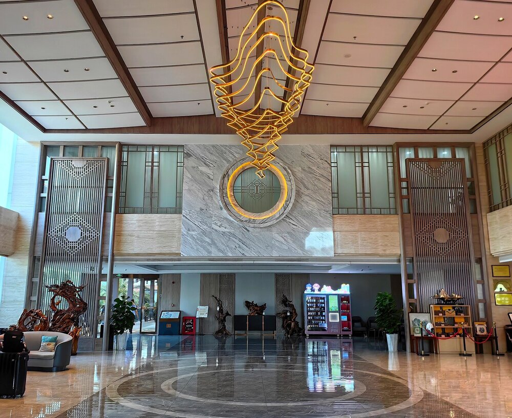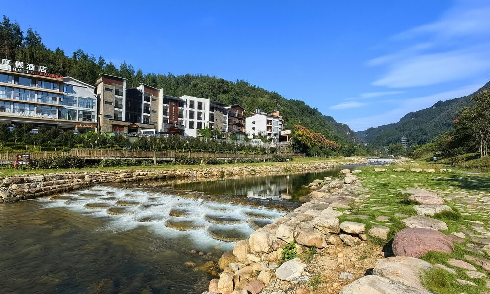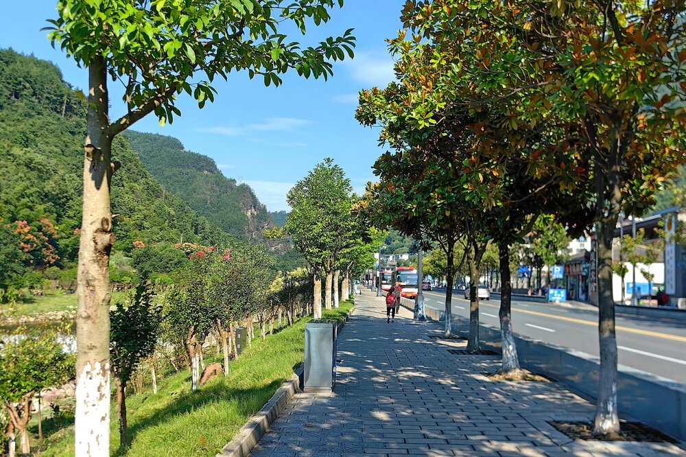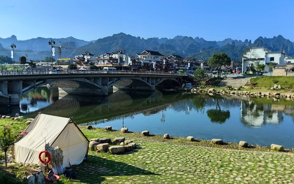 1 баллНачинается пятый день тура и первый на новом месте. Разберемся с названиями: Чжанцзяцзе – это город в китайской провинции Хунань и одновременно так назван весь регион, по которому мы будем путешествовать четыре дня. Улиньюань – городок, в котором мы жили, – район Чжанцзяцзе, а также часть горной системы Улиньшань. Он включает в себя национальный лесной парк с горами Аватара. По крайнем мере, я для себя так определила. Маша называла Чжанцзяцзе все объекты, которые мы встречали, и немного нас запутала. Отель NATIONAL SCENIC SPOT SUNSHINE RESORT HOTEL расположен в Улиньюане на берегу реки Суоси и с улицы кажется небольшим, но на самом деле занимает большую территорию и состоит из нескольких корпусов и ресторана, соединенных крытой галереей, с зелеными зонами между ними. Удобно, даже в дождь на завтрак можно дойти без зонта. После завтрака у нас было время осмотреться и прогуляться по набережной. Отель очень удачно расположен рядом с мостом через реку, везде чисто и красиво. Посмотрите, какие горы на заднем плане! Набережная живописна, много оригинальных скульптур. Вот эта аркада, например, состоит из силуэтов известных деятелей культуры, уроженцев этих мест. А на валунах, исписанных иероглифами, видимо, цитаты из произведений знаменитых китайцев. Можно спуститься к реке, она неглубокая, но быстрая, с красиво оформленными порогами. На берегу сидела пожилая китаянка и стирала белье вручную, отбивая его об камни. Фотографировать постеснялись. А над рекой летал вертолет, возможно, с туристами из нашей группы. Дело в том, что Маша предложила желающим утреннюю прогулку над горами Аватара, стоило удовольствие около 1500 юаней или 215 долларов за 15 минут полета. Желающие нашлись, а наши с Олей жабы не разрешили такое приключение. Не могу сказать, что жалею об этом, потому что фантастической красотой гор Аватара мы и так насладились сполна.1 балл