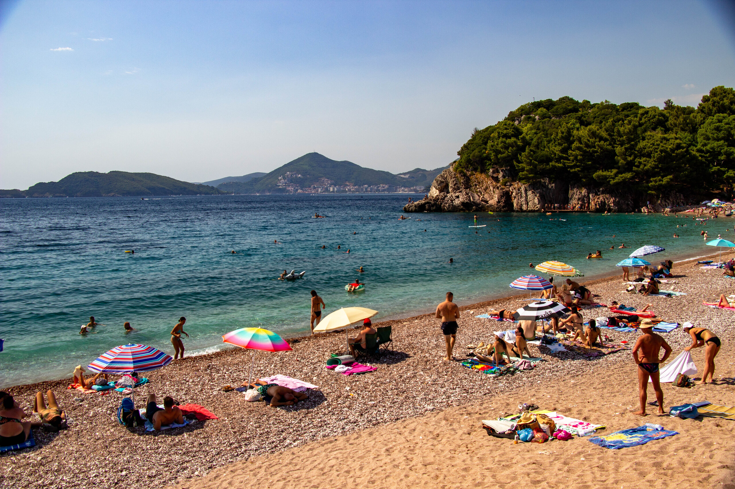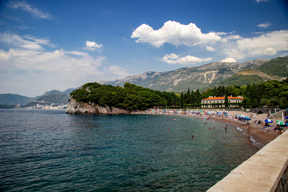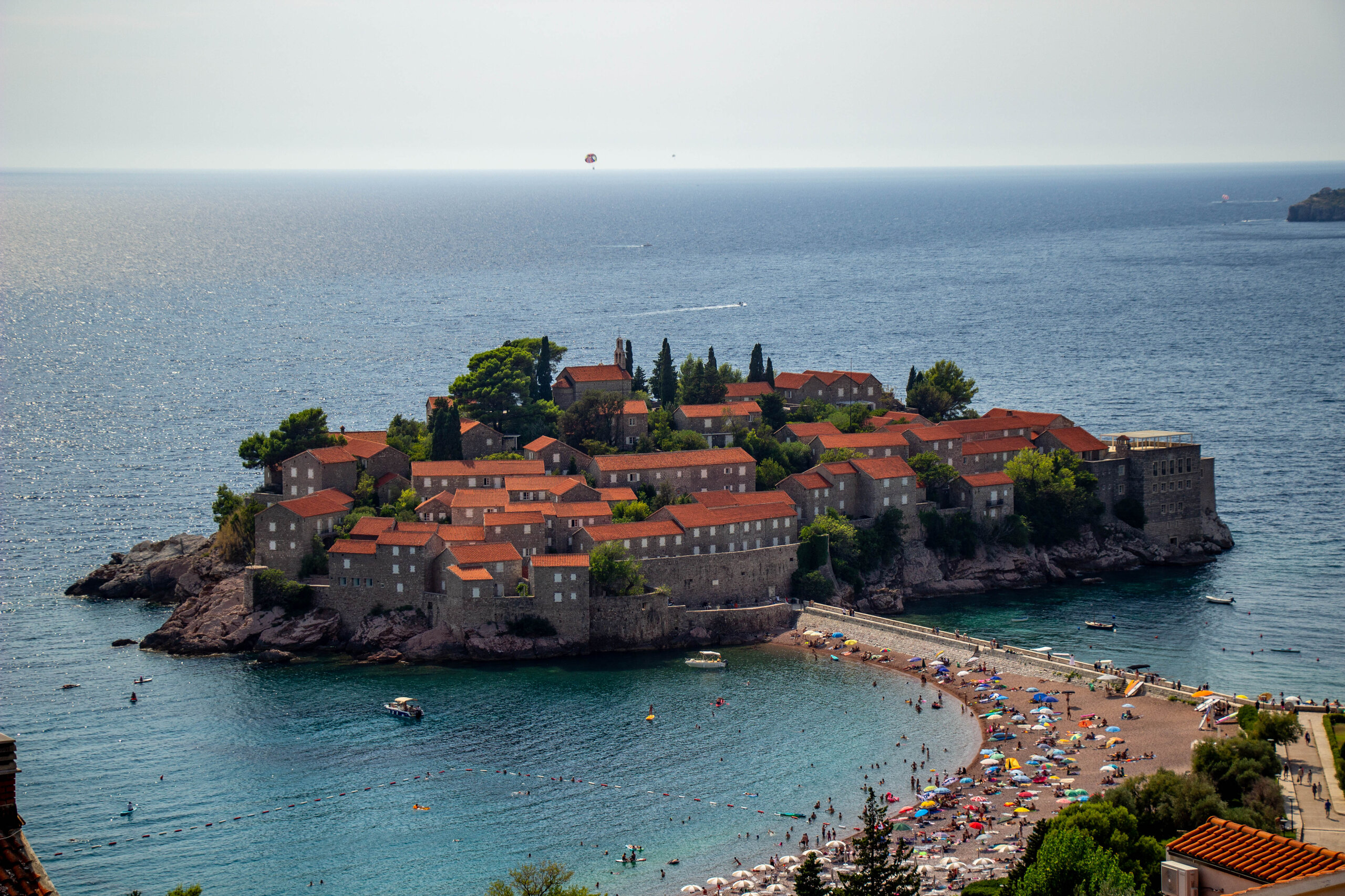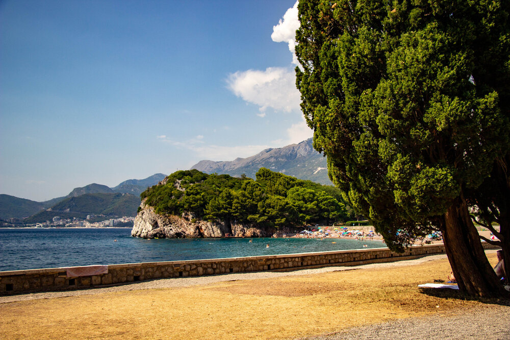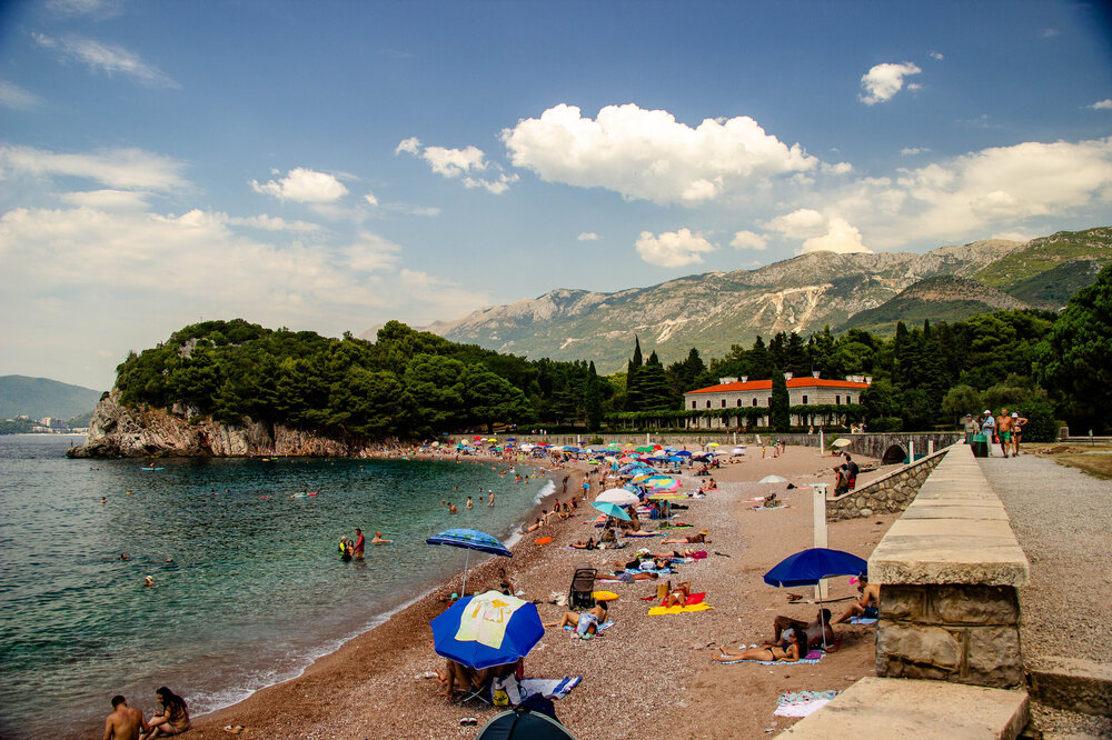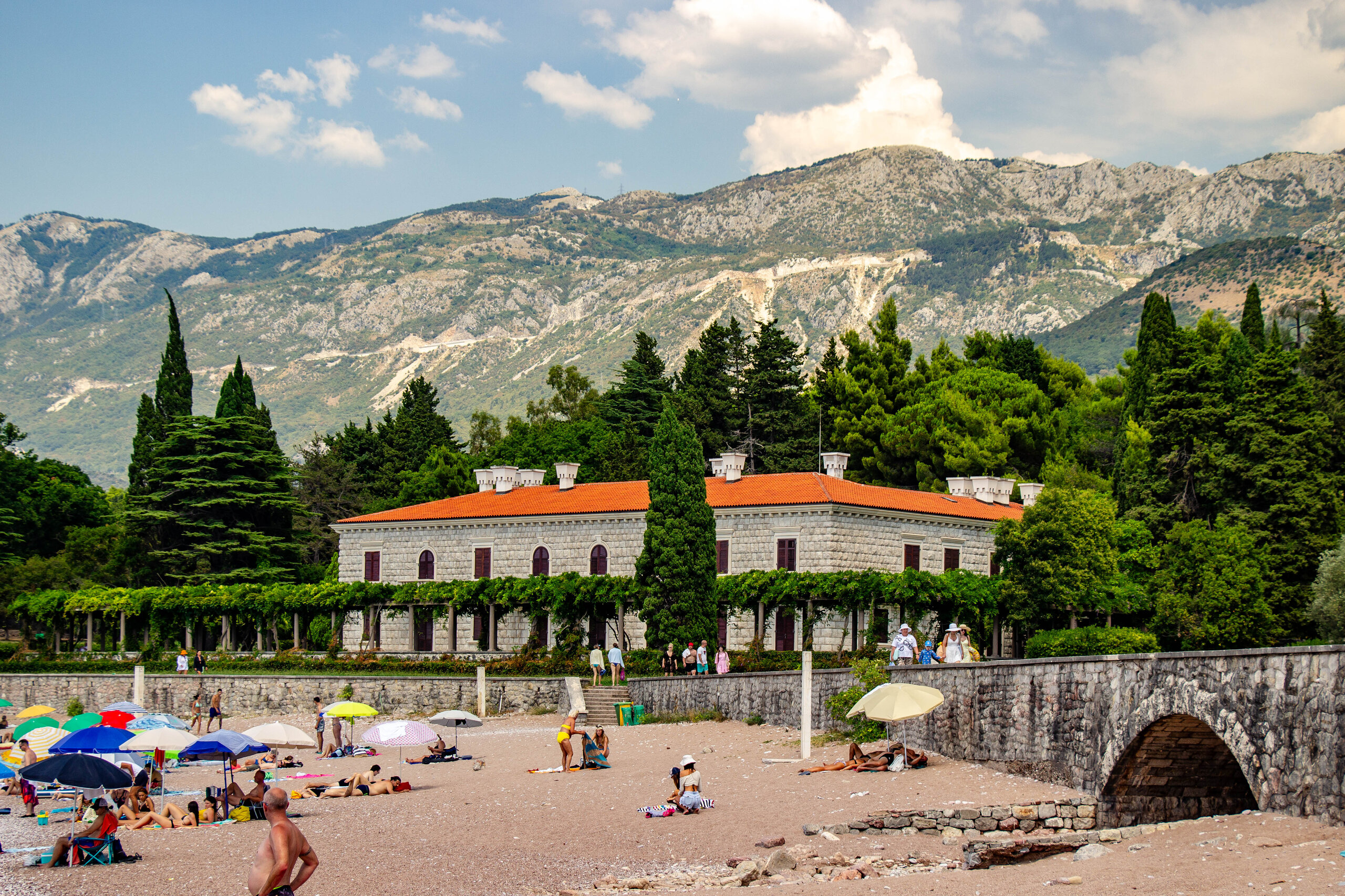 Поселок Святой Стефан находится в 10 км от знаменитой Будвы. Дорога к нему идет вдоль побережья, постоянно забираясь все выше и выше, давая возможность любования видами на Будванскую ривьеру. Виды по дороге просто шикарные! В один из дней Юлия сделала для нас на этой дороге остановку, чтобы мы смогли сделать фото этой красоты. Старый город Будвы с высоты более 1300м «Остров-отель» Святой Стефан, соединенный с берегом тонким природным перешейком, является визитной карточкой Черногории. Он изображен на рекламных буклетах, открытках, плакатах. У многих Черногория ассоциируется именно с этим островом. Его можно отнести к архитектурным достопримечательностям одноименного поселка, история которого тесно связана с историей самого и началась она в XV веке, когда Черногорию пытались захватить османы. Обосновавшись в этих местах, жители села Петровичи отчаянно отбивались от атак. Свети-Стефан — это не просто курорт, а историческая крепость XV века, ставшая в середине XX века роскошным отелем после того, как в 1950-х годах последних жителей переселили на материк, чтобы превратить остров в элитный курорт. В 1960 году остров открыли как роскошный отель, который стал местом отдыха для многих знаменитостей. На острове расположена бывшая летняя резиденция короля Югославии, построенная в 1934 году. Внешний облик остался прежним, изменения коснулись лишь внутренней обстановки, в соответствии с современными требованиями. На острове находятся средневековые церкви и храмы Александра Невского, Святого Стефана и Успения Богоматери. Поселок имеет премию Golden Apple, которая выдается лучшим курортам мира. Пляж справа от острова принадлежит отелю Aman Sveti Stefan. Знаменит своим красивым и мелким песком с розоватым оттенком, который омывают бирюзовые воды Адриатики. Чтобы попасть на берег нам предстояло преодолеть бесконечное количество ступенек и даже дорогу. Ирина провела нас к нему через заросли олив Вы только посмотрите какая прозрачная вода! Во многих местах прозрачность воды достигает 40-60 метров! При этом многие туристы отмечают очень необычный и красивый цвет воды — светло-голубой. Это связано с растворёнными в ней солями и минералами, которые, кстати, полезны для здоровья. Мы не стали задерживаться здесь - мы идем на пляж Милочер, дорога к которому идет под пологом могучих сосен. Вот пляж уже показался впереди и отлично видна вилла Милочер, построенная в 30-х годах прошлого века также известная достопримечательность поселка Святой Стефан. В окрестностях этой виллы находится три пляжа и ботанический сад. Все это создавалось для королевской семьи правителя Черногории. А теперь любой житель или турист может отдыхать на этих пляжах и любоваться виллой или гулять в саду. Вот на этом пляже мы и провели чудесные три часа. На берегу вход в море - мелкая круглая галька, а выше уже песочек мелкий, лежать было не жестко. Никаких лежаков и стационарных зонтов нет, туристы приносят с собой зонты, втыкают их в гальку, закручивая, и укрепляя вокруг крупными камешками. Но ветер легко выворачивал некоторые и носил по пляжу. Один такой я поймала и чуть как Мэри Поппинс не улетела на нем в море 😅. Марина и другие наши туристы от души наплавались. Я не умею плавать, просто заходила в море, немного поплюхавшись выбиралась греться на берег, потому что море здесь не достаточно теплое, 