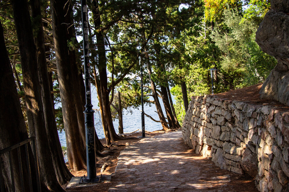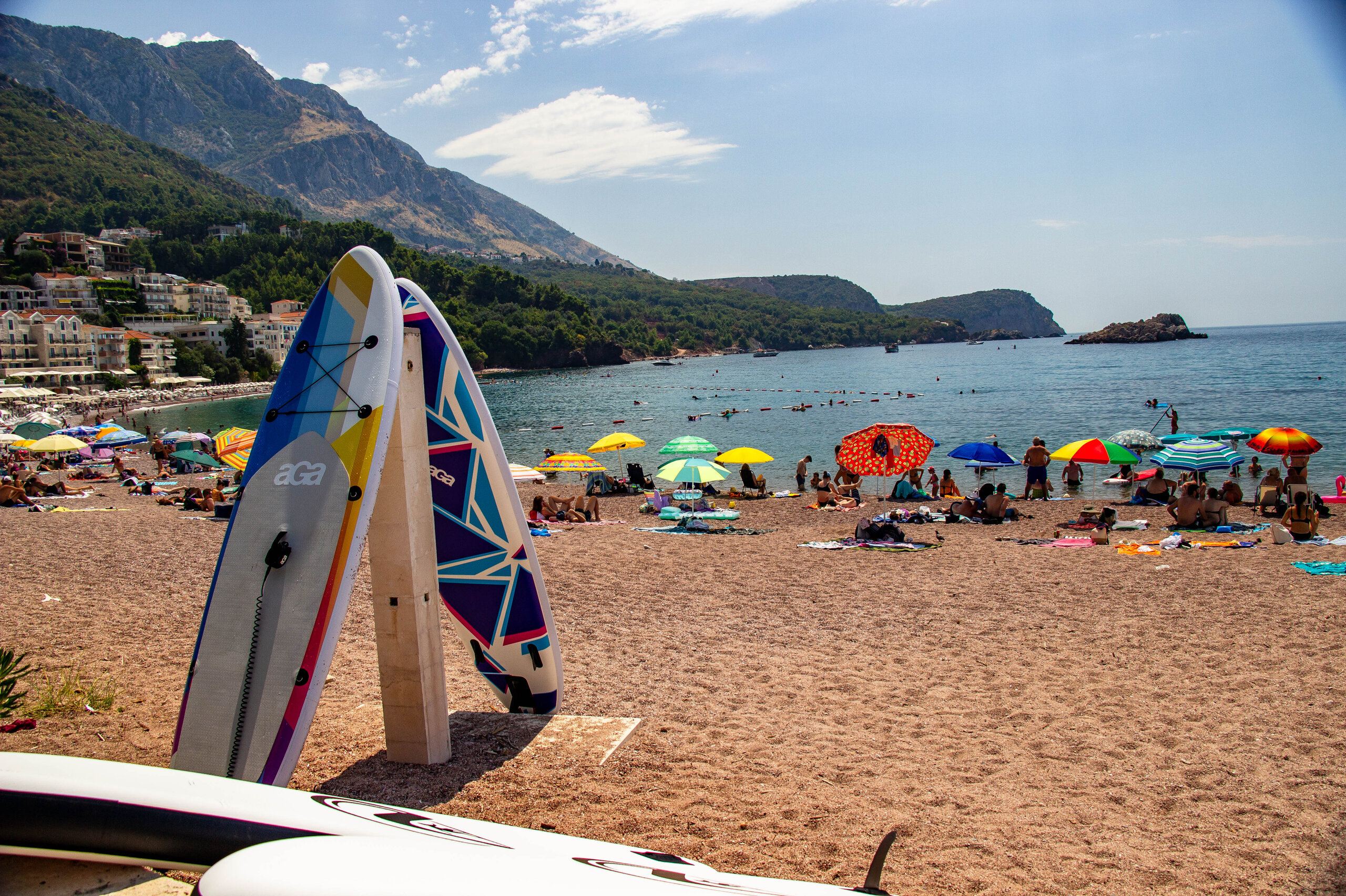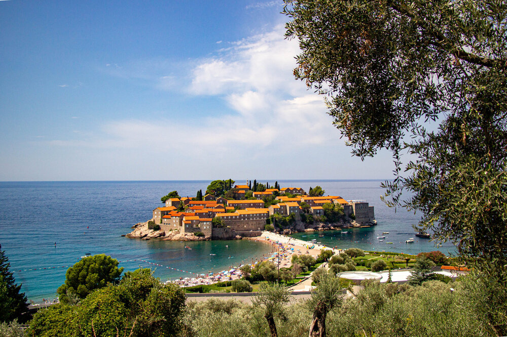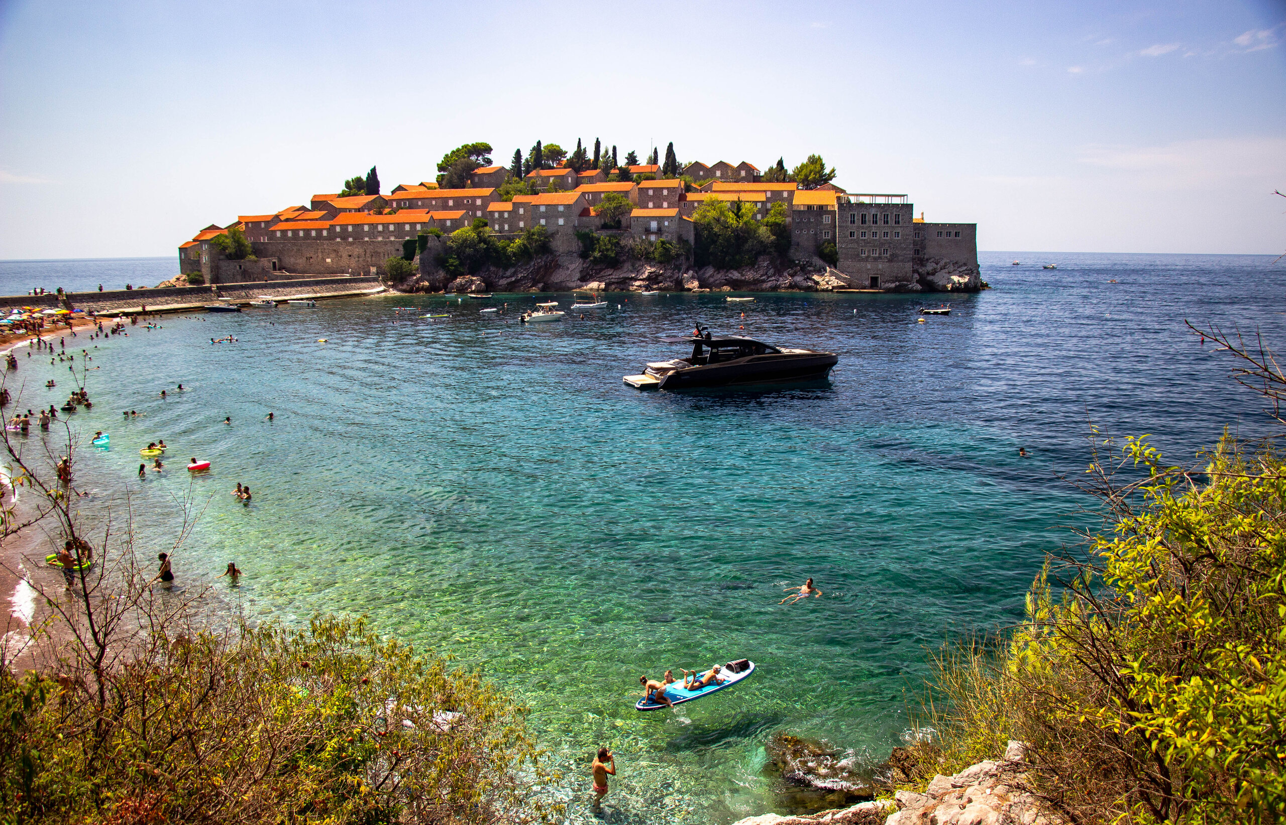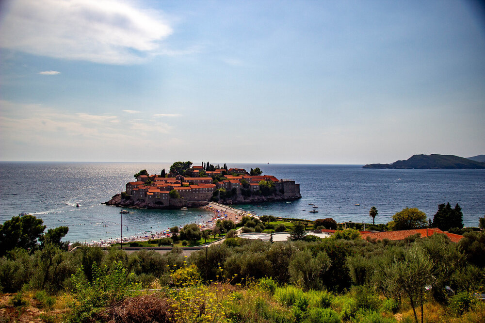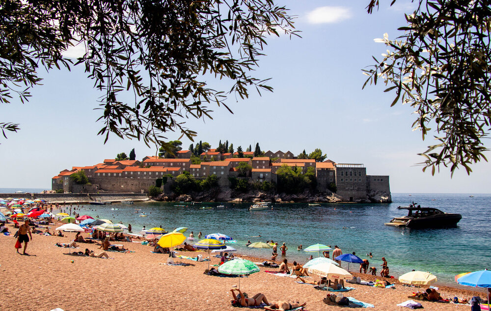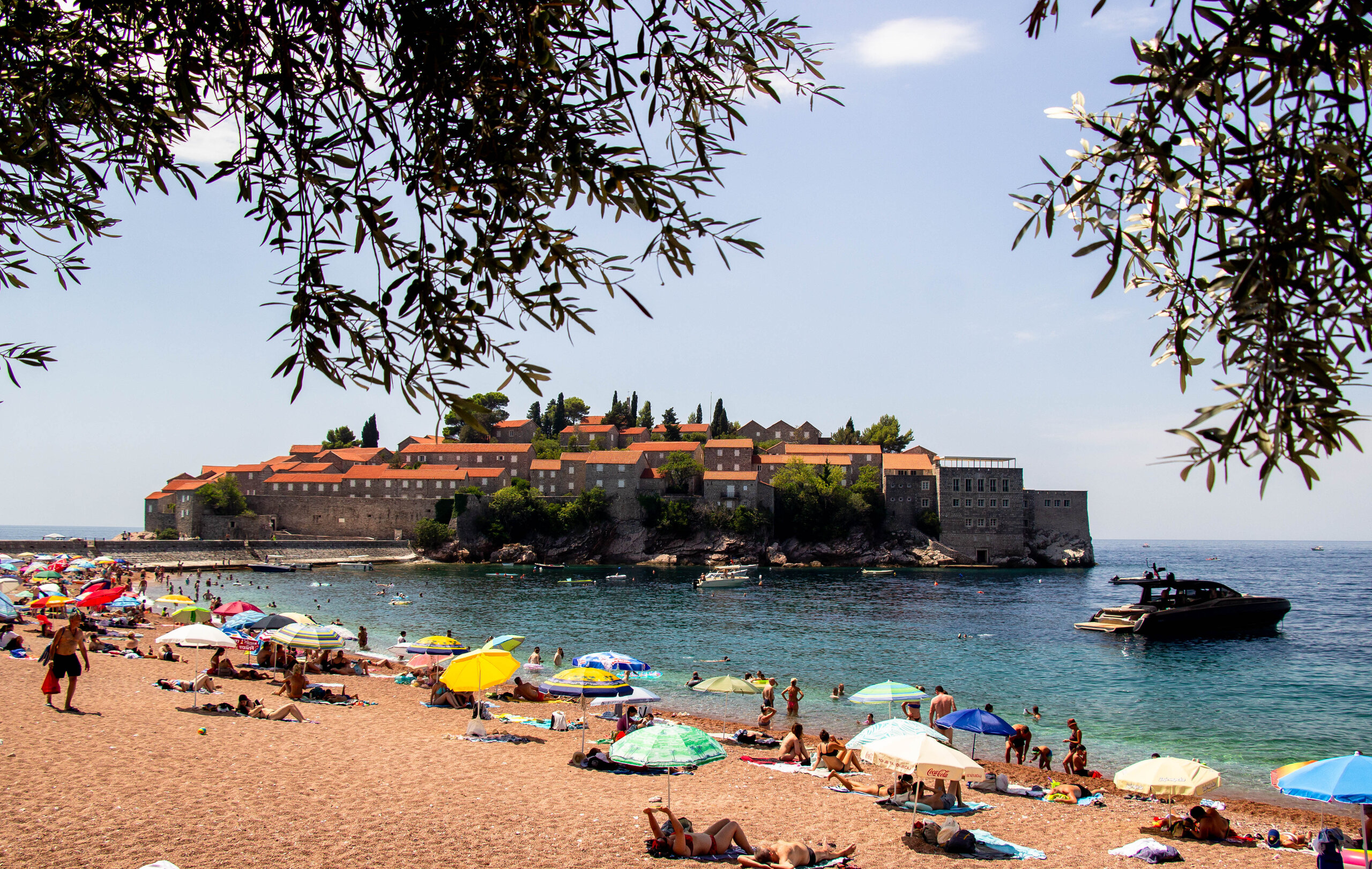 Поселок Святой Стефан находится в 10 км от знаменитой Будвы. Дорога к нему идет вдоль побережья, постоянно забираясь все выше и выше, давая возможность любования видами на Будванскую ривьеру. Виды по дороге просто шикарные! В один из дней Юлия сделала для нас на этой дороге остановку, чтобы мы смогли сделать фото этой красоты. Старый город Будвы с высоты более 1300м «Остров-отель» Святой Стефан, соединенный с берегом тонким природным перешейком, является визитной карточкой Черногории. Он изображен на рекламных буклетах, открытках, плакатах. У многих Черногория ассоциируется именно с этим островом. Его можно отнести к архитектурным достопримечательностям одноименного поселка, история которого тесно связана с историей самого и началась она в XV веке, когда Черногорию пытались захватить османы. Обосновавшись в этих местах, жители села Петровичи отчаянно отбивались от атак. Свети-Стефан — это не просто курорт, а историческая крепость XV века, ставшая в середине XX века роскошным отелем после того, как в 1950-х годах последних жителей переселили на материк, чтобы превратить остров в элитный курорт. В 1960 году остров открыли как роскошный отель, который стал местом отдыха для многих знаменитостей. На острове расположена бывшая летняя резиденция короля Югославии, построенная в 1934 году. Внешний облик остался прежним, изменения коснулись лишь внутренней обстановки, в соответствии с современными требованиями. На острове находятся средневековые церкви и храмы Александра Невского, Святого Стефана и Успения Богоматери. Поселок имеет премию Golden Apple, которая выдается лучшим курортам мира. Пляж справа от острова принадлежит отелю Aman Sveti Stefan. Знаменит своим красивым и мелким песком с розоватым оттенком, который омывают бирюзовые воды Адриатики. Чтобы попасть на берег нам предстояло преодолеть бесконечное количество ступенек и даже дорогу. Ирина провела нас к нему через заросли олив Вы только посмотрите какая прозрачная вода! Во многих местах прозрачность воды достигает 40-60 метров! При этом многие туристы отмечают очень необычный и красивый цвет воды — светло-голубой. Это связано с растворёнными в ней солями и минералами, которые, кстати, полезны для здоровья. Мы не стали задерживаться здесь - мы идем на пляж Милочер, дорога к которому идет под пологом могучих сосен. Вот пляж уже показался впереди и отлично видна вилла Милочер, построенная в 30-х годах прошлого века также известная достопримечательность поселка Святой Стефан. В окрестностях этой виллы находится три пляжа и ботанический сад. Все это создавалось для королевской семьи правителя Черногории. А теперь любой житель или турист может отдыхать на этих пляжах и любоваться виллой или гулять в саду. Вот на этом пляже мы и провели чудесные три часа. На берегу вход в море - мелкая круглая галька, а выше уже песочек мелкий, лежать было не жестко. Никаких лежаков и стационарных зонтов нет, туристы приносят с собой зонты, втыкают их в гальку, закручивая, и укрепляя вокруг крупными камешками. Но ветер легко выворачивал некоторые и носил по пляжу. Один такой я поймала и чуть как Мэри Поппинс не улетела на нем в море 😅. Марина и другие наши туристы от души наплавались. Я не умею плавать, просто заходила в море, немного поплюхавшись выбиралась греться на берег, потому что море здесь не достаточно теплое, 