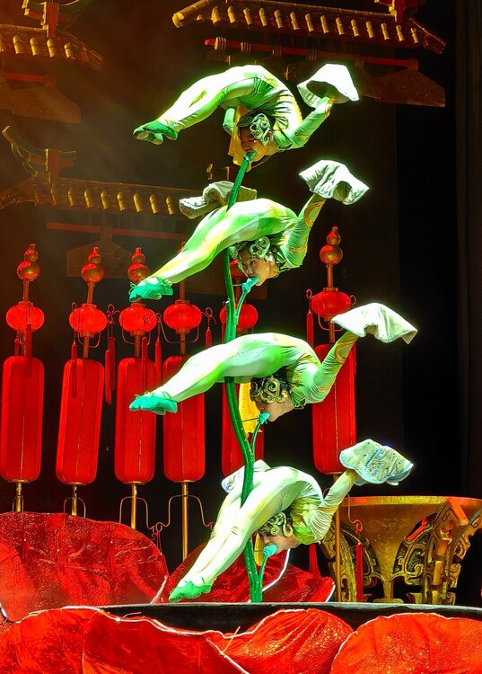 20 балловПоследний раз в цирке я была почти 40 лет назад и совершенно не страдала по его отсутствию в моей жизни. Конечно, я иногда смотрела цирковые представления по телевизору, восхищалась мастерством акробатов, жонглеров, дрессировщиков и других артистов, но пойти на живое представление мысли не возникало. А в программе тура заявлено дополнительное мероприятие «Китайские акробаты – основоположники циркового искусства». И мы с Олей решили, что не можем такое пропустить, тем более сегодня китайская акробатика – национальное достояние, признанное нематериальным культурным наследием. Самое важное, что нужно знать о китайском цирке: там не будет никаких клоунов и дрессированных тигров, только акробатическое искусство. В основе представления лежит демонстрация возможностей человеческого тела. Существует ряд классических номеров, которые являются визитной карточкой китайской акробатики: балансирование на стульях, эквилибр на проволоке или канате, групповая акробатика, жонглирование тарелочками. И еще не будет никакой арены, действие происходит на сцене, как в театре. Собственно, нас и привезли в Красный театр на одно из самых известных акробатических шоу в Пекине. Места группе достались не самые удачные, но перед нами никто не сидел, видно было отлично, съемке никто не мешал. И, как всегда, встал выбор: просто наслаждаться мастерством артистов, фотографировать или вести видеосъемку. Попыталась сочетать. Яркая интерактивная сцена, китайские мелодии, элементы национальных костюмов в каждом номере. Это не просто демонстрация трюков, а целая история, рассказанная языком тела, музыки и света. Шоу очень впечатлило. Повторно, скорее всего, не пошла бы, но один раз стоит сходить обязательно. Да что я описываю, смотрите фрагменты сами. VID_20250915_174828.mp4 VID_20250915_175836.mp4 VID_20250915_180207.mp4 VID_20250915_180506.mp420 баллов