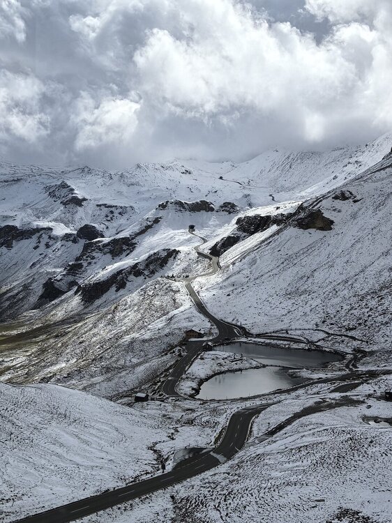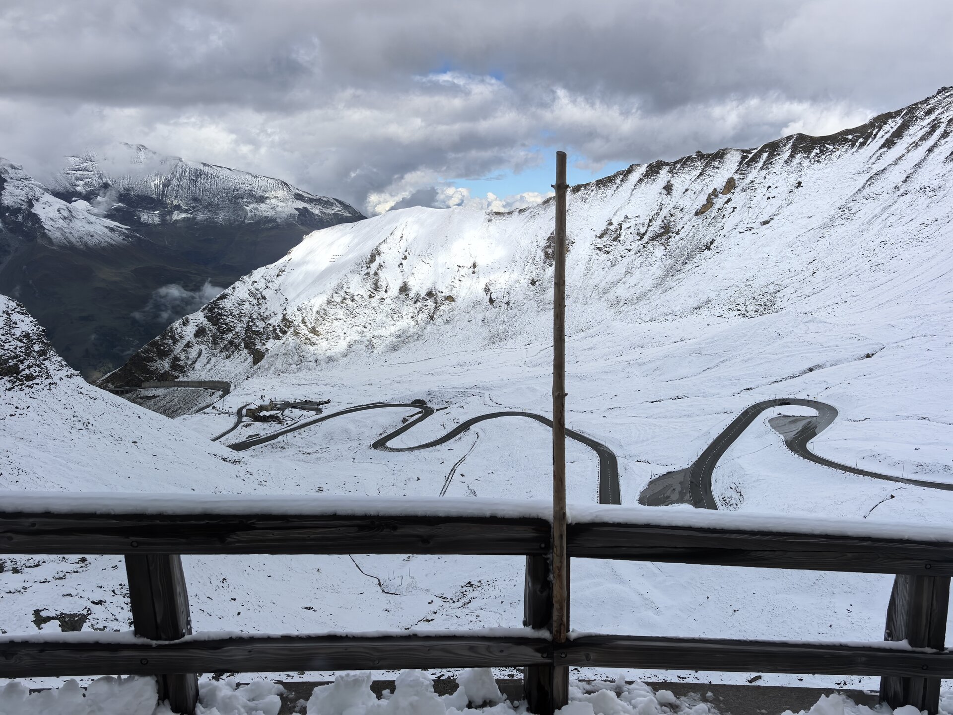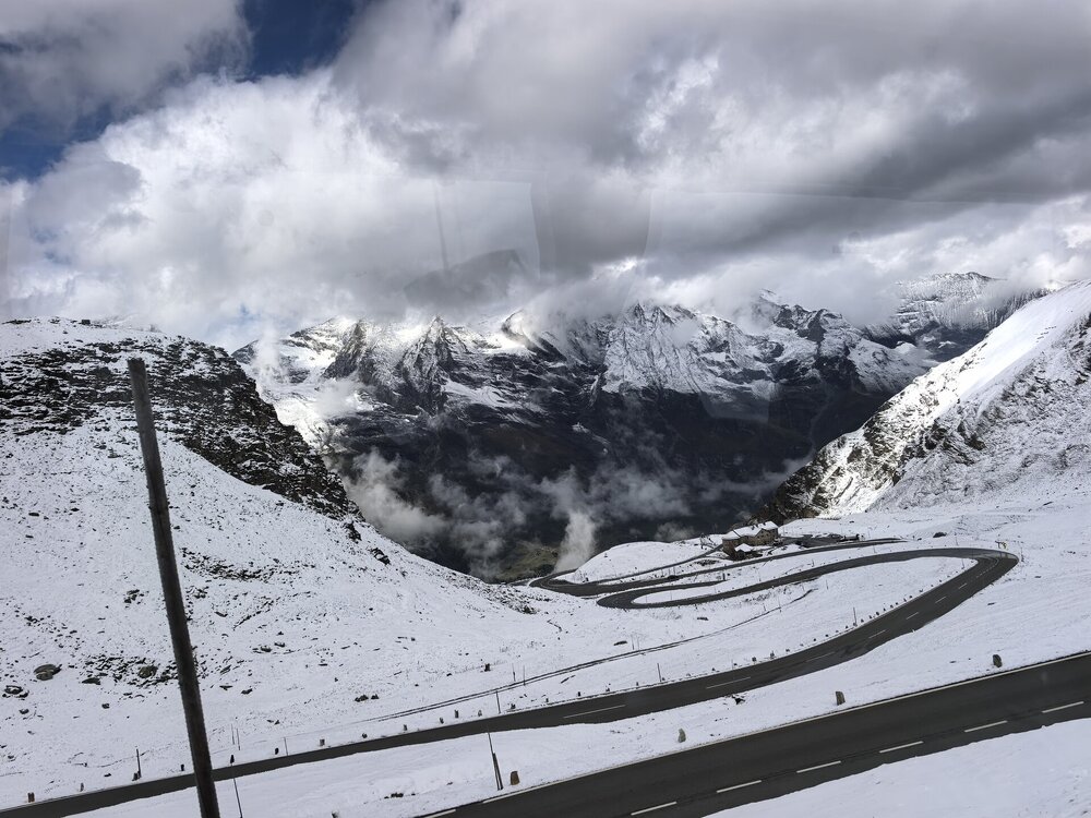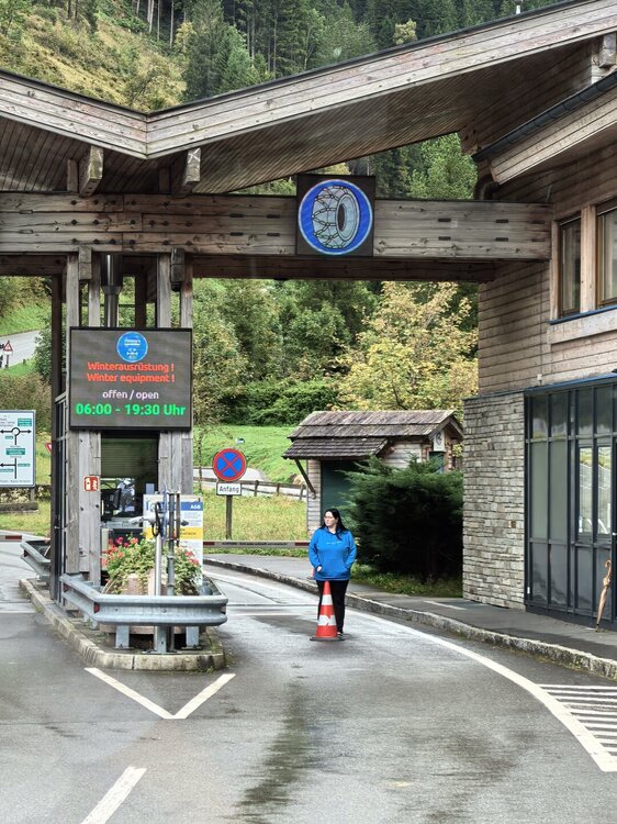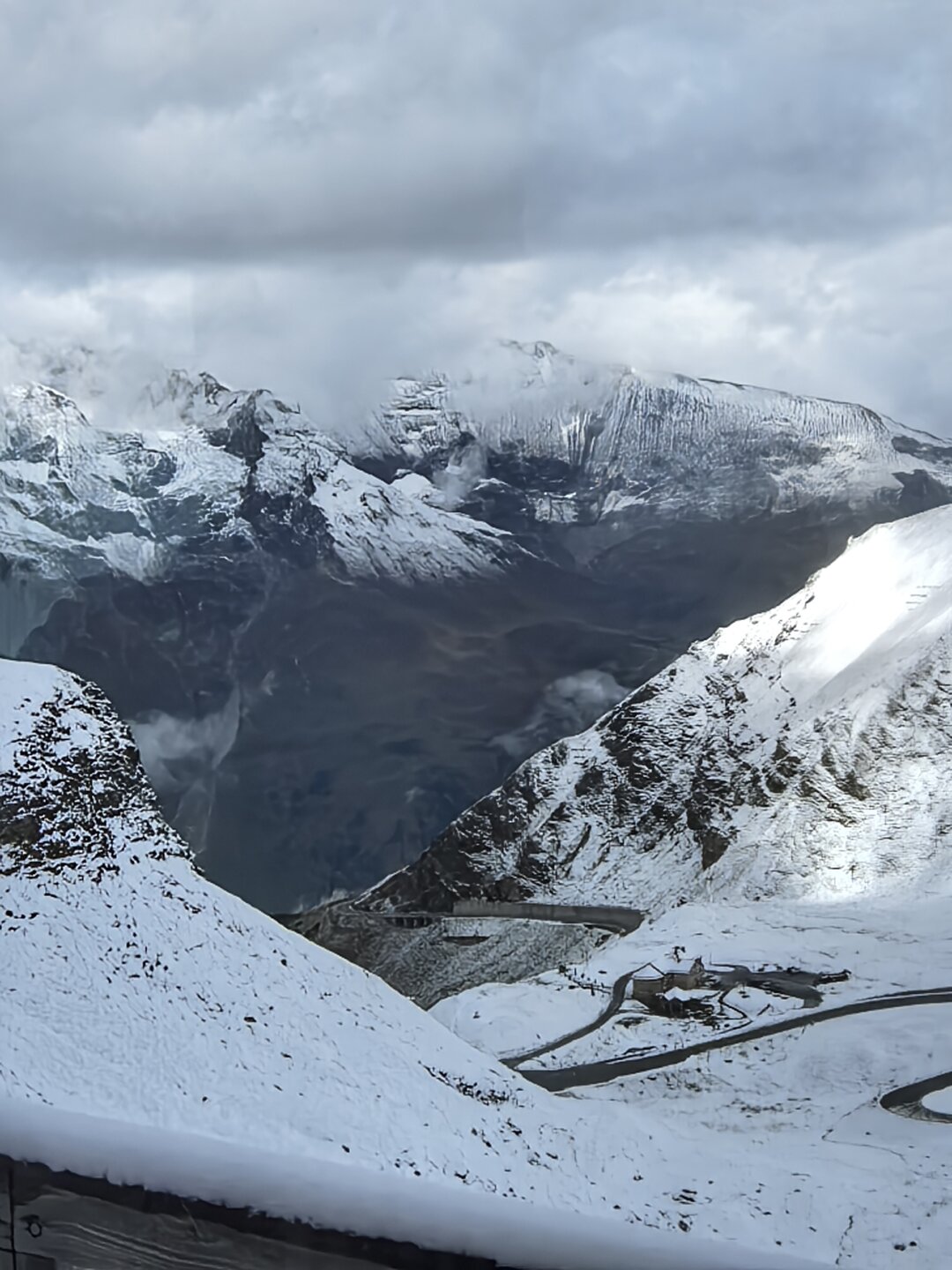 Наш день путешествий по Альпам продолжается - мы едем на туристический маршрут дороги Гроссглокнер Хохальпештрассе. VID_20250925_110603.mp4 Это платная дорога, она является кандидатом на включение в список ЮНЕСКО. Расположена она на территории национального парка Высокий Тауэрн. Когда мы приехали к пункту пропуска, выяснилось что сейчас дорога закрыта из-за снега и въезд осуществляется только для транспорта с цепями на колесах. Олег тут же начал решать этот вопрос, а мы, туристы, высыпали по своим туристическим вопросам - посетить прекрасное заведение с буквами WC и сделать фотографии. Простояли мы минут 30, как вдруг дорогу открыли без всяких там цепей))) Расчистили! О как)) И с этого момента дорога уносила нас буквально в небо - невероятная красота! VID_20250925_121203.mp4 А тут наша первая остановка на смотровой площадке, высота около 2 тысяч. Перед самым выездом в группе одной из соцсетей Олег предупредил своих туристов, чтобы взяли теплые вещи. Поэтому шапка, перчатки и ... солнечные очки стали спутниками на этой дороге. Очки защищали не только от излишнего сияния снега, но и от ветра со снегом прямо в глаза )) На этой остановке мы встретили, кажется, сусликов. Но они с нами видеться не очень-то хотели)) VID_20250925_123122.mp4 Виды смотровой. Фото, конечно, не передаёт масштаба. VID_20250925_122642.mp415 баллов
