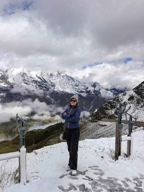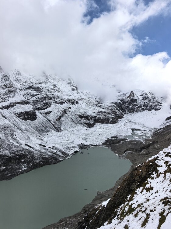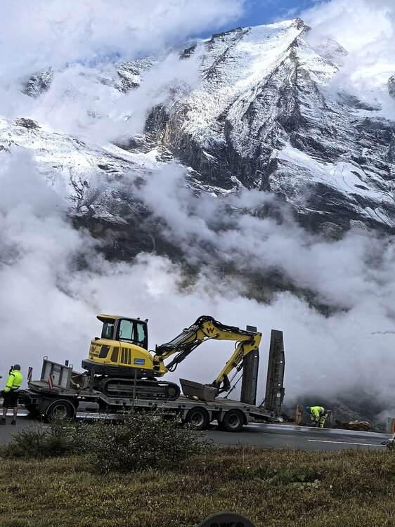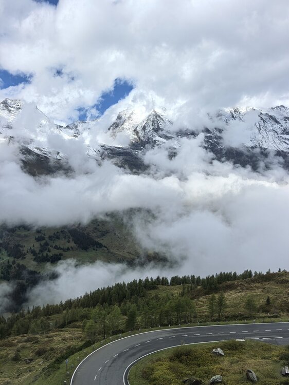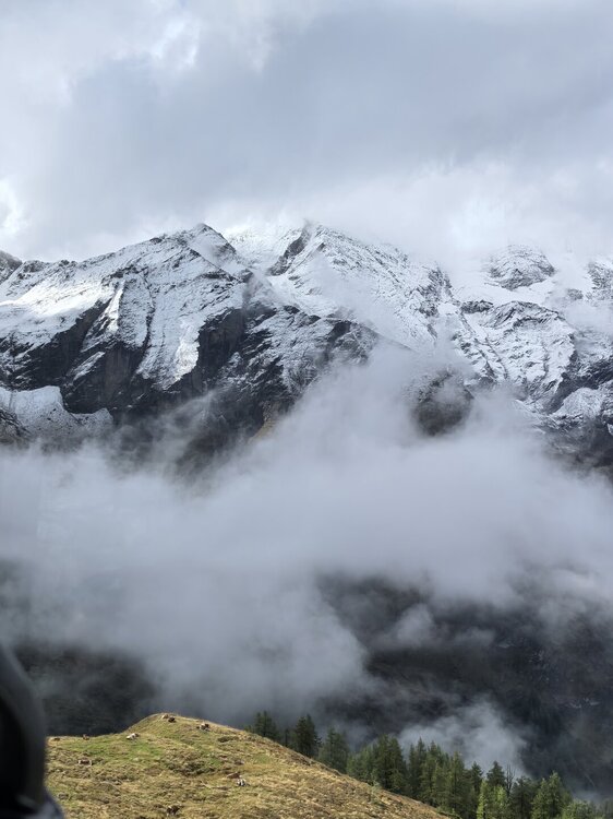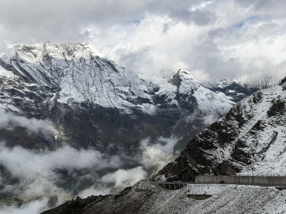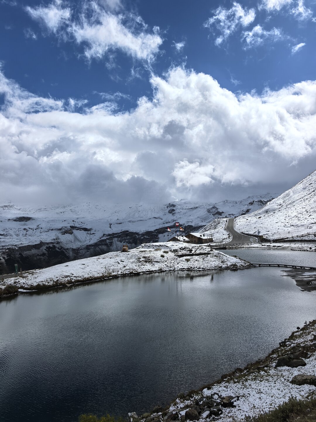 Наш день путешествий по Альпам продолжается - мы едем на туристический маршрут дороги Гроссглокнер Хохальпештрассе. VID_20250925_110603.mp4 Это платная дорога, она является кандидатом на включение в список ЮНЕСКО. Расположена она на территории национального парка Высокий Тауэрн. Когда мы приехали к пункту пропуска, выяснилось что сейчас дорога закрыта из-за снега и въезд осуществляется только для транспорта с цепями на колесах. Олег тут же начал решать этот вопрос, а мы, туристы, высыпали по своим туристическим вопросам - посетить прекрасное заведение с буквами WC и сделать фотографии. Простояли мы минут 30, как вдруг дорогу открыли без всяких там цепей))) Расчистили! О как)) И с этого момента дорога уносила нас буквально в небо - невероятная красота! VID_20250925_121203.mp4 А тут наша первая остановка на смотровой площадке, высота около 2 тысяч. Перед самым выездом в группе одной из соцсетей Олег предупредил своих туристов, чтобы взяли теплые вещи. Поэтому шапка, перчатки и ... солнечные очки стали спутниками на этой дороге. Очки защищали не только от излишнего сияния снега, но и от ветра со снегом прямо в глаза )) На этой остановке мы встретили, кажется, сусликов. Но они с нами видеться не очень-то хотели)) VID_20250925_123122.mp4 Виды смотровой. Фото, конечно, не передаёт масштаба. VID_20250925_122642.mp415 баллов