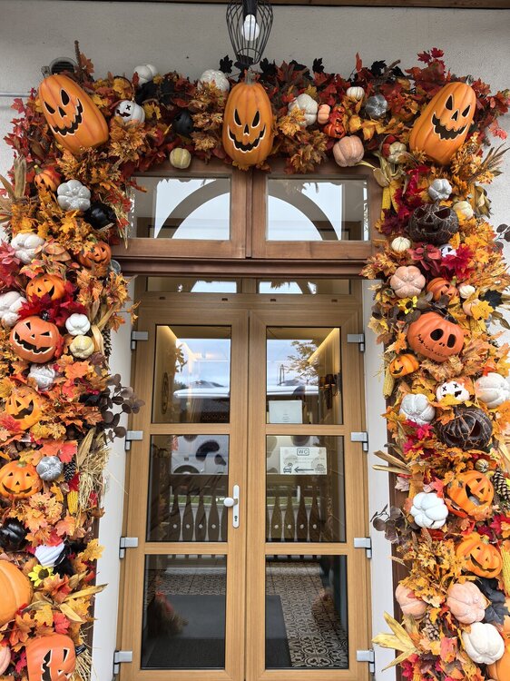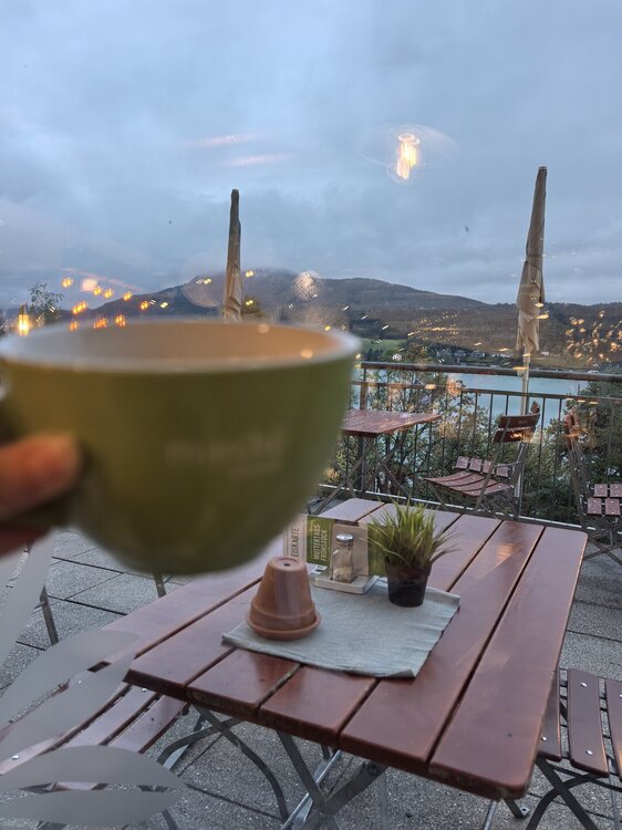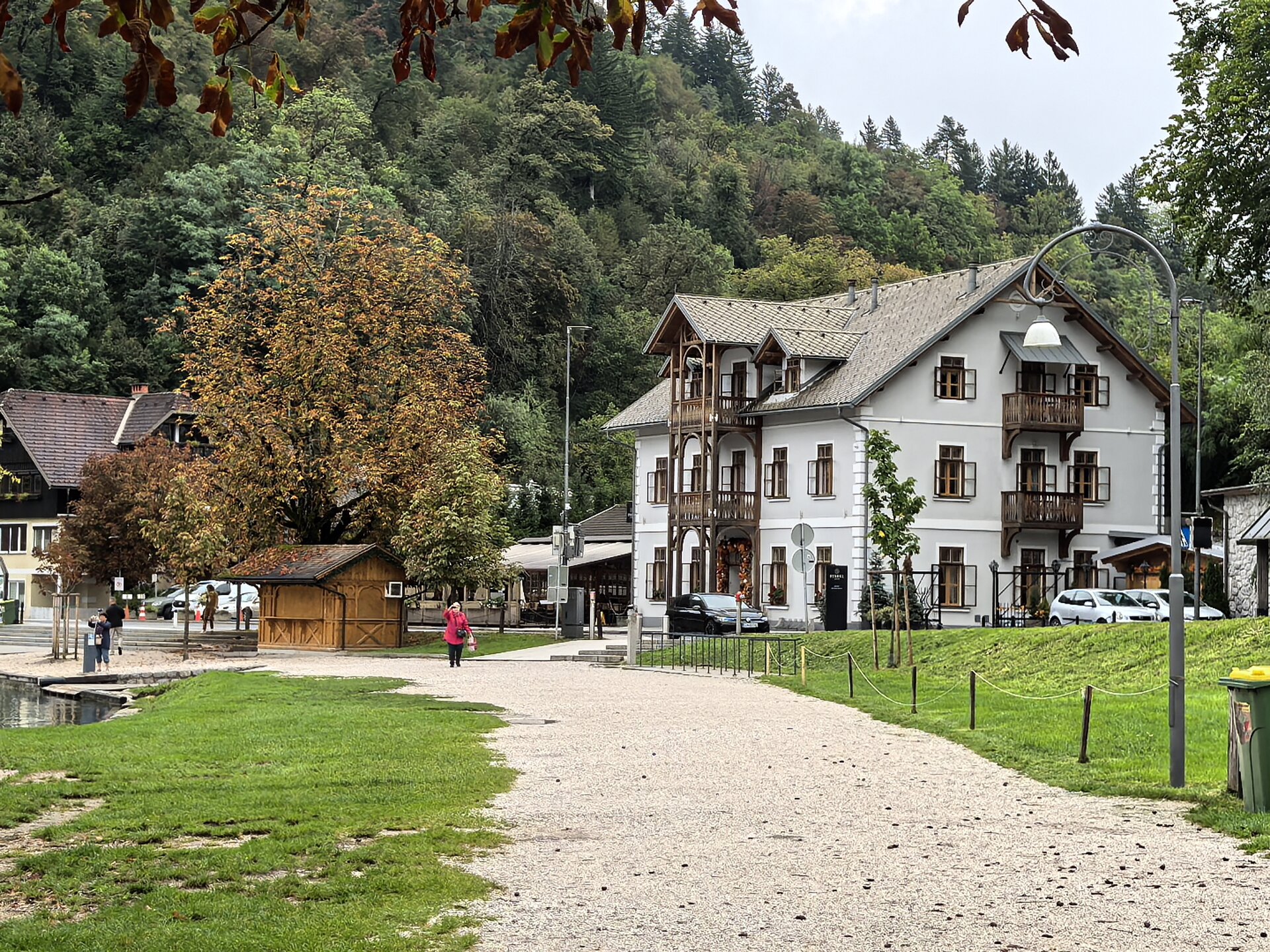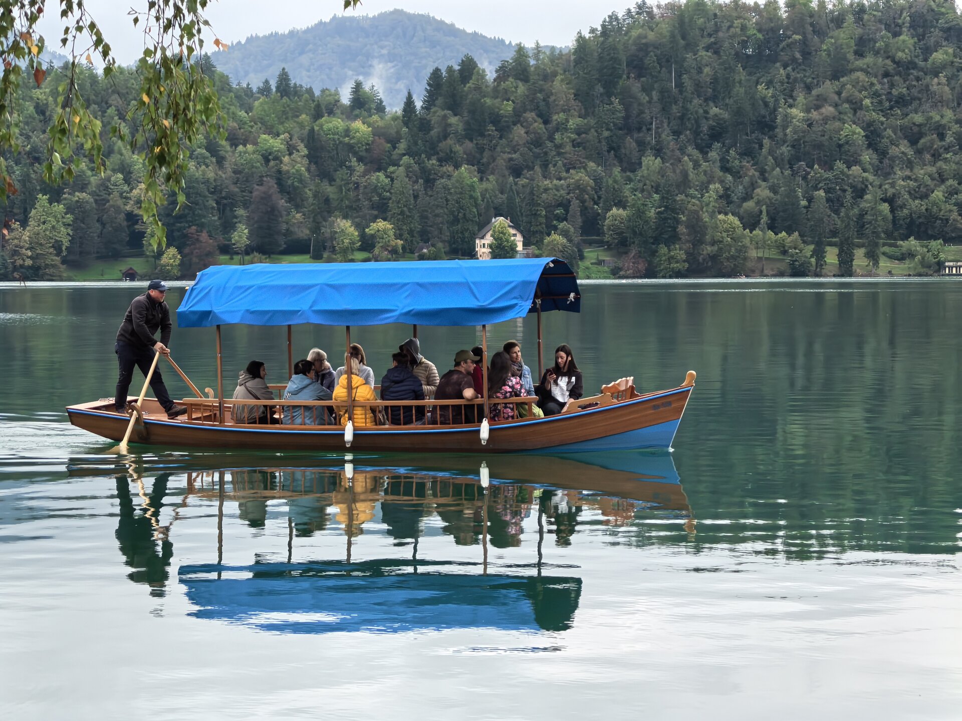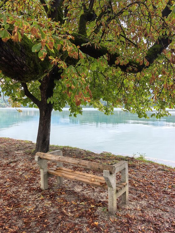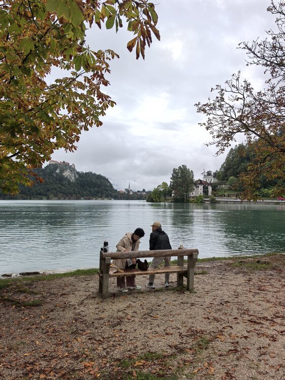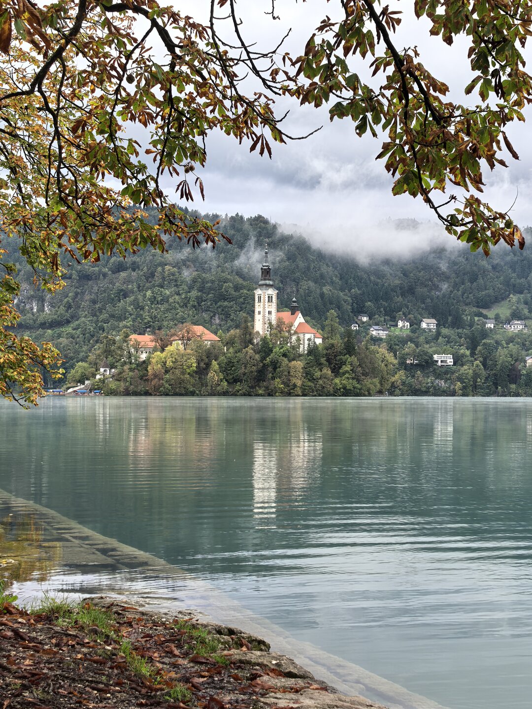 Чем запомнилось мне это утро в отеле? Да тем, что наконец-то я не набирала мензурочки кофе (а с кафе так вообще беда - 5 евро за зачастую невкусную маленькую чашечку, и это ещё говорят что в Россию тащат всякую шелуху от зерен, а не кофе), чтобы им напиться (я ужасный кофеман. если не выпью утром кофе - всё, день пошел насмарку 😂), налила себе сразу королевскую кружечку. Время на машине неверное, было около 7 утра)) небольшая фотосессия Да, утро выдалось хмурым и дождливым, но какая разница, если впереди нас ждёт Словения. Уже буквально через три часа мы наслаждались видами озера Блед. Группа отчалила к острову на таких лодочках, который находится посреди озера и служит его украшением. В озере потрясающе чистая вода, даже видно рыбу. Очень много рыбаков, но ни одно полевки за 1,5 часа прогулки вдоль берега мы не видели. Это озеро защищено от ветром высокими горами, поэтому в теплой время года очень хорошо прогревается - это ему и обеспечило такую популярность для отдыха. Кроме того здесь проводились международные соревнования по академической гребле. Главными достопримечательностями озера являются замок на скале и остров посреди озера. Кстати, в оригинале это озеро Блейско, а не Блед)) Жимеш приглашает к прогулке по берегу озера. Здесь очень живописно тихо и в то же время многолюдно. Вода в озере очень красивого бирюзового цвета, а осенняя листва её только оттеняет. Все мои фото без каких-либо допобработок. Тут завтракали азиатские туристы с красивым видом :) Вокруг озера построены вполне себе современные дома. Конкретно это отель, ресторан и платный туалет. х И тут уже готовы к Хэллоуину, почти за 1,5 месяца.17 баллов