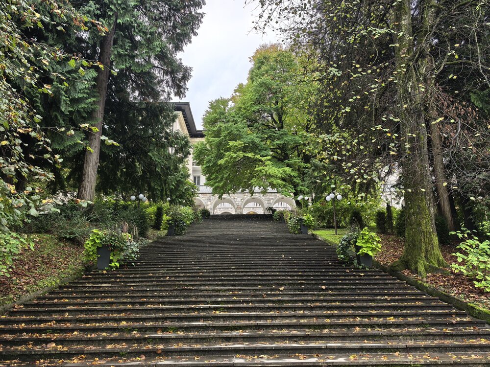 Допом среди услуг было и посещение Бледского замка. Такое мы любим :) Хоть и расположен он на 130-метровой скале над озером, доехать до него быстро и просто. В это время начался очень сильный дождь. Приехав на парковку, к нашему автобусу подбежала потерявшаяся туристка и просила отвезти её к какой-то точке, но наш автобус туда не уезжал, так что туристка пошла дальше искать свою судьбу. Ситуация как в кино)) Несмотря на то что рядом с замком есть парковка, от неё всё равно нужно дойти до входа в замок вверх по горе. Хоть немного, но камушки были очень скользкие, шли мы крайне осторожно. В этом замке прежде всего очень красивые виды, а потом уже и его история)) Впервые упоминания о замке появились в 11 веке, когда его отдали в пользование епископа. Замковые постройки находятся внутри дворов и связаны между собой лестницами. Замок строился и как оборонительное сооружение в том числе. На стены можно подняться, пройти в принципе можно почти везде. До Второй мировой в этом замке располагались и резиденции разных правителей, и штаб немецких войск, но после его переделали в туристический объект магазинами, кафе, стариной типографией, винным погребом и, конечно, музеями и художественной галерей. Зайти можно было везде. VID_20250926_110311.mp4 Это туристы сегодня, совершенно точно В замке также есть часовня, появившаяся здесь в 16 веке Но маст си этого замка - смотровая площадка на озеро Блед в отточении Альп. Вы только полюбуйтесь. С высоты остров кажется очень маленьким, хотя с берега эффект совсем другой. Мне показалось, здесь сосредоточились основные массы туристов, к тому же закончился дождь. VID_20250926_113024.mp4 Не преминули мы заглянуть в историческую типографию. Здесь можно отпечатать что-то под заказ на свой вкус. Например, своё имя. А можно купить что-то и готовое. Лично мне понравились закладки с цитатами про путешествия. Итого посещение замка у нас заняло около 1,5 часов, в принципе этого времени достаточно. Дальше группу везут кушать, а мы идем кушать самостоятельно. Сахарки намекали нам на десерты. Для начала мы заказали суп дня. Это что-то овощное на говяжьем бульоне. Но вот это мухи отдельно, котлеты отдельно всё же не дают того сбалансированного вкуса, к которому мы привыкли. Невкусный кофе в мензурочке за 5 евро на память :) И мы взяли попробовать национальные словенские десерты, ведь Олег так увлекательно о них рассказывал. Да и названия у них очень увлекательные. Первый ближе к зрителю Kremna rezina - слоеное тесто, перемежающееся двумя разными типами кремов, второй подальше Prekmurska gibanica - слои теста, орехов, яблок, мака, творога. Оба десерта нам понравились, очень вкусные, но второй ещё и крайне необычен по сочетанию вкусов.20 баллов