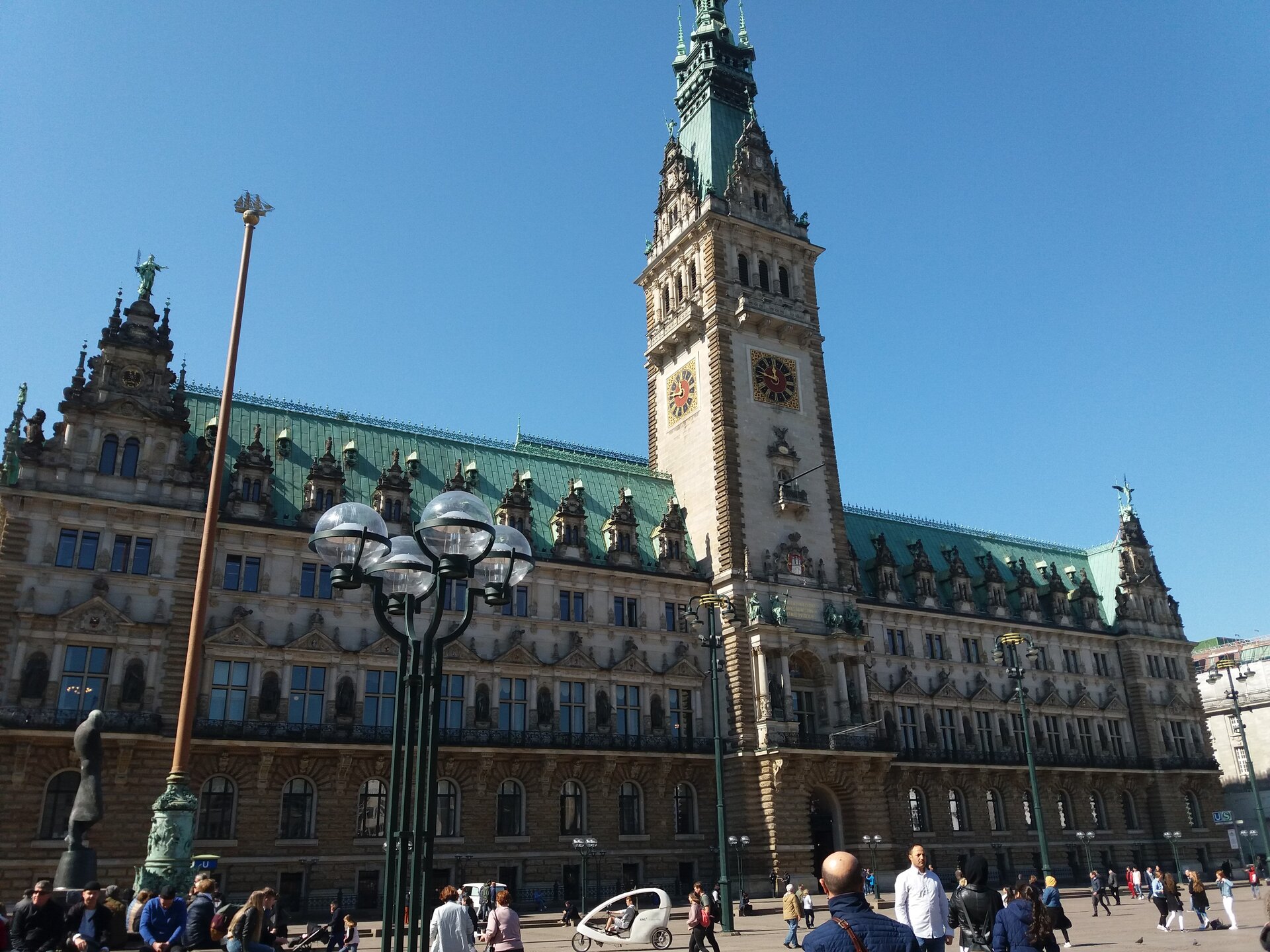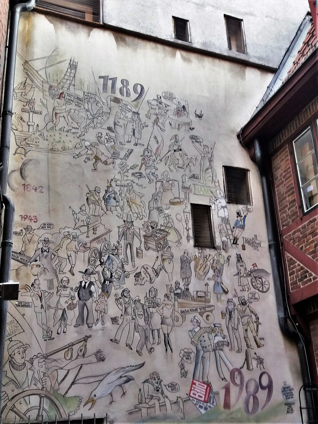 14 балловНе знаю почему, причины найти не могу, но меня Зальцбург совершенно не цепляет. Вот почему-то это не мой город совсем. Трижды была в нем, последний раз в новогоднем туре в 2025, и ощущения от города всегда одинаковые. Зальцбург - Гамбург Продолжу все-таки с надеждой на возвращение игры. Второй по величине город Германии, крупный морской порт. Были в апреле 2019, тур "Вся Германия". Основное впечатление от города - это водная прогулка в порту, очень красивая Ратуша и церкоаь Св. Михаила. Осталась у меня и печалька от неувиденного. В Гамбурге есть район Шпайхерштадт. Это складской район на сваях, включенный в список ЮНЕСКО. И предполагалось, что наш катер во время водной прогулки сможет зайти по каналам в этот район и мы его увидим. Ничего подобного. Как нам объяснил капитан - типа отлив и низкий уровень воды в каналах. Досадно. Жалею, что не подготовилась, а то бы вместо обеда сходила бы туда ножками. Церковь Св.Михаила Встретился на прогулке по городу и такой мурал, на котором важные исторические вехи города отмечены Прогулка по порту мне понравилась. Вдоль берега пришвартованы разные морские суда: буксиры, исторический колесный теплоход, есть подводная лодка и просто богатые яхты. Вид на исторический район На воде в порту находится еще одна достопримечательность Гамбурга - Эльбская филармония вот в таком необычном футуристическом здании. Во время экскурсии подплыли к сухогрузу, стоявшему на разгрузке. И вдруг на весь порт с крана зазвучала мелодия сиртаки. Так наш катер поприветствовали. Ну и городская Ратуша - красавица14 баллов