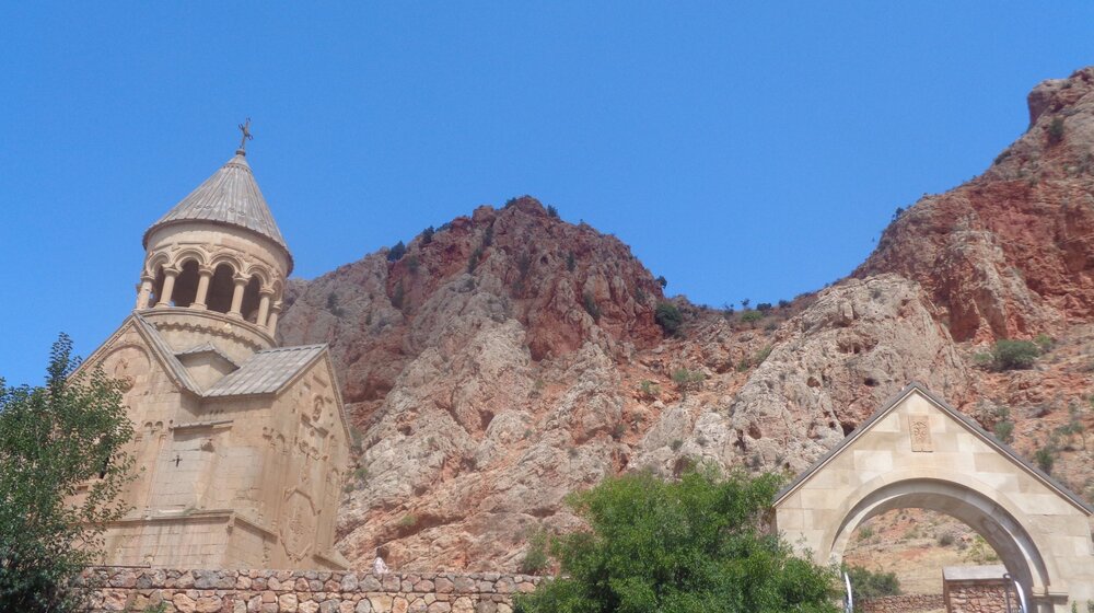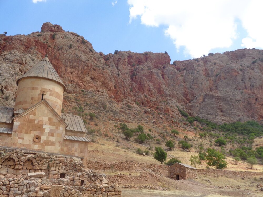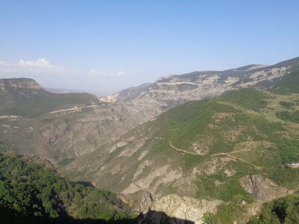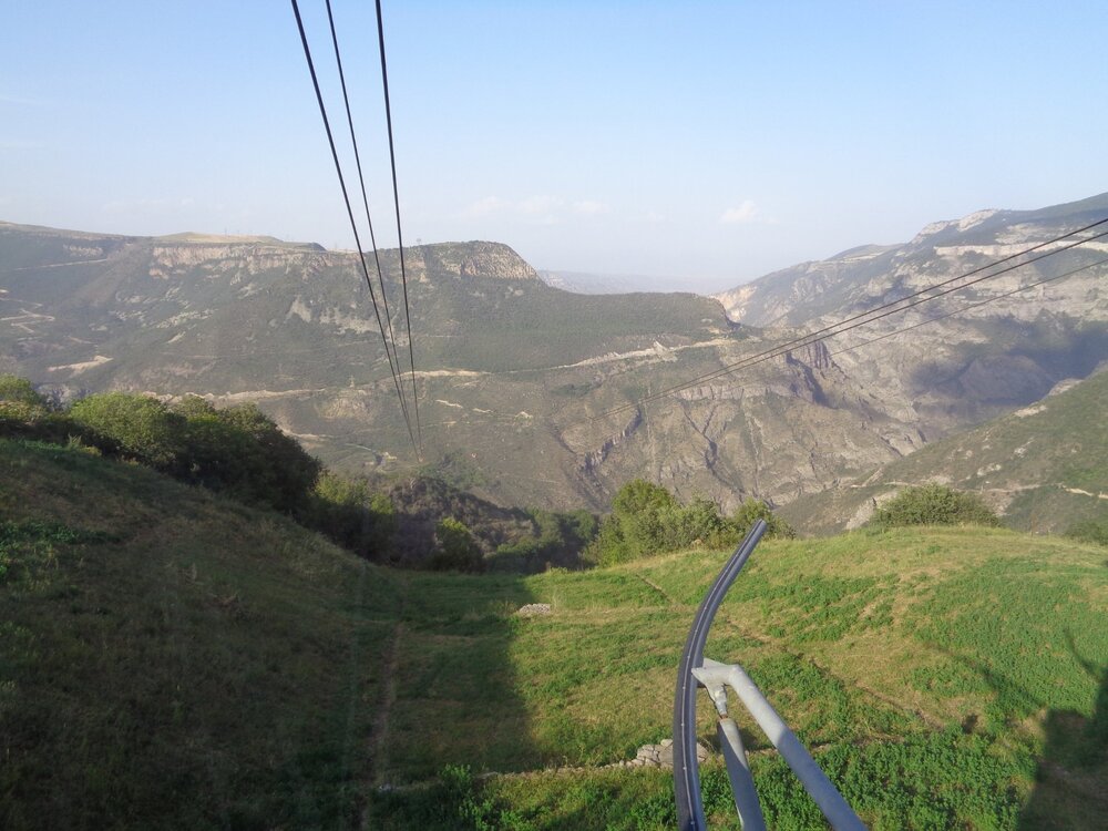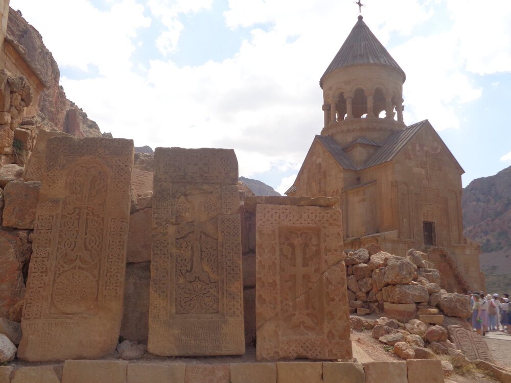8 день По программе: Ереван – Нораванк* – крылья Татева* Нораванк* - Арени* - крылья Татева* (€65, трансфер + гид + билет на канатную дорогу, 10 у.е. - требуется предоплата за экскурсию при покупке тура, доплата на маршруте); переезд (~120 км) к монастырскому комплексу Нораванк, который находится в регионе Вайоц Дзор, в долине ущелья реки Арпа и окружен живописными скалами цвета терракоты. Комплекс состоит из нескольких церквей, включая церковь Богородицы (14 в.) с уникальной внешней лестницей в форме пирамиды. Переезд в село Арени, центр армянского виноделия. Экскурсия и дегустация* (от €10) на одной из местных виноделен (18+).Днем переезд (~130 км) в Алидзор, поездка по канатной дороге «Крылья Татева» - по одной из самых длинных канатных дорог в мире (5700 м), занесенной в книгу рекордов Гинесса. Этот день, на мой взгляд – абсолютная вершина тура. Задался с самого утра, на выезде из Еревана нам открылся Арарат. Весь. Когда его макушка мелькнула в облаке за какими-то индустриальными объектами, гид сразу сказал, что волноваться не надо – Арарат будет сопровождать нас целый час. И да – он распахнулся по правой стороне, во всей красе, обе вершины – как объятия. Я, допустим, знала, что он вообще-то в Турции, но проезжаешь – не верится! Кажется – протяни руку, и вот он, ну как это до него нельзя добраться, пешком же можно дойти! Но это только кажется. Группа наша так мощно излучала страдание от невозможности поймать картинку, что гиды и водитель сжалились и всё же устроили небольшой фотостоп. По легенде, Николай I, посещая Армению, три дня ждал милости Арарата – безуспешно. "Своим посещением я оказал честь святой горе, но она укрылась от меня...» А от нашей группы ничто не укрылось, мы заслужили наш Арарат. Порядок локаций у нас был особенный. Первым было село Арени с винным заводиком «Hin Areni» («Старый Арени», как я услышала), дегустацией и покупкой. Вот нет тут такого размаха и роскошества, как на Киндзмараули, а мне понравилось больше! Здесь нет разнообразия вин, все они изготавливаются только из местного винограда. Сотрудница подробно и с любовью рассказала нам о процессе производства, а затем было предложено продегустировать вина. Всего три – белое, розовое, красное. Но все три оказались очень достойными! Повторюсь: я не знаток вина, но если киндзмараульские показались вкусными, но обычными, то здесь – нечто оригинальное, тонкое, даже изящное. Я бы все три с собой увезла, да катить баульчик далековато, поэтому, после долгих мучительных размышлений, уехала со мной только бутылка розового. А мы ещё вернёмся! Дорога к Нораванку – сама по себе отдельный туристический сюжет. Вот есть же (или были?) у ТТВ «панорамные дороги» в каких-нибудь Альпах или на Лазурном берегу? Так вот, в этом туре – все дороги панорамные. Можно вообще не покидать автобус, и равнинному жителю впечатлений хватит на полжизни. А дорога по Армянскому нагорью – это… нет у меня таких слов, и ассоциаций мне не хватает. Наверное, так выглядят Иран или Афганистан? А может, Луна или Марс? Я не знаю, не была. Но эти пустынные горы, охристо-красные камни, скалы, нависающие над дорогой… суровый, печальный, наверное, очень такой армянский пейзаж. Не хотелось делать фото через окно, знаю, каким разочарованием это обычно кончается. Но опять не удержалась. Прошу прощения, что высыпаю здесь так много некачественных фото, они