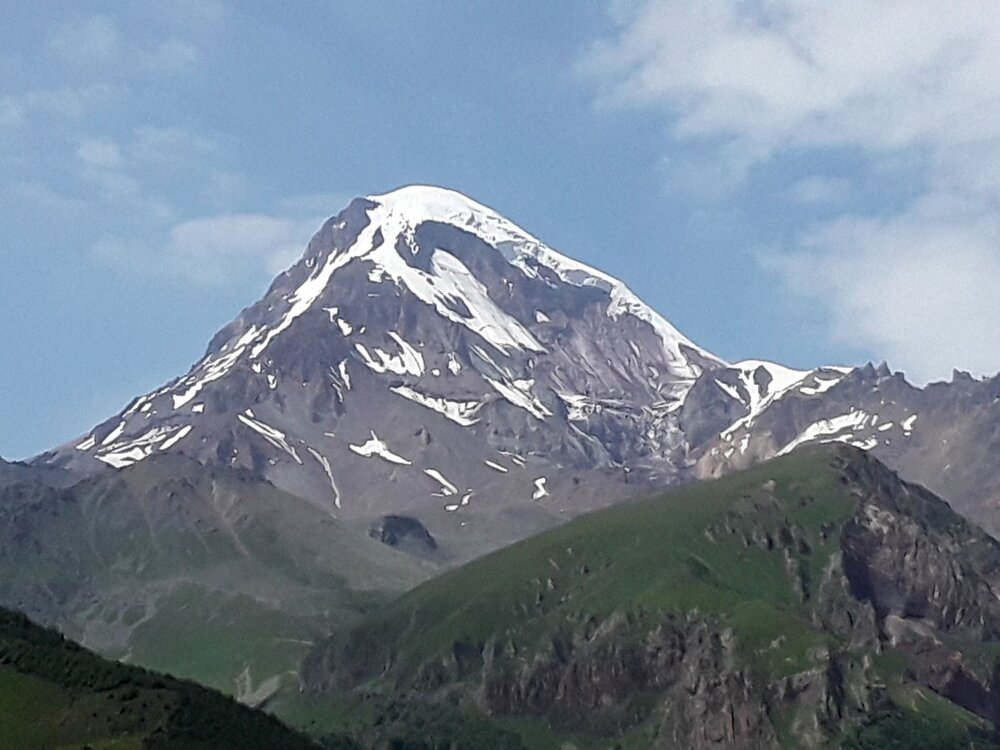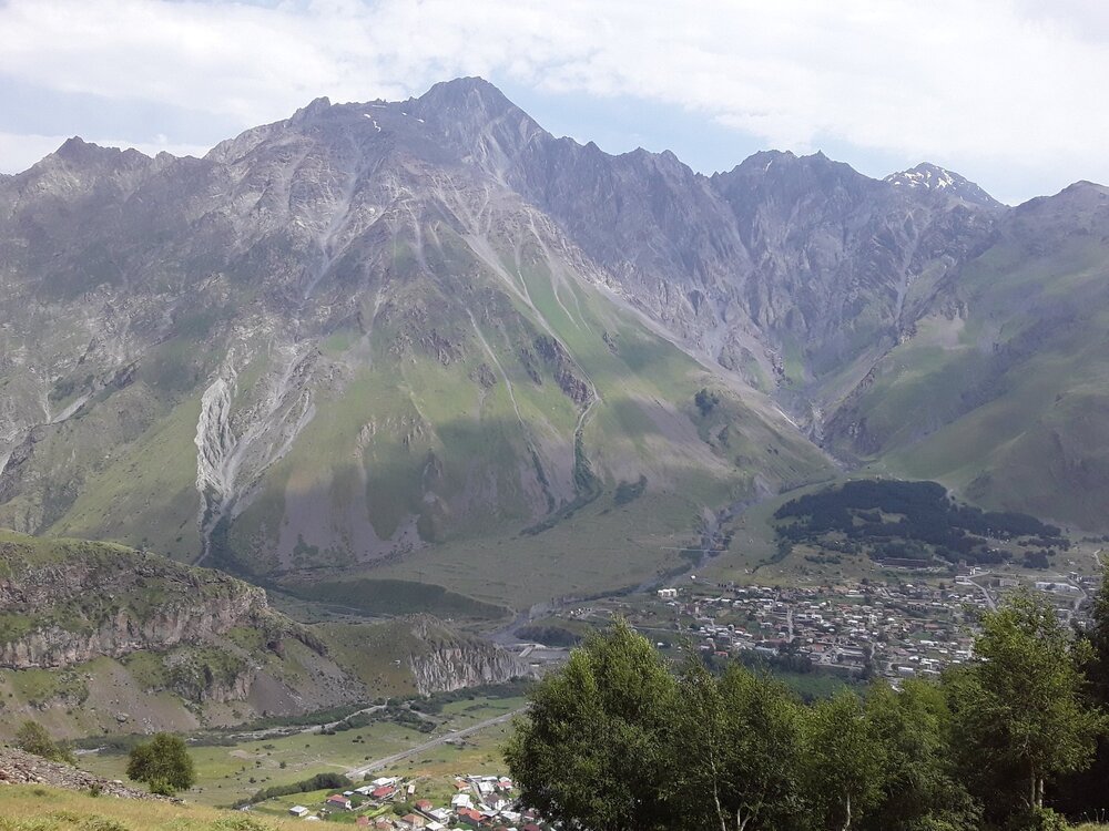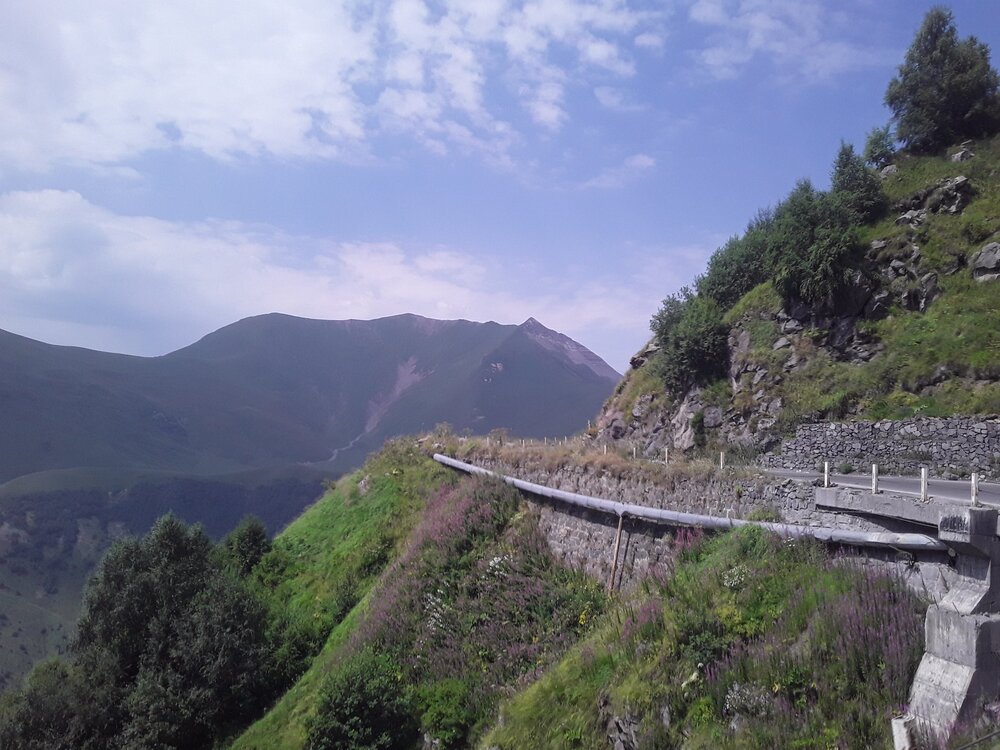 11 день. По программе: Военно - Грузинская дорога – Казбеги. Утром выезд из Тбилиси. Переезд (~150 км) с остановками в Казбеги (Степанцминду) по легендарной Военно - Грузинской дороге - одному из самых живописных маршрутов Грузии: Жинвальское водохранилище с водой необычного бирюзового цвета, старинная крепость Ананури над рекой Арагви, красивейшая долина реки Терек, Крестовый перевал и др. Прибытие в Казбеги, откуда открывается потрясающий вид на гору Казбек (5147 м). Для желающих подъем* на джипах к церкви Пресвятой Троицы Гергети (€10), расположенной на склоне Казбека в окружении величественных гор. Переезд на грузино-российскую границу, пересечение границы. 12 день Владикавказ. Утром мы двинулись в сторону Ананури, фотографий я уже не делала, на довольно приличном сувенирном рынке были совершены последние закупки приветов из Грузии для родных и близких. А потом – покатилось… Красоту Военно-Грузинской дороги мы, конечно, увидели ещё по пути туда, но оценить и почувствовать получилось только на обратном пути. И опять – через окно автобуса. Фотографиям с телефона не хватает глубины и объёма, они не передают широты, огромности, мощи ландшафтов. А мощь нарастала с каждым километром. Опять вынуждена извиниться за поток некачественных снимков, я ни при чём, они сами сыплются. Не перестаю удивляться, что живут себе люди в окружении этих гор, дома у них там, хозпостройки, и уже не замечают этого великолепия, как будто так и надо. На одном фото видно, что это за серпантин, и над каким обрывом проезжает автобус… бодряще так. Проехали горнолыжный курорт Гудаури. Высота уже приличная, кто-то попивал водичку, грыз леденцы, я же как-то не почувствовала дискомфорта вообще, хотя дома высоты боюсь. Не до страхов было, надо красотой любоваться. Нарастает высота, нарастают и зашкаливают эмоции.. Великолепнейшие виды открываются у Арки Дружбы народов. Это памятник Георгиевскому трактату и русско-грузинской дружбе, воздвигнутый в советское время. На мой-то плебейский вкус, арка тут – не самое важное, пожалуй, мешает даже. Горам мешает. Подумалось: если туриста вывезти из Тбилиси с завязанными глазами, а тут, у Арки, повязку снять – с ума сойти можно, настолько ошеломительны пейзажи. Чуть выше – сама арка, около неё – море туристов. Чуть ниже – несколько фотозон и стихийных отличных площадок, откуда можно сфотографироваться на фоне гор, а можно просто постоять, посмотреть, подумать, так ли уж велик человек на этой Земле… Почему-то место, которое отсюда открывается, называют Долиной Дьявола – за глубину, что ли? Такая красота же!!! Вон там, слева внизу – некий «волшебный стул», позволяющий сделать какие-то фантастические фото. Там очередь большая, я туда даже не спускалась, да и не получаюсь я на фото. Всё свободное время я потратила на любование горами, именно горами, а не человеческими изобретениями. Здесь есть какие-то перекусочные, небольшие пункты продаж, мытых порезанных фруктов например (дорого). Бросьте в меня камень, но именно в этом месте мне очень хотелось взять ластик и стереть с роскошной картины следы присутствия человека – ларёчки, автобусы, фотозону, гениальную арку, наконец. (К слову, в Нораванке или Татеве таких кощунственных мыслей почему-то не было …). В Казбеги подавляющее большинство группы выбрало подъем на «джипах» (семиместных «микроавтобу