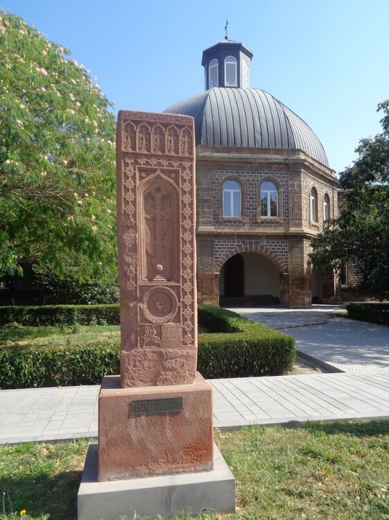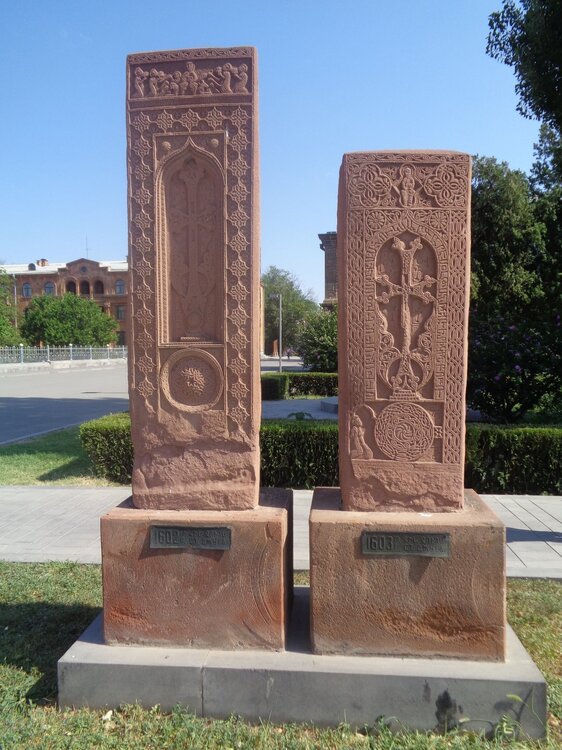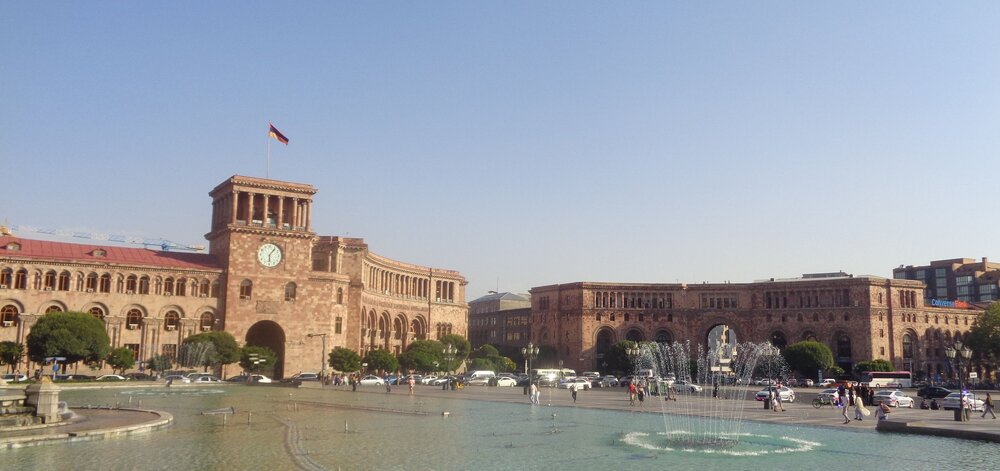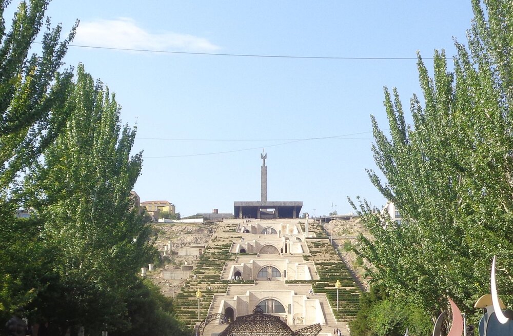 7 день По программе: Ереван. Рано утром выезд из отеля, «завтрак в дорогу». Переезд (~70 км) на грузино-армянскую границу, пересечение границы (Садахло/ Баграташен). Переезд (~200 км) в Ереван - один из древнейших городов мира, история которого насчитывает уже три тысячи лет. Обзорная экскурсия по Еревану: площадь Республики – сердце Еревана, построенная частично из знаменитого армянского розового туфа, Большой Каскад, Собор Св. Григория Просветителя, площадь Свободы, Опера, и др. Спасибо отелю, Регине и ТТВ, выезд был не ранним, никакого «завтрака в дорогу», всё отлично. Прошли границу, вот она – долгожданная Армения! Послушали армянскую музыку, полюбовались живописной дорогой, погрустили о полузаброшенном городе (на форуме о нём много написано), там, конечно, забытая кабинка канатной дороги производит впечатление… Дорога постоянно ремонтируется, в одном месте мы оказались между обсыпавшейся скалой и оползающим провалом, асфальт как будто надкушен… с левой стороны было трепетно. К слову, в этом туре наиболее живописные виды – с правой стороны автобуса, и если нет страхов на серпантине - она выигрышнее. Хотя и мы, левые, не в обиде, дороги изумительны по всему пути, и вот в этом месте «провал» оказался слева, я его оценила в полной мере. Да еще ребята-дорожники суетятся под колесами проезжающих, не боятся, прямо-таки спиной к пропасти… не знаю, меня это ещё на нашем Северном Кавказе пугало и восхищало. Остановились на перекус в Спитаке, том самом, который пережил землетрясение. Сейчас он производит впечатление посёлка, малоэтажный, скромный, грустный какой-то. Тут погода испортилась, стало пасмурно, заморосил, а потом и полил дождь… В Армению так и нужно въезжать, в настроении пусть не печальном, но задумчивом. Такая страна. Такой народ. Тут не Грузия, это иное… На подъезде к Еревану мы напряглись, не хотелось по столице гулять под дождем. Когда въехали в город и вышли у Матери-Армении, с неба ещё слегка сыпало; тем, кто не захватил зонт, водитель Паргев щедро выдавал безвозмездно напрокат, у него их много припрятано. Но минут через десять дождь кончился, облака разошлись – и все три армянских дня нас преследовало пекло. Правда, наслаждаться Арменией оно нам никак не помешало, мы ж привычные. «Эй, джан, Ереван, столица всех армян!», - песенка такая есть, весёлая. А есть еще дудук… И Ереван – он разный. Весёлый, но чуть-чуть грустный, раскрепощённый, но в чём-то строгий, солнечный (безумно солнечный!), но облачка иной раз набегают… В отличие от Тбилиси, Ереван лежит не на холмах, а в Араратской долине, и живописных ландшафтов здесь нет. Сооружений древности и средневековья тоже практически нет, только фрагменты, развалины, несколько храмов, хотя история города насчитывает три тысячелетия. Это город XIX-ХХ веков, и казалось бы, чем он может зацепить? Однако может. Сначала мы подъехали к Матери-Армении, полюбовались парком Победы, посмотрели на панораму города сверху, с холма. Вокруг – техника, в основании памятника, между прочим – военный музей. Панорамно – не Тбилиси, конечно, да и пасмурно было ещё. Но это только начало. Далее подъехали к Каскаду. По отзывам форума я толком не понимала, что такое Каскад, в чём его сверхзадача? Оказалось – это архитектурный комплекс, «музей под открытым небом». Необычная конструкция, не знаю, с чем можно сравнить. В первом п