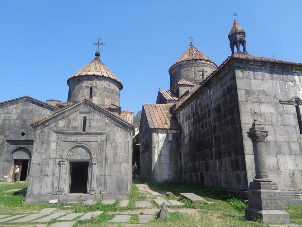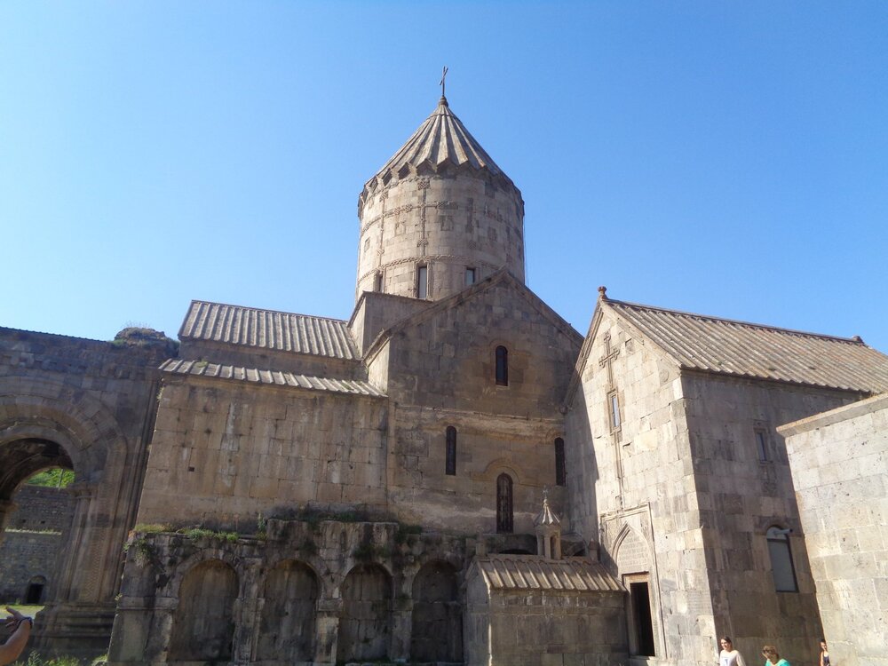 10 день. По программе: озеро Севан - монастырь Ахпат. Утром выезд из Еревана и переезд (~70 км) на высокогорное озеро Севан, самое крупное озеро Кавказа, которое называют «голубой жемчужиной» Армении. Подъем по ступенькам на обзорную площадку к монастырю Севанаванк, осмотр монастыря, в котором находится один из красивейших крестов-хачкаров Армении. Переезд (~120 км) в горный регион Лори, осмотр древнего монастыря Ахпат (ЮНЕСКО) – шедевра армянской религиозной архитектуры, связанного также с красивой легендой о барде-затворнике Саят-Нова. Во второй половине дня переезд (~110 км) в Грузию. Пересечение армяно-грузинской границы. Поздно вечером размещение в отеле в Тбилиси. Мне было грустно. Мы покидали Ереван, к вечеру должны были покинуть Армению, нас уже покинул наш основной водитель Паргев на легендарном автобусе с павлинами, и вообще… Но надо держаться! Это ж ещё не конец, вон и автобус новый подали, белый, с Эйфелевой башней на передней двери и водителем Ованесом. Красота! Держимся. Ереван, жди меня – и я вернусь. Первым делом – озеро Севан. Здесь у нас было катание на «корабликах»; я не знаток судостроения, ну катерки, что ли, такие. Вся прогулка – около получаса. Стоящая рядом яхточка, по слухам, принадлежит кому-то важному, чуть ли не премьеру страны, но не верится, слишком уж скромна. Или это у нас неверные представления?... На судне можно сидеть прямо на носу, под тентом на корме, либо на скамейках наверху – с самым роскошным обзором и самой лучшей возможностью великолепно обгореть. У меня по сей день в памяти Амальфитанское побережье, где я по глупости за полчаса сожгла плечи до пузырьков, потому забралась под тент. Но по ходу движения вся группа повставала с мест, гуляли по всему судну, делали фото, наслаждались. Было музыкальное сопровождение, армянский поп на русском языке, бодряще так, этот залихватский «рейс мой Абу-Даби, Дубай» до сих пор в ушах звенит. К слову, нам дали команду турофончики с собой взять – так вот не нужны они тут совсем. Виды приятные, свежесть, простор, цвет воды по-настоящему бирюзовый; не сногсшибательно, но очень мило, да и голову проветрить хорошо. Я не пожалела. Самый лучший вид получается как раз на полуостров (бывший остров), где расположен монастырь. Подъём на обзорную площадку у Севанаванку – действительно по ступеням; они совсем не крутые, и не критично много их, но шёл подъем небыстро, отзывались предыдущие дни, а у меня и вовсе в ногах весь тур звучало эхо Вардзии. Монастырь Севанаванк отличается от остальных неброскостью, скромностью даже. Место историческое, основан монастырь в VIII веке, монахи его принимали участие в Севанской битве, когда Армения отбивалась от арабов. Многое разрушено, перестроено, что-то восстановлено. Здесь две церкви, маленькая и побольше, насколько понимаю – Богородицы и Святых апостолов, IX-X века. Церкви сложены из какого-то черного камня, что совсем непохоже на все предыдущие храмы. Честно говоря, севанские ландшафты, которые открываются сверху, перетягивают внимание туриста на себя. Уверена, что большинство туристов здесь любуются не культовыми постройками, а собой-любимыми на фоне пейзажа. Пейзажи и впрямь живописные, небо лазурное, озеро бирюзовое, трава зелёная, всё как надо. «Один из красивейших крестов-хачкаров Армении» у меня в Севанаванке не случился; он случился в Ахпате. Ах