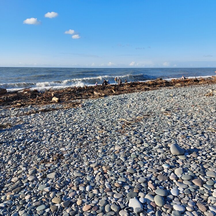 После завтрака продолжили наш путь к Панагии Сумеле. Из окна автобуса море выглядело таким. По дороге сделали санитарную остановку. Здесь была возможность подойти к морю. Вот так оно выглядело после сошедших селей. Те кто остался в Батуми, сказали что дождя в городе практически не было, но море тоже штормило сильно. Купаться возможности не было. 20250920_084328.mp4
