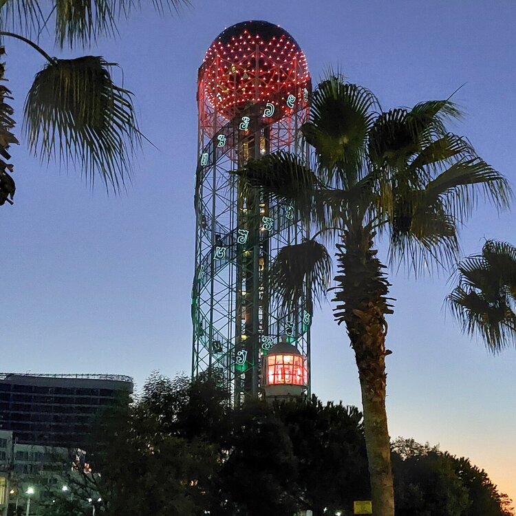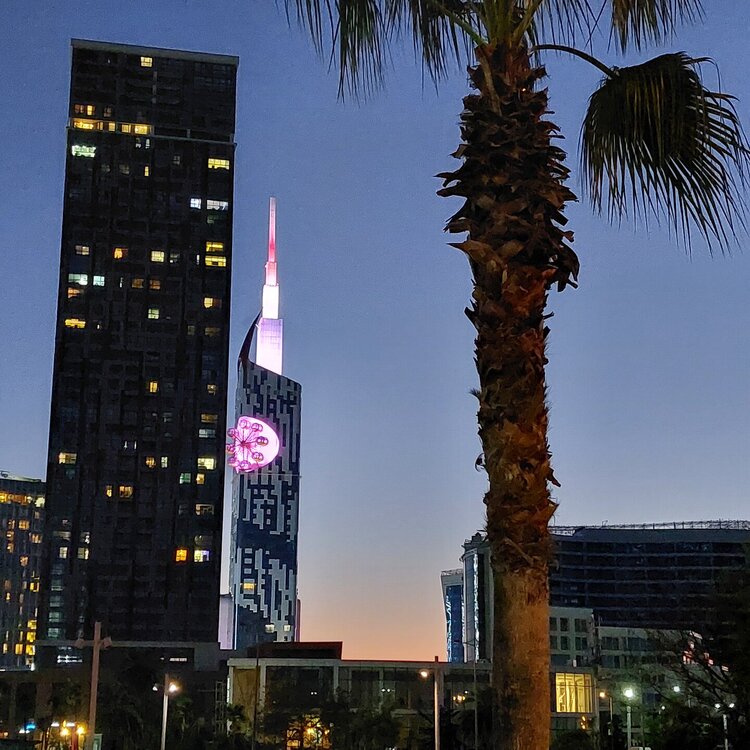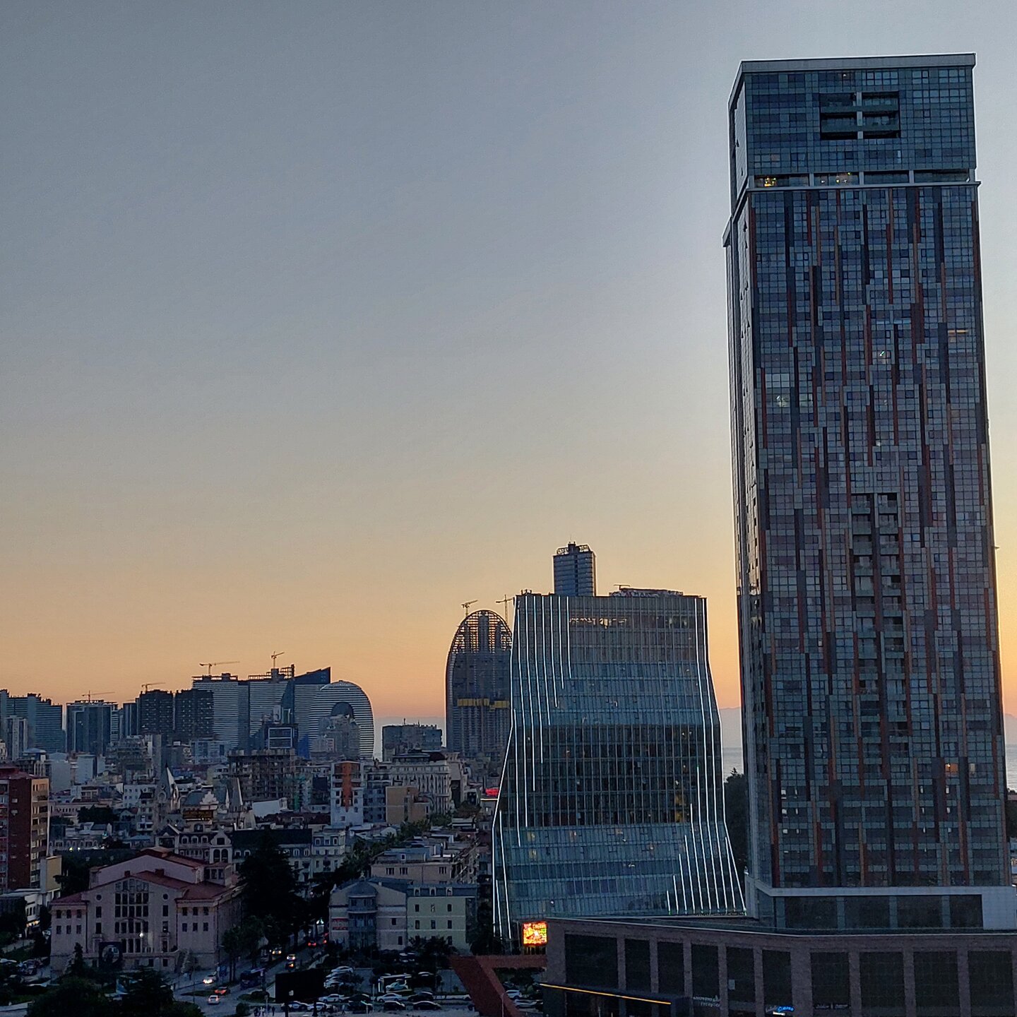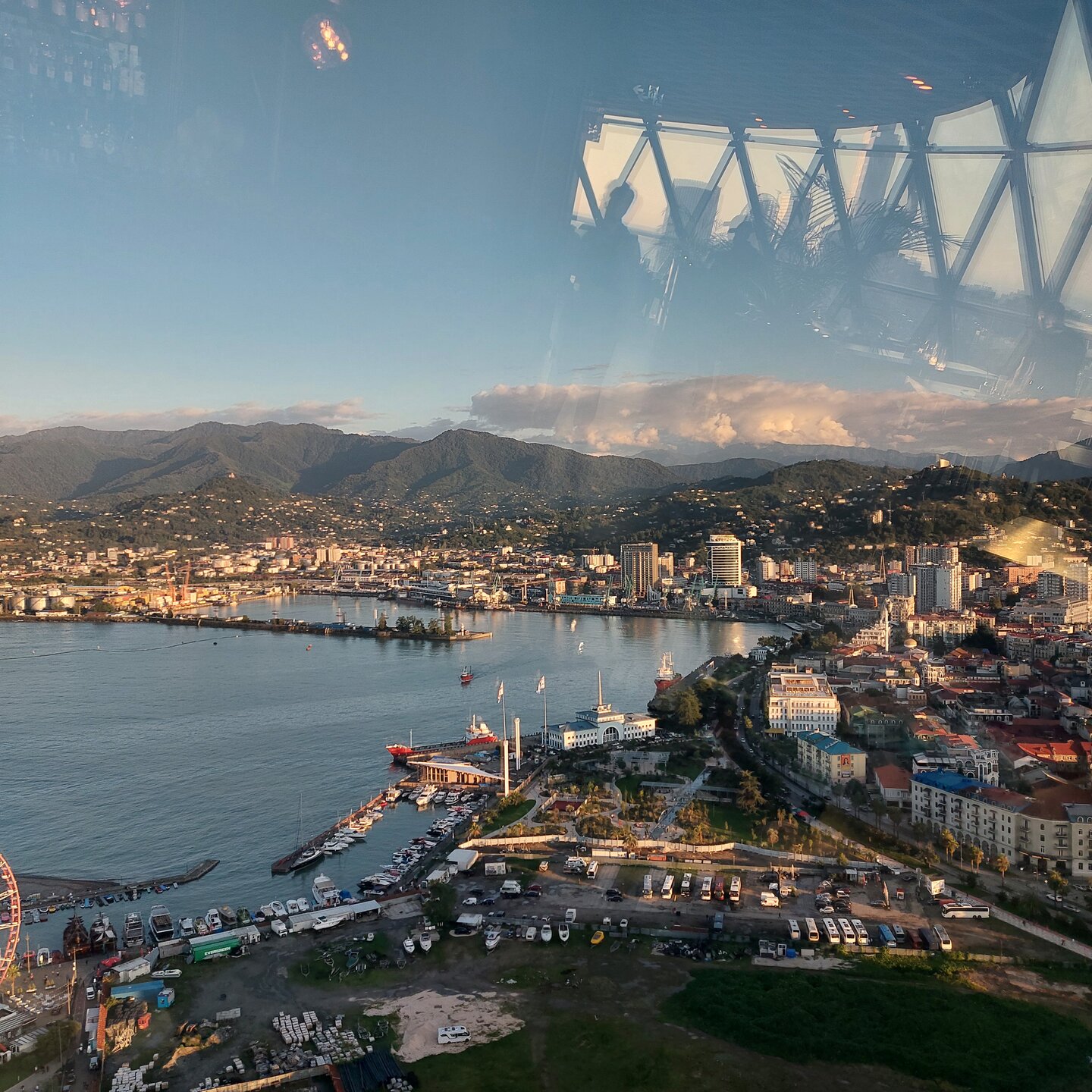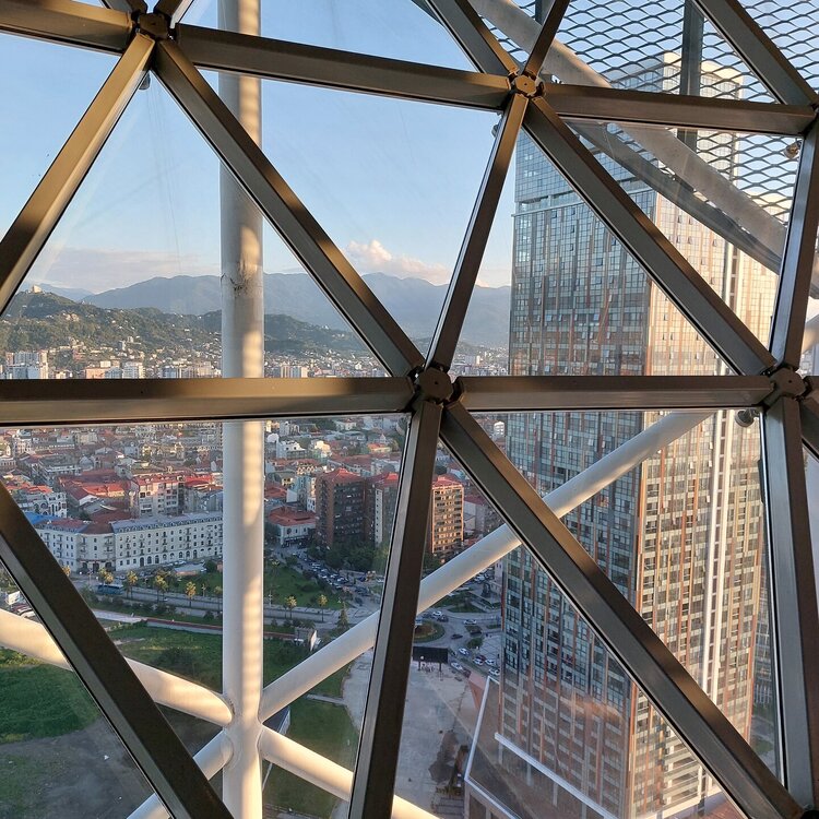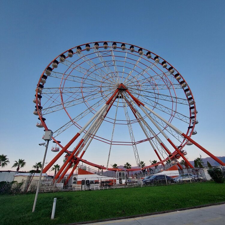 Пообедав, мы с Машей вернулись в отель, правда поблудили немного, сначала пошли не в ту сторону. У Маши дальше были свои планы. Я же переоделась , потому как стало значительно теплее и пошла по прямой к морю, что бы прогуляться по набережной в сторону Парка Чудес. Очень хотелось подняться на Башню Азбуки и покататься на колесе обозрения. Набережная Батуми протянулась на расстоянии 7 км. Если по ул.Грибоедова от отеля выйти к морю, то налево набережная тянется на расстояние 2,5км мимо красивых небоскребов. Если пойти направо , то до Колеса обозрения и памятника АЛИ и НИНО, башни Азбука идти примерно 4,5 км. К сожалению после проливных ливней, сошедших селей, сильного ветра и шторма пляж выглядел вот так. Убирать весь этот выброшенный мусор никто не спешил🙄. На пляже ,что напротив нашего отеля довольно крупные камни, я их даже галькой назвать не могу. Специально на фото поставила ногу в кроссовке, чтобы можно было размер оценить. Что радовало, по всей набережной, каждые 10 метров стояли скамейки. Поэтому очень приятно гулять, всегда можно присесть и отдохнуть. Башня Азбуки или Алфавита «Башня Алфавита») — архитектурное сооружение в Батуми, символизирующее уникальность грузинского алфавита и языка. Башня находится в северной части Приморского бульвара.Ее высота 130 м и она хорошо видна с любой точки в окрестностях. Второе популярное название — башня грузинского ДНК. Башня расположилась по соседству с высокими отелями, активно строящимся небоскребом, финансируемым президентом США Дональдом Трампом, колесом обозрения, движущейся статуей Али и Нино Батумскую башня ДНК построена недавно: в 2012 году. Архитектором выступил испанец, Альберто Доминго Кабо. Благодаря его творению, в Батуми появился не просто символ города. Башня показывает любовь и почитание грузинами родного языка: конструкция по всей высоте обвита лентами с 33 буквами грузинского алфавита, внешне напоминающими ДНК. По изначальному проекту, в башне должны были уместится: телестудия, обсерватория, смотровая площадка и вращающийся вокруг оси шикарный ресторан. Что пошло не так неизвестно. Но ничего из этого в башне не появилось. Сейчас в здании есть только ресторан с рейтингом 3,8 баллов из пяти. Отзывы ну очень спорные. Цены…… Самый простой коктейль стоит от 1000 руб, мороженое от 900 руб. еду в меню даже смотреть не стала. Подняться на башню можно на лифте за 20 лари. В расписании написано что работает с 11:00 до 00:00ч. Но иногда бывает закрыто без объяснения причин. Сначала поднимаешься на лифте до верхней площадки. 20250921_183921.mp4 Там нужно пересесть на другой лифт, который привозит вас в ресторан. 20250921_184226.mp4 Посмотрите какое в этой части набережной спокойное море. И галька здесь мелкая, заход в море лучше. 20250921_184737.mp4