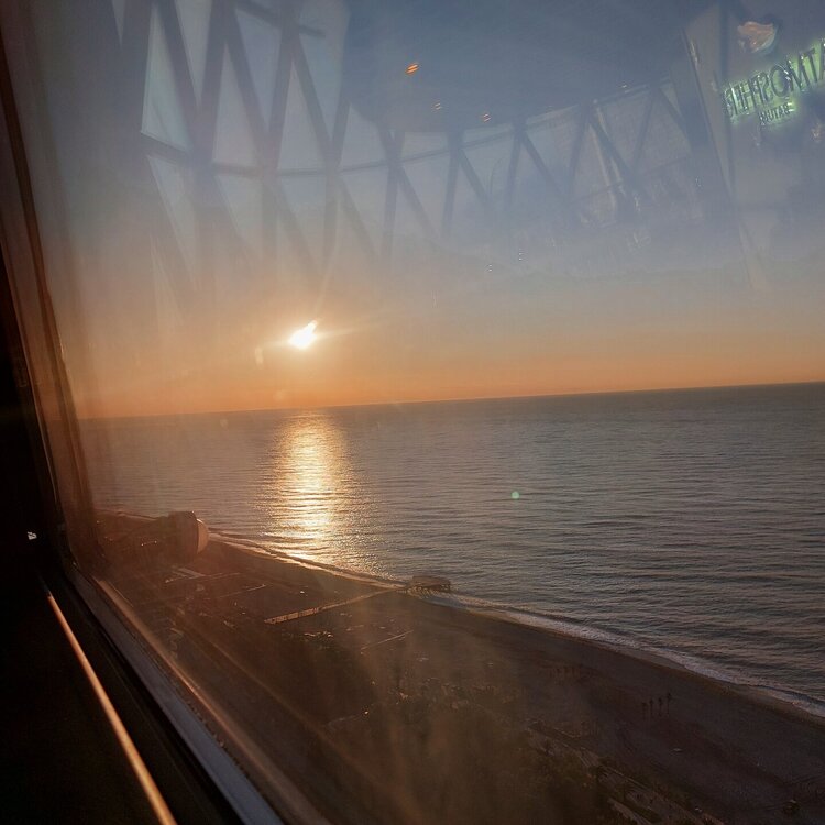 После обеда нас ждал Трабзон! Здесь мы тоже бегали с дождем наперегонки. Но чаще в этих догонялках побеждали мы! Высадились у собора Святой Софии. Прогулялись вокруг, полюбовались на очередную свадьбу. Затем мы посетили музей Ататюрка. Полюбовались на еще одну прерасную пару молодоженов. И отправились назад. По дороге на границу нам предложили заехать на чайную плантацию, где можно было посмотреть как растет чай, как его перерабатывают, в магазине попробовать и купить чай. Дорога на границу прошла быстро и без приключений.В окно любовались заходящим солнцем и морем. 20250920_180608.mp4 Границу прошли также быстро. Водитель Геворг и наш автобус ждал нас уже по ту сторону границы. Пока всех ждали в автобусе, кто хотел, поменяли оставшиеся турецкие лиры на грузинские лари. В Батуми мы приехали в половине девятого вечера. Наш гид Светлана сказала, что мы чемпионы этого сезона, потому что ее предыдущая группа вернулась в отель в половине двенадцатого ночи.