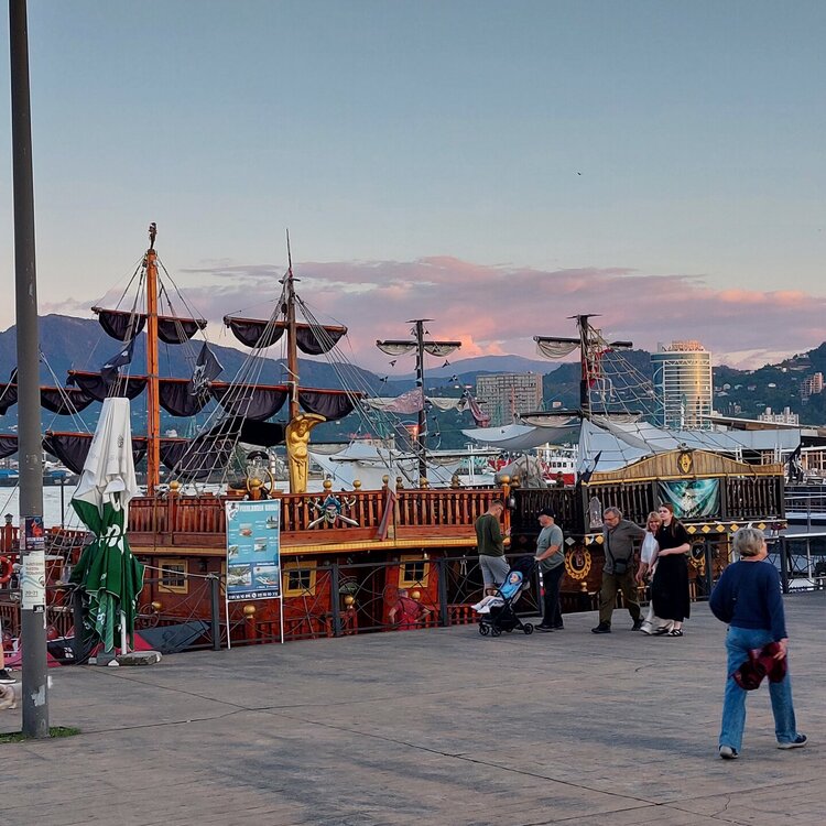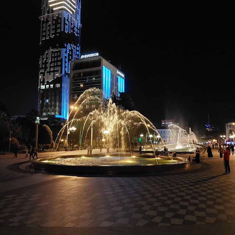 После колеса обозрения спустилась к морю. Так непревычно было видеть его спокойным. Эта часть набережной устроена в виде бухты, поэтому и море здесь менее беспокойное и мусора практически не нанесло на берег. Потом постояла, полюбовалась движущимся памятником Али и Нино. 20250921_192432.mp4 Солнце зашло, включилась подсветка, все стало таким нарядным и красивым. 20250921_194156.mp4 Дошла до поющих фонтанов... 20250921_201751.mp4 Все, пора в отель и спать! Завтра новый насыщенный день!