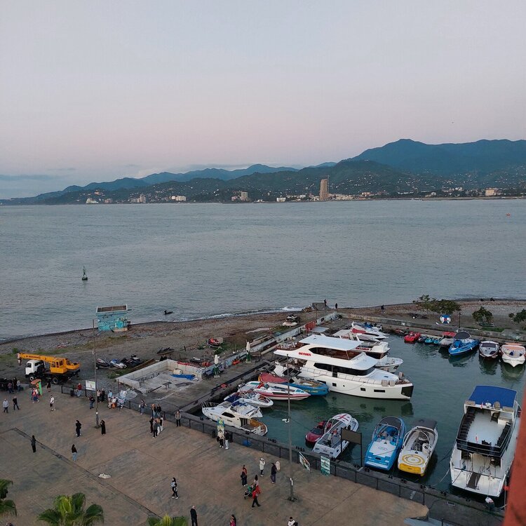 В нашем туре каждый день предлагались интереснейшие экскурсии. И когда ты не разу не был в этих местах, хочется увидеть как можно больше. Но хотя у нас не было таких уж ранних выездов кроме экскурсии в Турцию и длинных переездов, усталость накапливалась. Хотелось хоть на день притормозить и провести его в своем темпе. Да и не пройдясь самой , своими ножками по городу, невозможно его прочувствовать. Я долго маялась, прикидывая от какой экскурсии можно отказаться. Изначально я не забронировалась в Турцию, но увидев фото Панагии Сумелы от гидов предыдущих групп в Телеграмме, поняла что мне туда надо. Написала в личном кабинете менеджеру тура, что бы мне добронировали эту экскурсию. Здесь есть такой момент. Экскурсия в Турцию состоится, если наберется не менее 15 человек желающих. У самой первой группы этого сезона она не состоялась, так как желающих было 11 человек. И забронироваться на эту экскурсию нужно не менее чем за три дня до начала тура. На маршруте этого уже сделать нельзя, так как ТТВ под эту экскурсию бронирует заранее автобус соответствующей вместимости. На следующий, после экскурсии в Трабзон, день предлагалась экскурсия в Мартвильский монастырь и Мартвильский каньон с катанием на лодочках. Это та экскурсия, которая меня сильнее всех заинтересовала еще в прошлом году. В наш тур я хотела поехать еще прошлой осенью. Но так как до этого года по семейным обстоятельствам я не могла бронироваться заранее и заскакивала в туры в последний момент на практически последнее свободное место , то я внимательно следила за заполняемостью того сентябрьского тура. Там долго было свободно пять мест. Но когда я в очередной раз заглянула на сайт с проверкой, то увидела, что все пять мест одновременно были заняты, увы…🤷♀️ В этом году смогла забронироваться заранее. И правильно сделала, у нас опять не было ни одного свободного места в автобусе. И именно от этой экскурсии в Мартвильский каньон я отказалась. Так как гид Светлана сразу предупреждала, что вернуться из Трабзона мы можем очень поздно, сомневалась хватит ли сил на экскурсию на следующий день. Еще и опять обещали ливни на этот день. Спросила у гида, а как быть с катанием на лодочках, если такой дождь? Она ответила, ну что же, оденем дождевики и поплывем. Как то такой ответ не особо вдохновил. Да я еще и дождевик умудрилась оставить на полке в турецком автобусе. Ночью в Батуми был очень сильный дождь в завывающим ветром. У меня даже кондиционер в номере от ветра сам включился. Так как я не одна оставалась в городе, то мы с моей одногруппницей Марией , с которой мы уже ранее были в совместном туре, договорились встретиться утром на завтраке в 10 часов и решить что будем делать. Отель в AISI Батуми нам понравился. Хорошее месторасположение, на улице Грибоедова, по которой шли к морю (7 минут), масса магазинов, кафешек, обменников, шикарная кондитерская. Ресторан в отеле располагается на 13 этаже. Там есть балкон и с него видно море. Работает только для завтраков. Завтраки очень хорошие, все есть, на любой вкус, включая красное и белое столовое вино. Вид на Батуми из ресторана. Здесь как раз видно улицу , по которой мы ходили к морю. Завтрак. В кувшинах рядом с фруктами столовое вино. На подогреваемой сковороде очень вкусная шашука. Завтракали, смотрели в окно, надеялись на то, что распогодится. Дождь обещали 