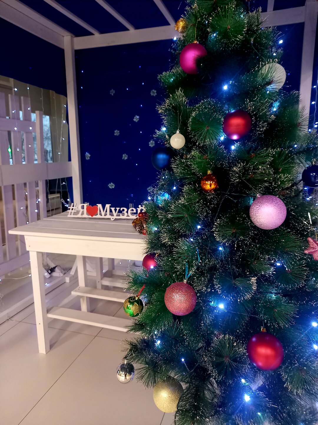 У нас ёлки на асфальте стоят, но как-то без снега фотографировать даже не хочется, тем более, что от прошлогодних они не отличаются. К концу недели вот снег обещают, интереснее станет, наверное. Пока музейные украшения праздничнее смотрятся, чем уличные: