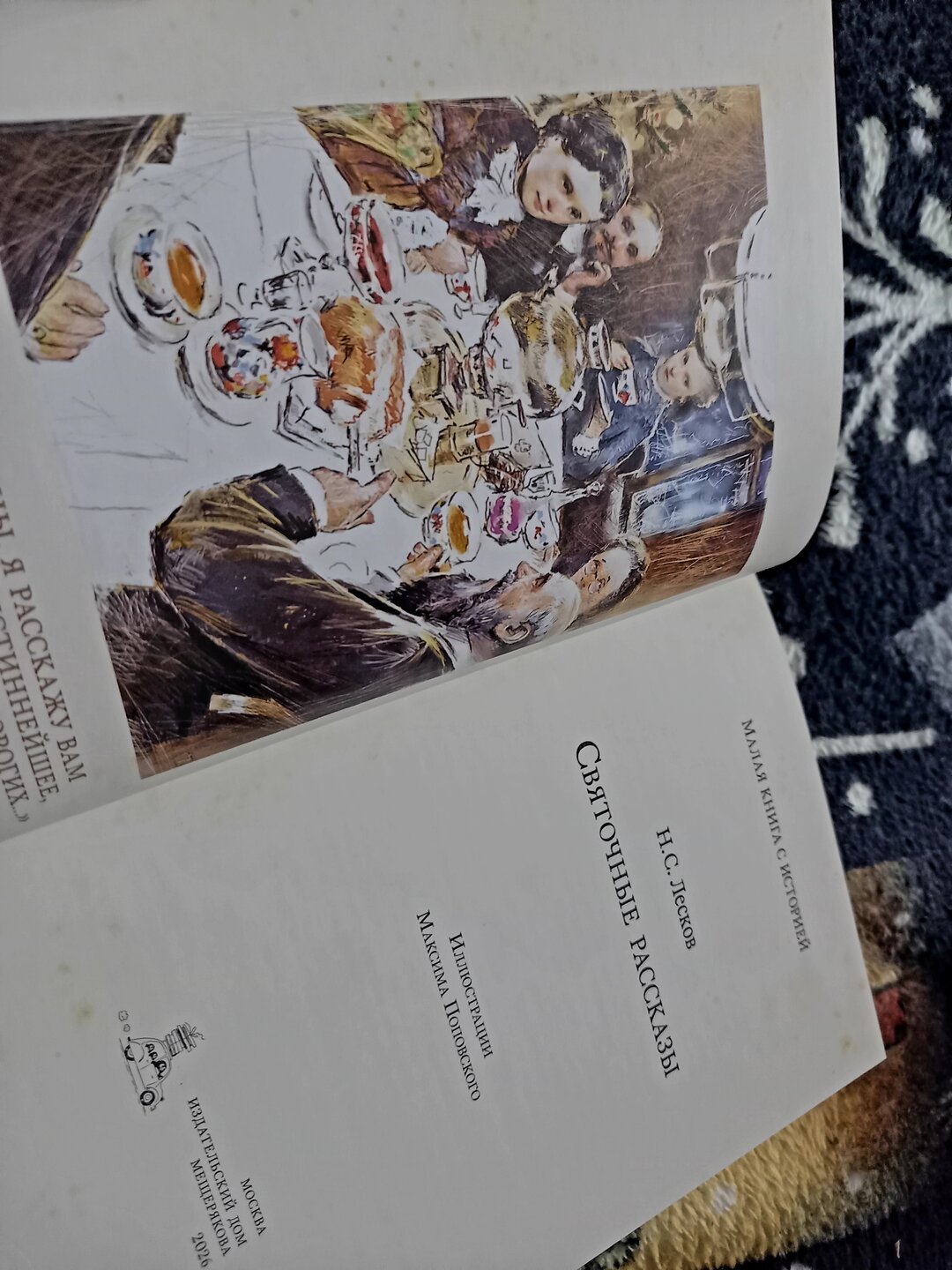Смотрите, что нашла. Издательский дом Мещерякова, рождественская серия. Книжки небольшого формата, но очень красиво оформленные. Купила на подарок через Озон, пришли в полиэтиленовой упаковке и сверху в картонной коробочке. Открыла посмотреть/почитать. У меня Лесков и Чехов, подборки рождественских рассказов, вообще их 5 или 6 в серии. Прям коллекцию захотелось:)