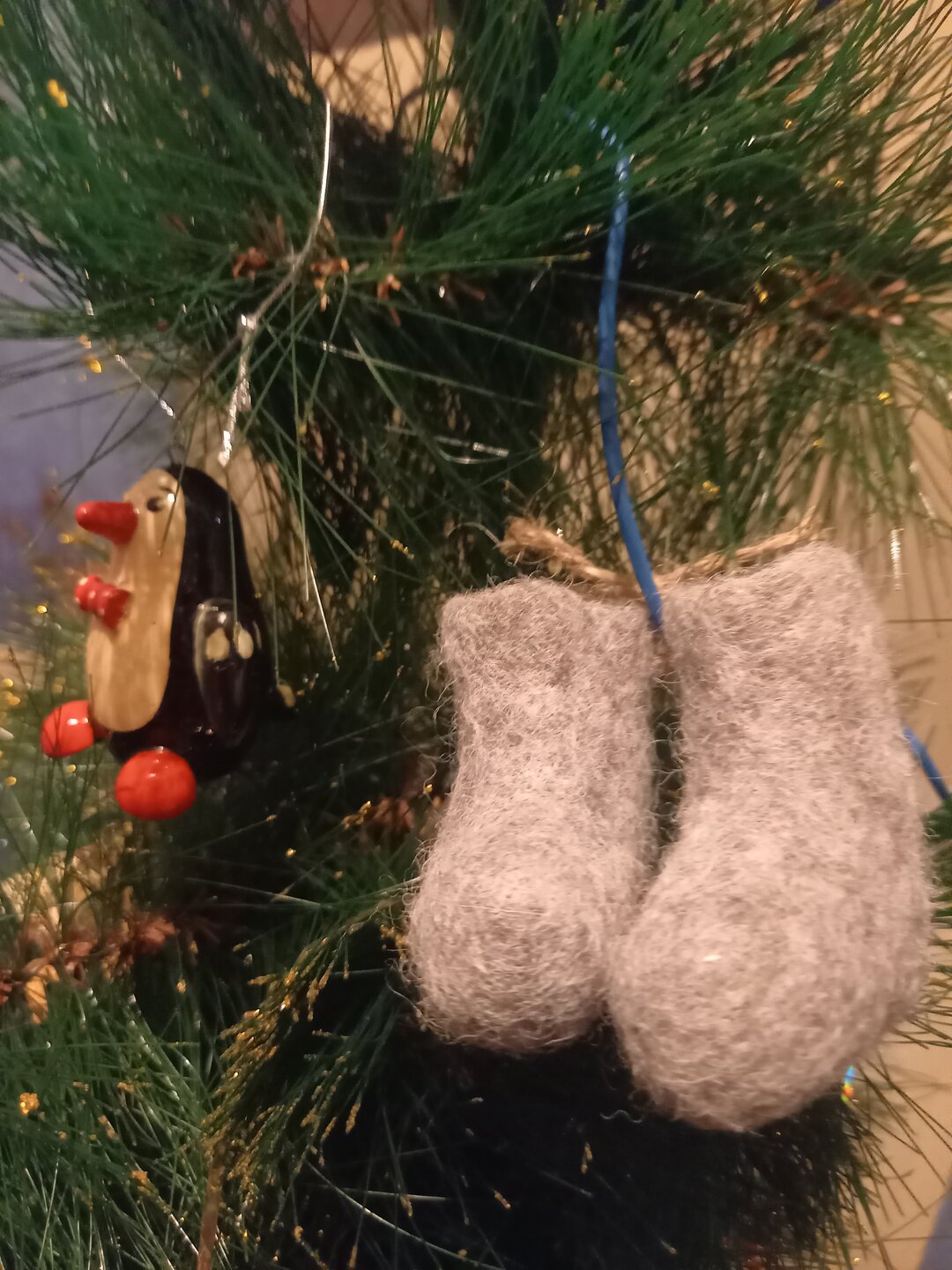 Красно-желтый в этом году, говорят, рекомендуемые тренд:) я тоже честно убрала до следующего года сине-зеленые шарики , но всяческие привезенные откуда-то игрушки и прикупленные на нынешней ярмарке рукодельные всё-таки не смогла не повесить:) и у меня тоже ёлка в колпаке:)