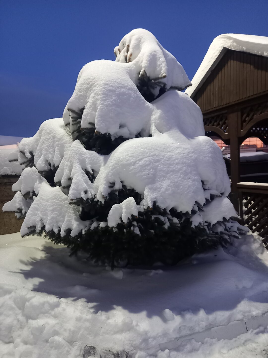 Нас тоже:) честно говоря, глядя на погоду и видео, что у коллеги в соц.сетях с трассы, радуюсь, что дома сижу. Но красиво снег валит:) рабочая ёлка ещё вчера спряталась, чтобы не нарядили вдруг:)) Сегодня, наверное, и вовсе не видать