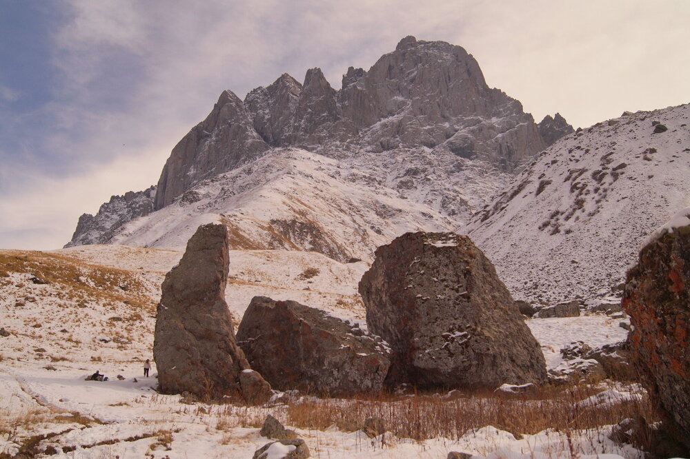 День 15. Долина Чаухи. Часть 1 Утро выдалось снова ранним (сосед-китаец снова составил мне компанию на веранде), ясным и восхитительно-прекрасным:) Встретив рассвет, я ещё традиционно подремала, позавтракала и к десяти часам вышла на веранду в ожидании водителя, который отвезёт меня в Джуту. К сожалению, замечательный брат хозяйки дома Вано в тот день уехал в Тбилиси, поэтому повторить нашу прошлогоднюю с ним поездку не получилось. Вместо него Кетеван нашла мне кого-то из соседей с машиной, обязав взять ту же сумму, что брал с меня Вано и ни тетри больше:) Как и большинство грузин старшего поколения, мужчина попался доброжелательный, разговорчивый, некогда работавший в России. Время за разговорами в дороге прошло быстро. В первый раз из всех поездок меня довезли прямо до Джуты, высадив там, где начинается пеший подъём к кемпингу "Зета". Правда, обратно договорились всё же встретиться там, где обычно дежурят местные таксисты - дорога за год лучше не стало, пешком по ней приятнее, чем трястись на кочках, тем более, что обратно предстоит идти под горку. Обговорили время и расстались: водитель мой развернулся в сторону Казбеги, а я, не торопясь, потопала наверх по изрытой ручьями и лошадиными копытами тропинке. Периодически останавливаясь отдохнуть и оглядываясь на стеной стоящие напротив горы, я вспоминала свои первые впечатления от этих мест и радовалась, что оказалась здесь снова. Километры гор и тишины, умиротворяющей, бальзамом на душу - это, пожалуй, лучший способ завершить свой отпуск, этакий глубокий вдох перед тем, как с головой нырнуть в повседневную жизнь со всеми её заботами, проблемами, думами, суетой. У меня не было и тени сомнений, как провести сегодняшний день. Ещё не приехав в Казбеги, я знала, что в Джуту поеду обязательно. И вот она передо мной - долина реки Чаухи, увенчанная зубчатой короной одноимённого горного массива. Моё место силы, дающее заряд бодрости, энергии и запас гармонии и умиротворения. Одно из самых любимых мест в Грузии. Да и в целом на земле. Скормила весьма деликатному и воспитанному собакену остатки вчерашнего хачапури, я, не задерживаясь, прошла мимо уже закрывшегося на зиму кемпинга и комплекса "Пять сезонов". Вот в нём кафе ещё работало, я решила заглянуть туда на обратном пути, пока же хотелось побыстрее уйти гулять - и горы манили к себе, и мысль о том, что суббота, выходной день, скоро народу здесь значительно прибавится за счет приехавших в тур выходного дня из Тбилиси, подгоняла. Масштабы этой долины, конечно, таковы, что и пара сотен туристов, приехавших одновременно, наверное, не слишком друг друга заметят, но всё-таки хотелось послушать тишины и насладиться ею. Погода мне в тот день досталась прекрасная - довольно тепло, солнечно. Облака по небу, правда, бродили, порой грозя закрыть его полностью, но они были высоко, горные вершины не закрывали, поэтому, наоборот, только радовали, придавая небу живописность. Иногда принимался дуть холодный ветер со стороны заснеженных гор, но быстро стихал, особо не тревожа. Как и в прошлом году, я снова застала момент, когда склоны Чаухи и подходы к ним обильно присыпало снегом, и белоснежность их красиво контрастировала с бархатно-рыжими соседними горами пониже. Но, по сравнению, с прошлогодней моей прогулкой, идти было значительно проще - снег под ногами был рыхлый, а не с