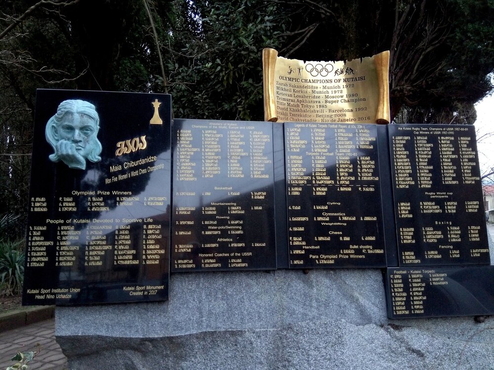 А Кутаиси гордится своей землячкой-шахматисткой Майей Чибурданидзе:) И там же, на золотом свитке имена двух участников легендарного баскетбольного матча на Олимпиаде 1972 года М.Коркия и З.Саканделидзе, тоже уроженцев Кутаиси.