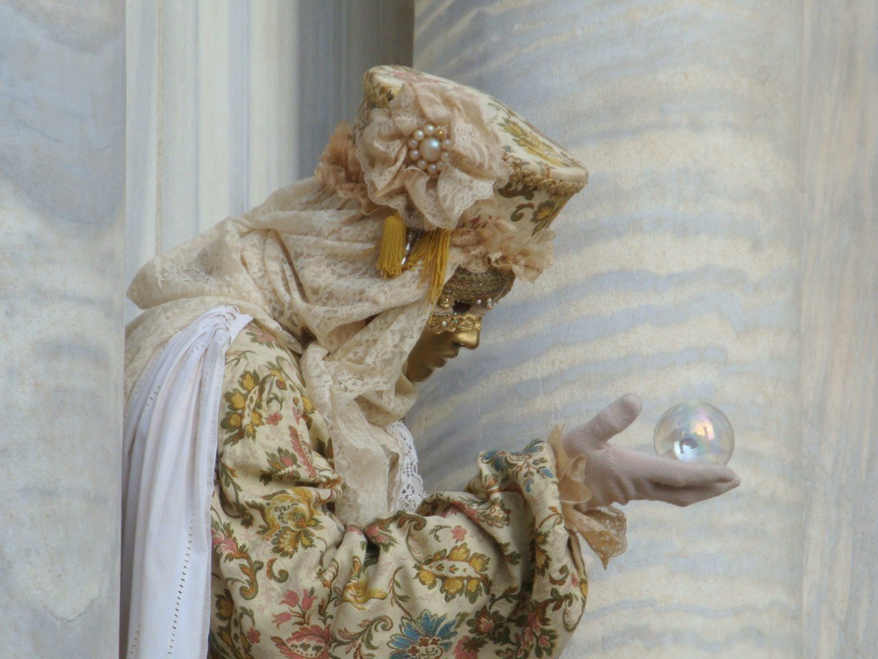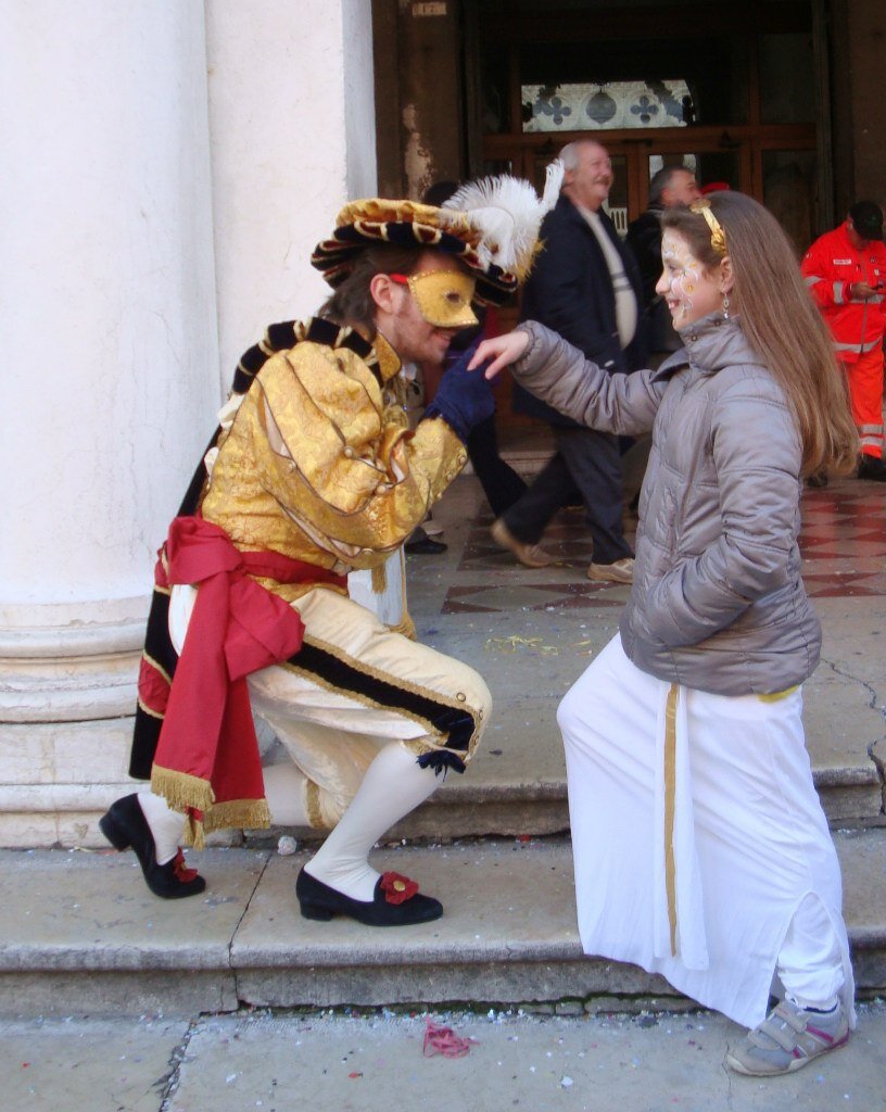 Большая часть позирует охотно без всяких просьб. Просто стоят у древних дворцовых стен и колонн в ожидании фотографов и зрителей. Или видишь в толпе, восторженно улыбаешься, начинаешь поднимать фот, и тут же маска принимает красивую позу:) они ведь целый год готовятся, шьют эти костюмы, чтобы потом себя показать, им радостно видеть внимание и восхищение. Итак, карнавал. Великолепный, блистательный, восхищающий: