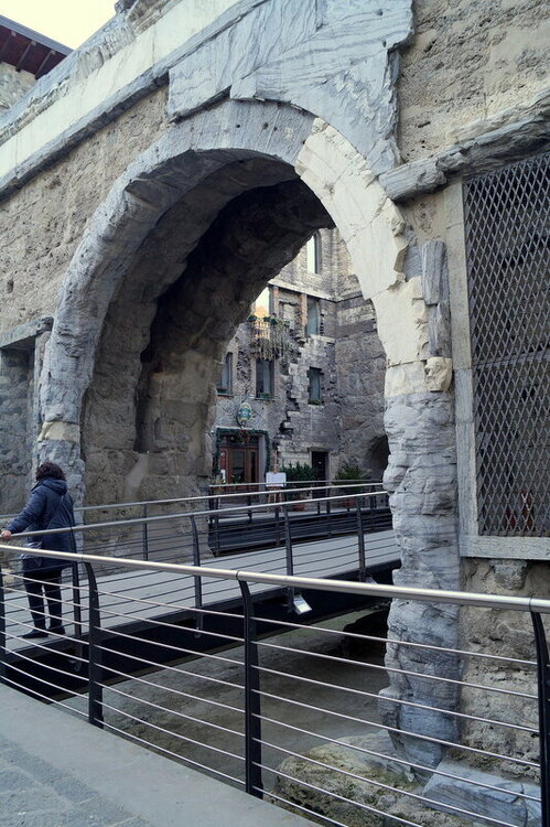 Название - огонь:)) и монастырь интересный! Аоста - небольшой город в Итальянских Альпах, недалеко от границы с Францией. В нём неплохо сохранилось римское архитектурное наследие, его древние ворота и остатки крепостных стен замерли на фоне прекрасных заснеженных гор, в нем есть несколько интересных старых церквей, но больше всего он запомнился мне не этим. А залитыми ярким декабрьским солнцем городскими улицами и не менее солнечными и тёплыми итальянскими улыбками. Я оказалась там в первый день моего отпуска, с головой окунувшись в раслабляющую атмосферу Италии, вспоминая о том, как же всё-таки я её люблю и немного даже жалея о том, что в этот раз заглянула в неё совсем ненадолго и скоро покину её, переехав во Францию - основную страну тура. И всё-таки даже короткие итальянские мгновения - это восхитительно. Я шла по улицам и улыбалась, а идущие навстречу улыбались в ответ:) А еще Аоста запомнилась великолепными, невозмутимо спокойными и деловитыми собаками-проводниками сенбернарами, встречающимися нередко на городских улицах. Ибо их родина - перевал Сен-Бернар - совсем недалеко: