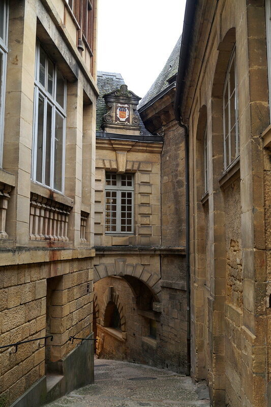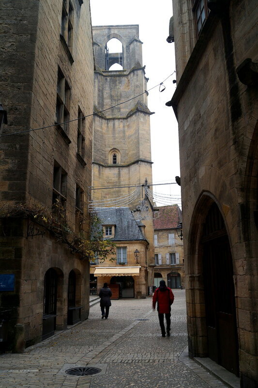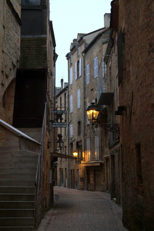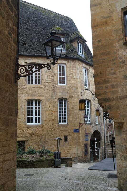 Неужели я успела на С?:)) значит, сейчас будет Сарла-ла-Канеда, центр области Череый Перигор. Город, сложившийся вокруг бенедектинского аббатства, сложенном из местных пород песчанника, имеющего тёплый золотистый оттенок, он очаровывает своими узкими, уютными улочками, маленькими площадьми, очаровательными коваными фонариками. Мы ночевали в нём и вышли на прогулку ранним утром, когда город был совсем пуст, тих и слегка окутан туманной вуалью, и на его улицах хотелось потеряться...