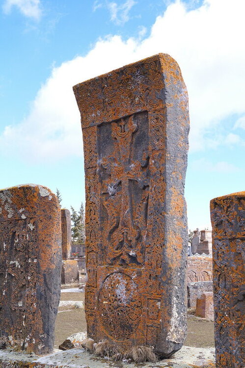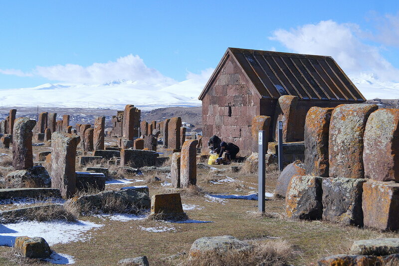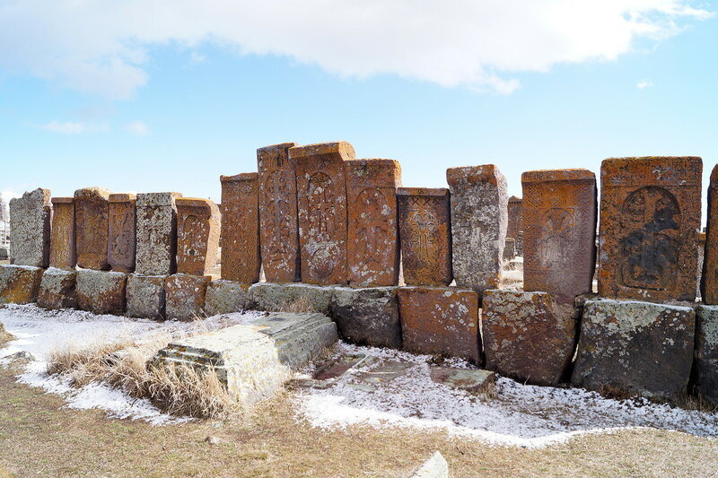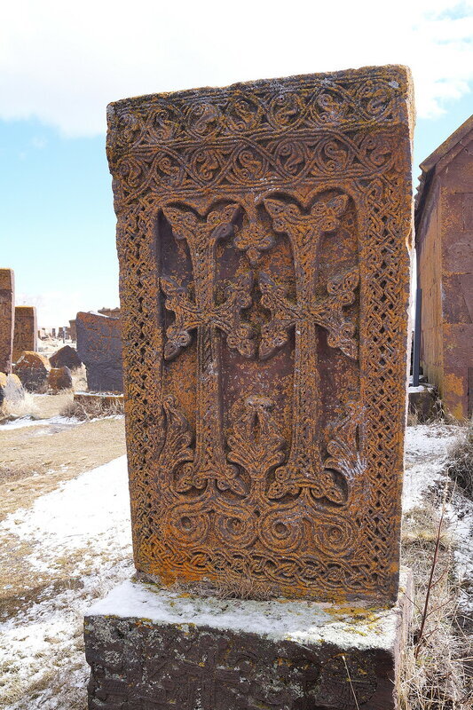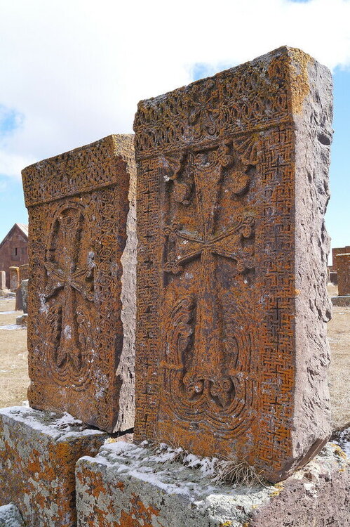 Согласно армянской легенде, ковчег Ноя пристал к склону горы Арарат. И когда вода начала отступать, Ной спустился вниз, в долину, увидел освободившийся от воды, приемлемый для жизни кусочек суши, и воскликнул: "О, чудо для глаз!" - слова, сложившиеся в название Ошакан. Это очень древнее армянское село с несколькими старинными храмами и виноградниками. Говорят, что первую лозу здесь посадил именно Ной. Но если про то, что название селу дал Ной - это легенда, то есть и факт, сделавший это место объектом поклонения всей армянской нации - здесь похоронен Месроп Маштоц, создатель армянского алфавита. Каждый год в первый день нового учебного года сюда привозят первоклашек, чтобы выучить первую букву алфавита. Вот она, с изображением Арарата:)